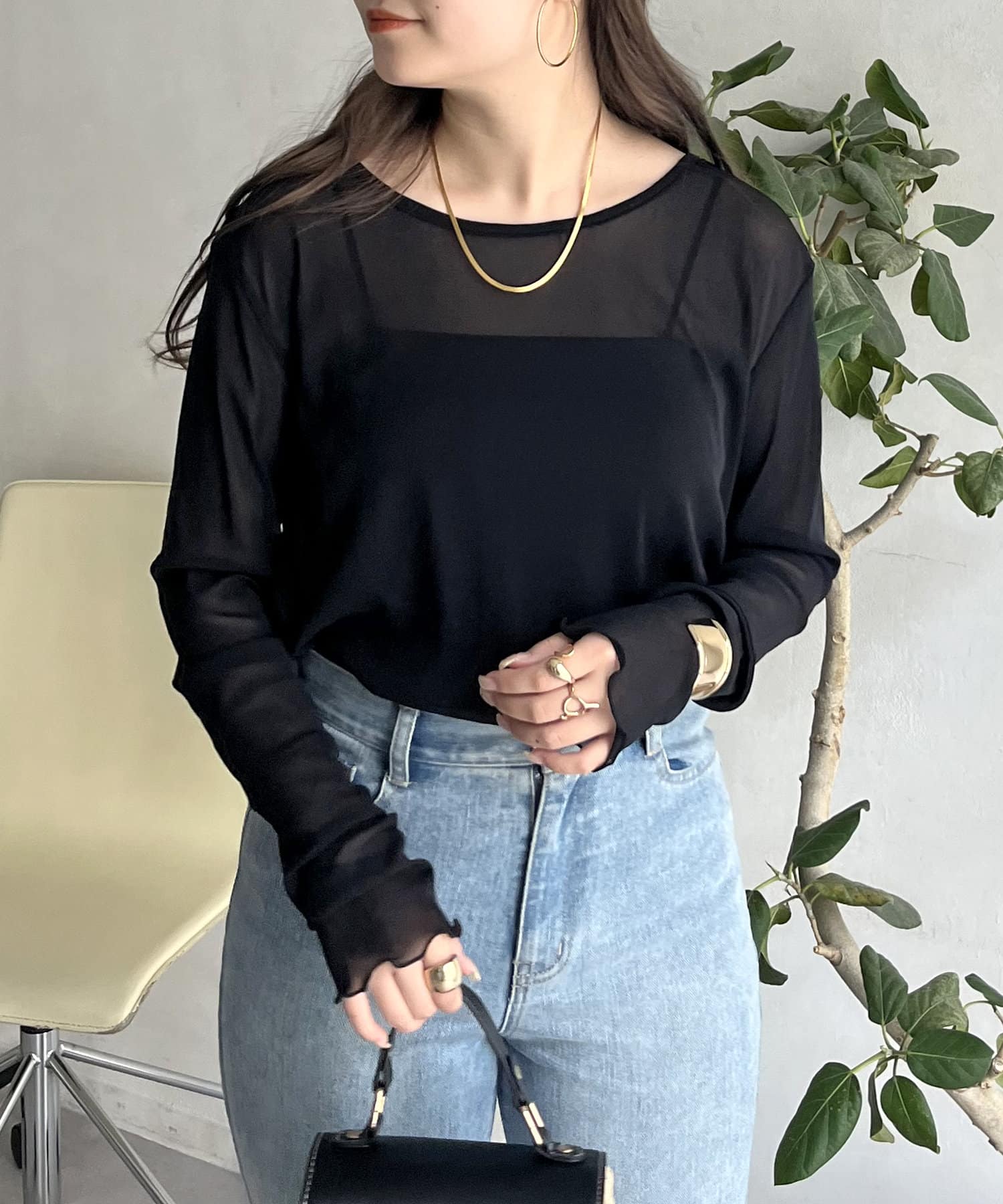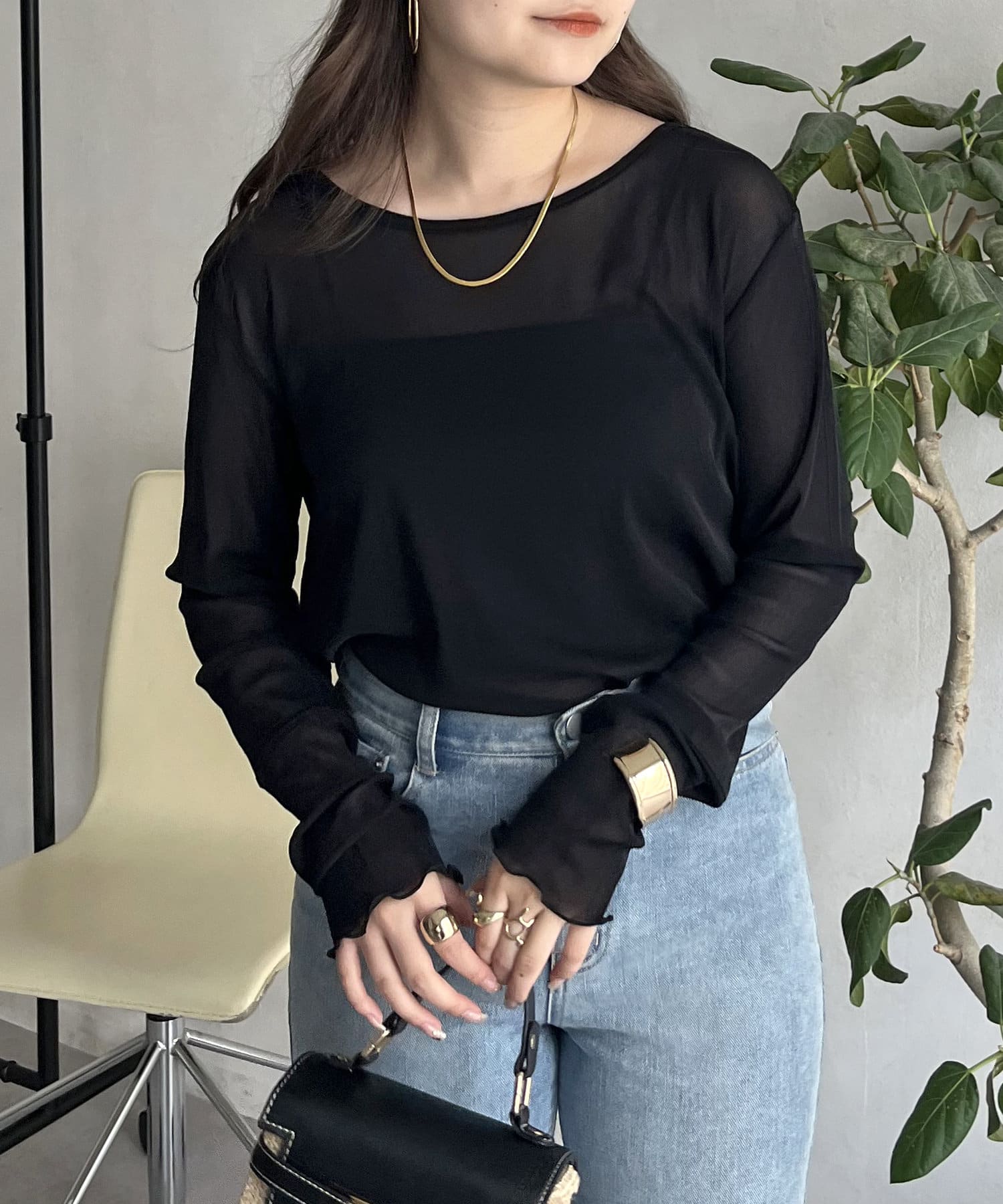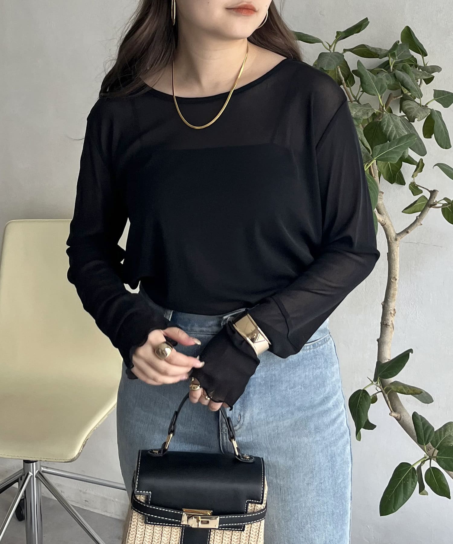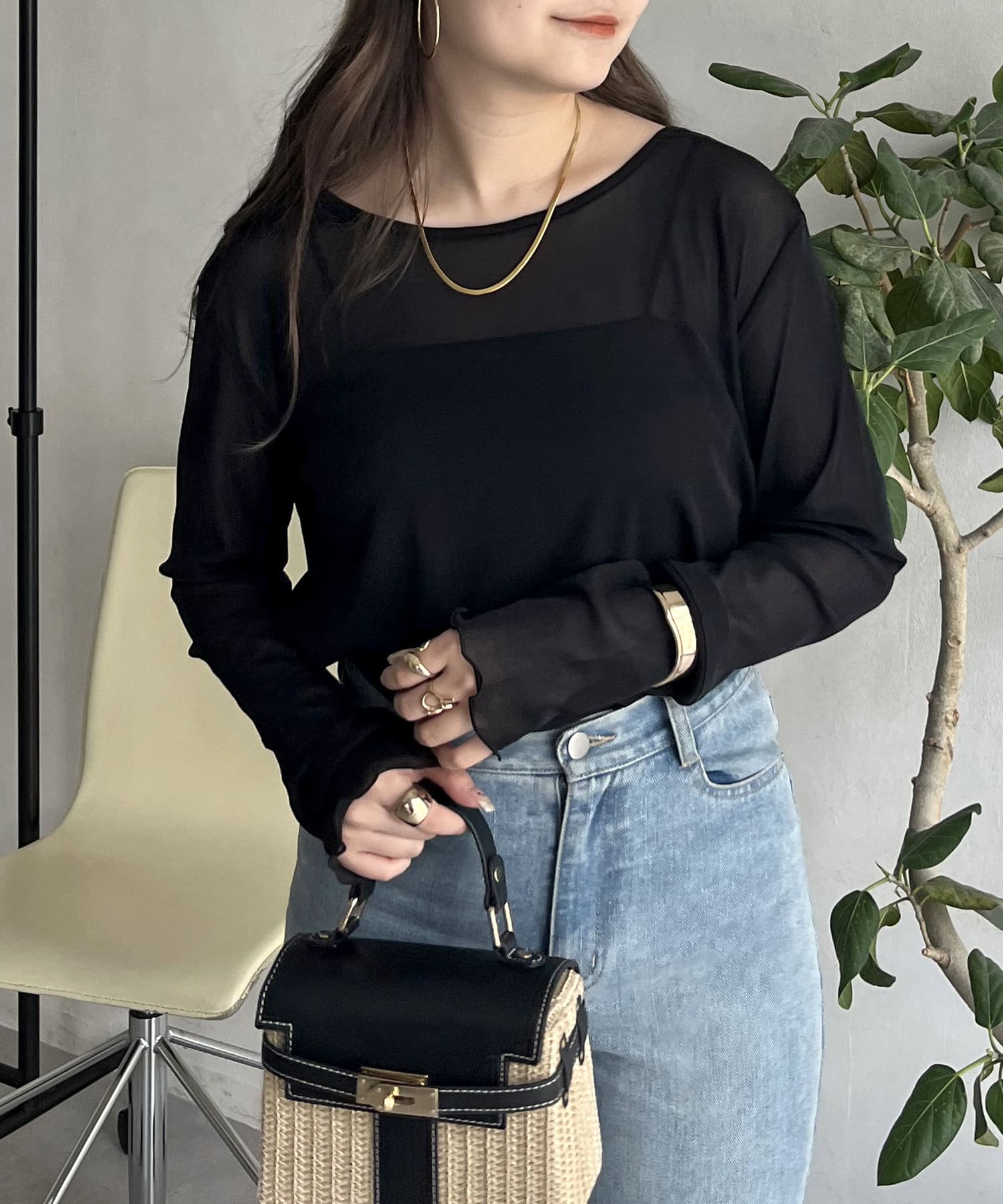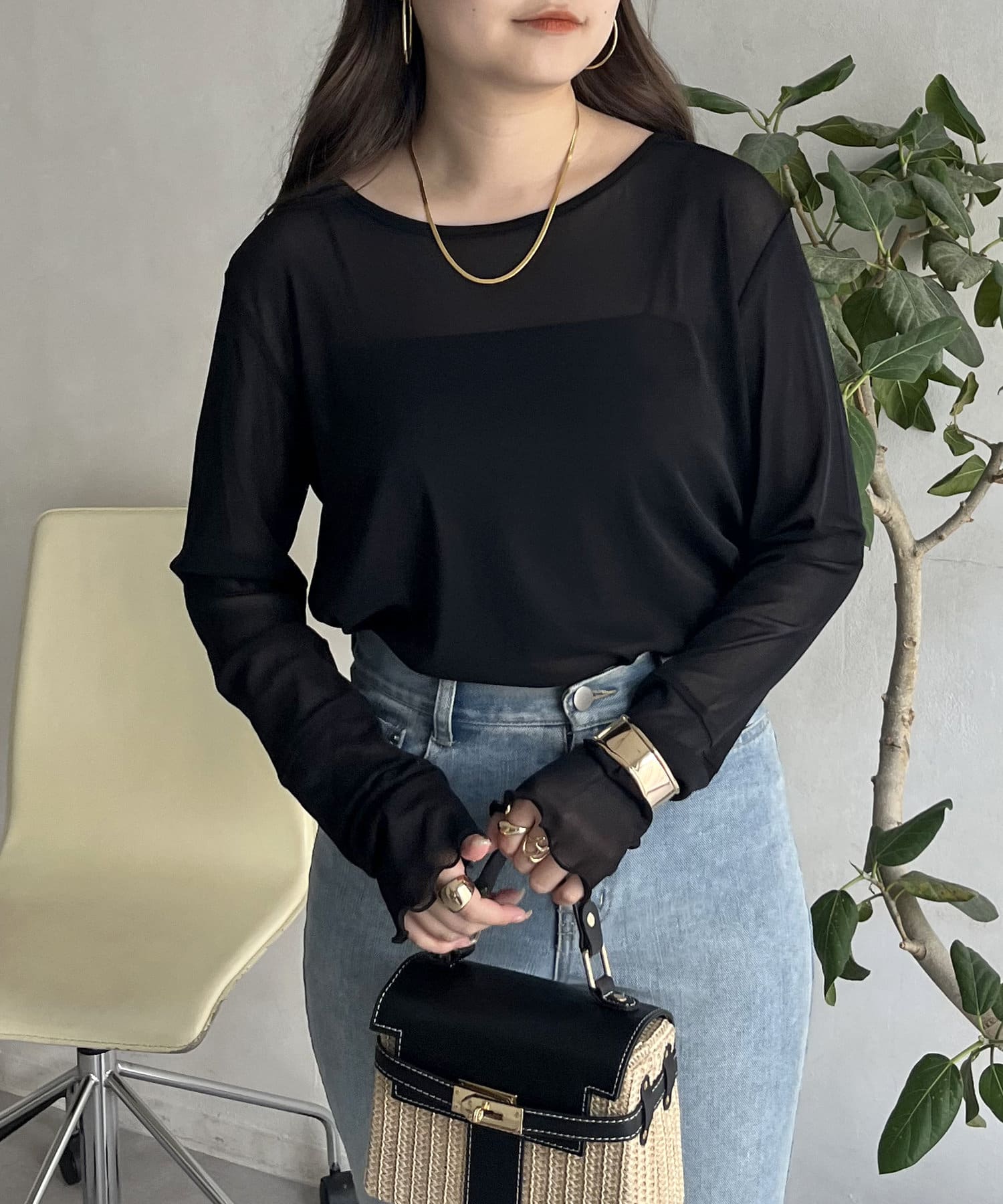 シアー×シアーで程よい肌見せをしてくれる配色ロンT