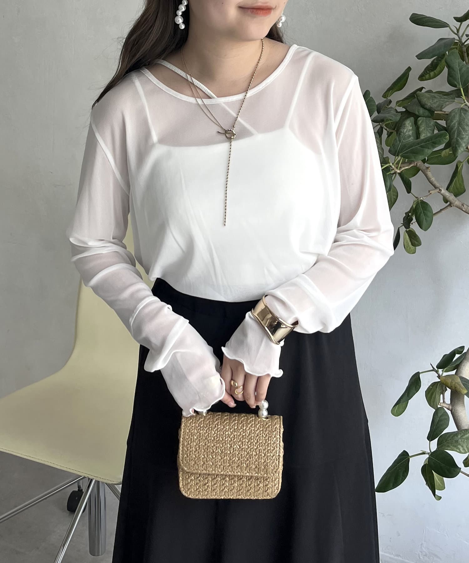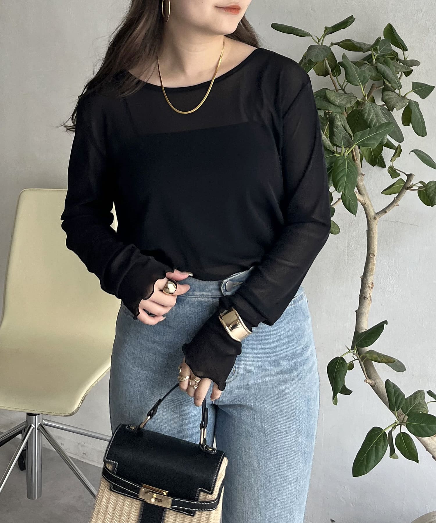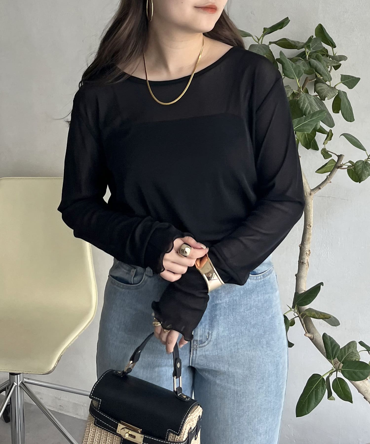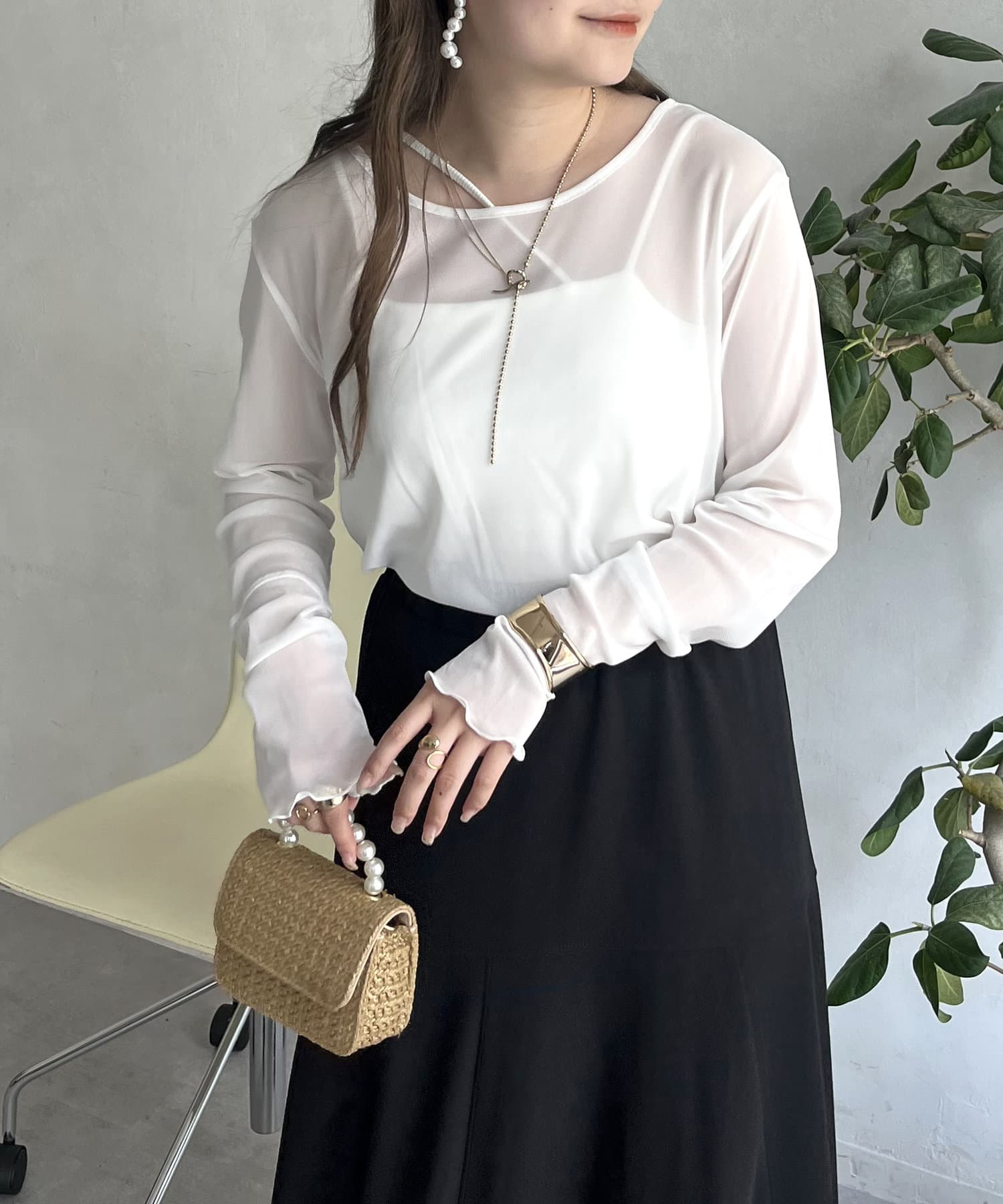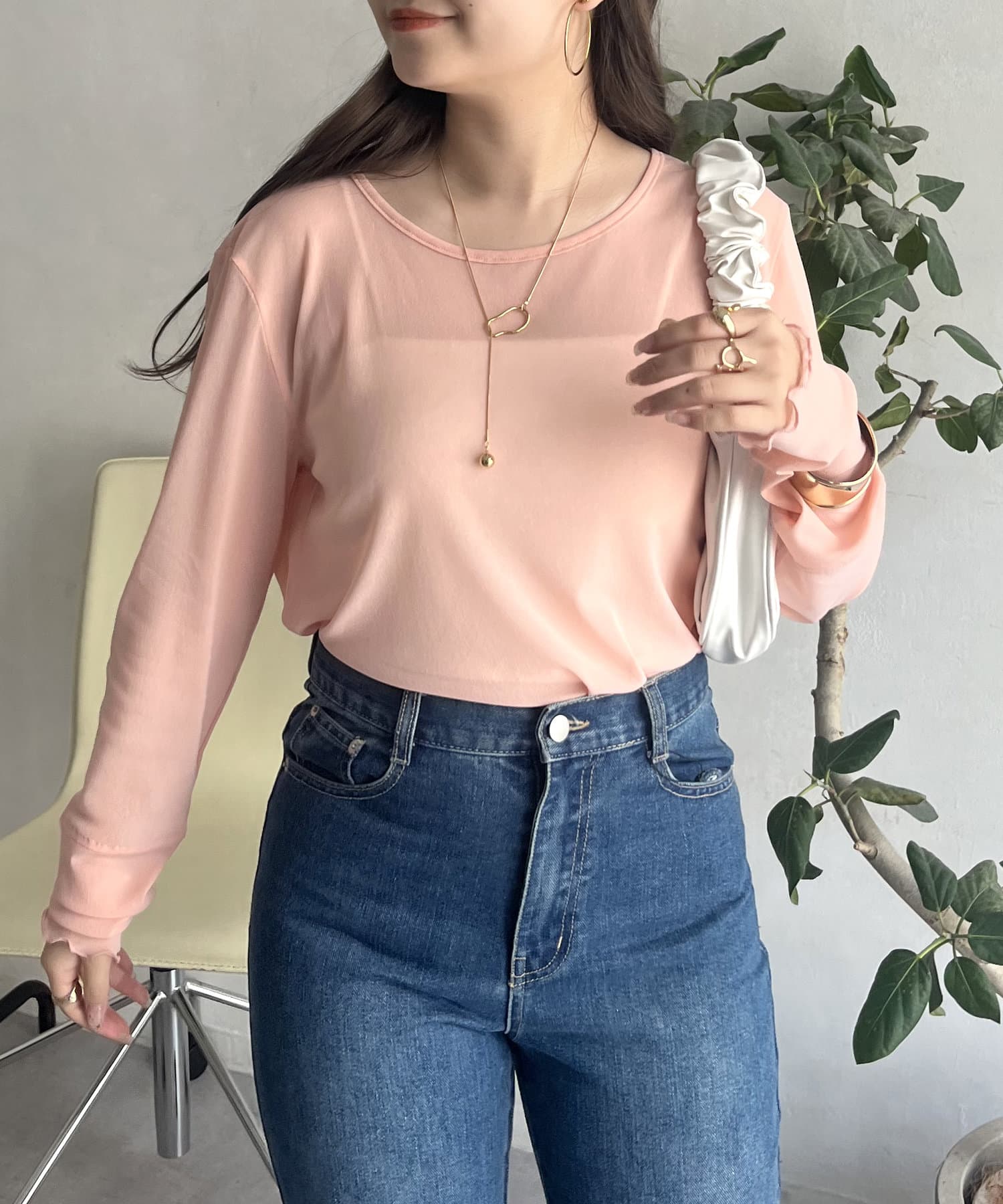 シアー×シアーで程よい肌見せをしてくれる配色ロンT