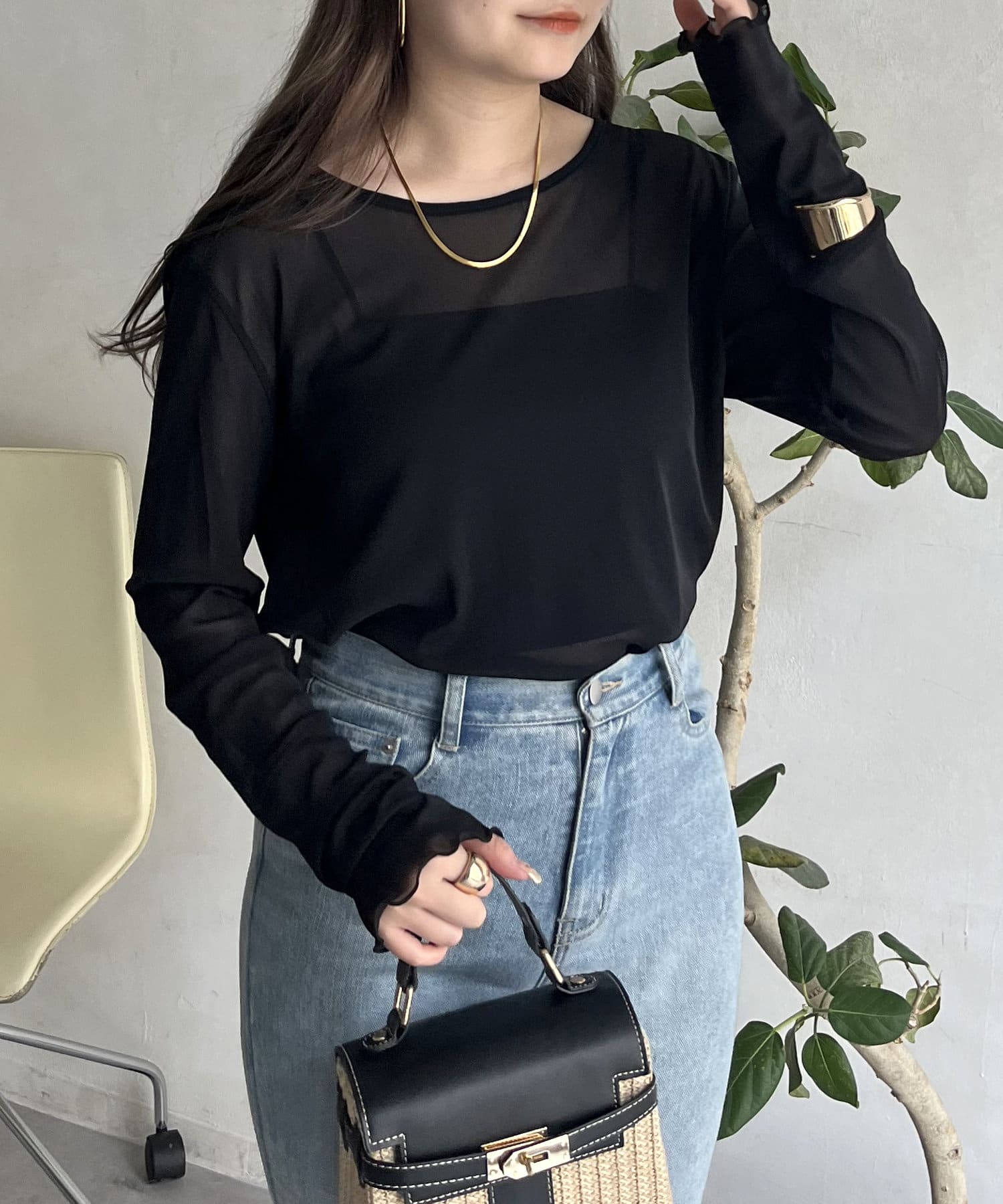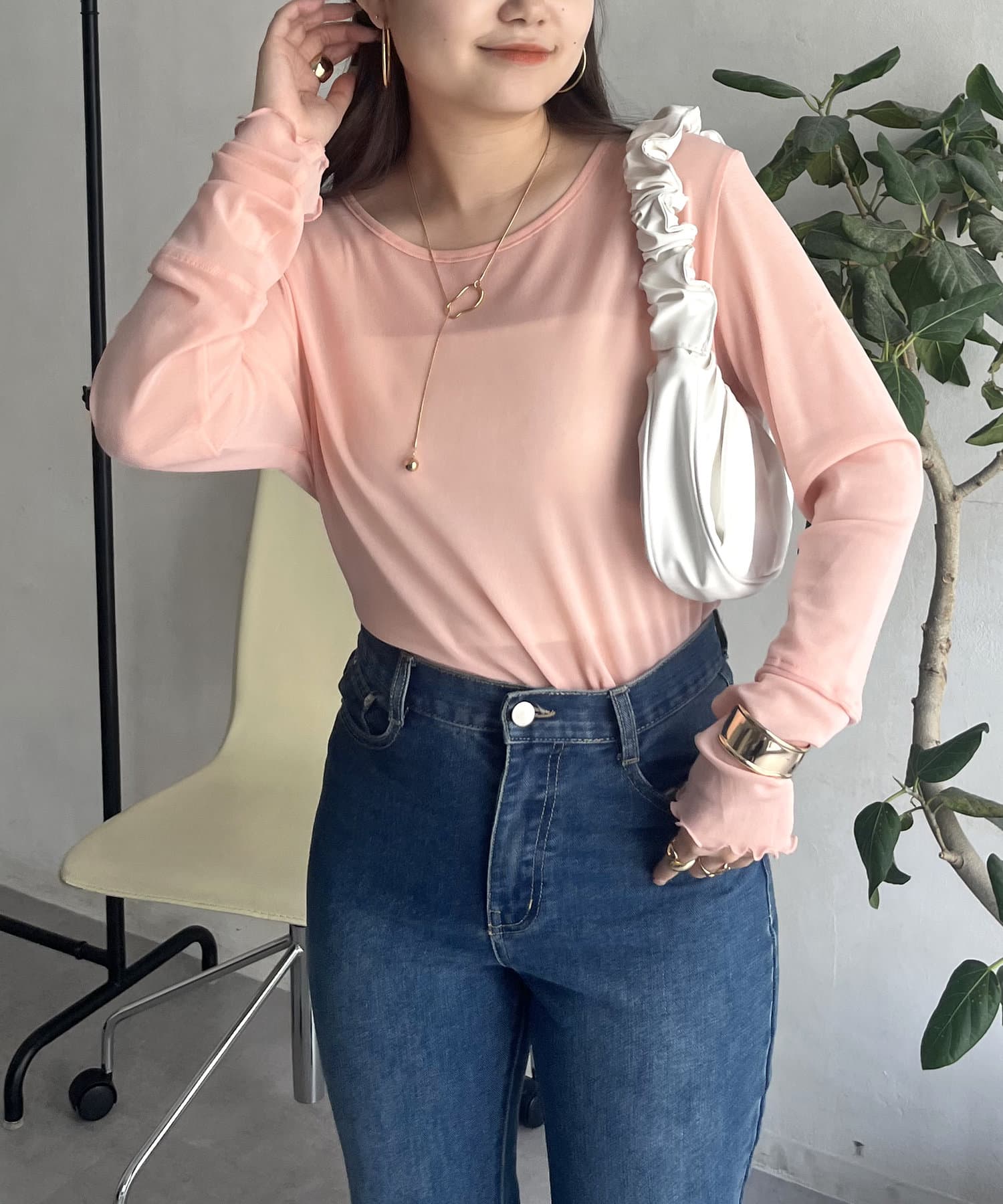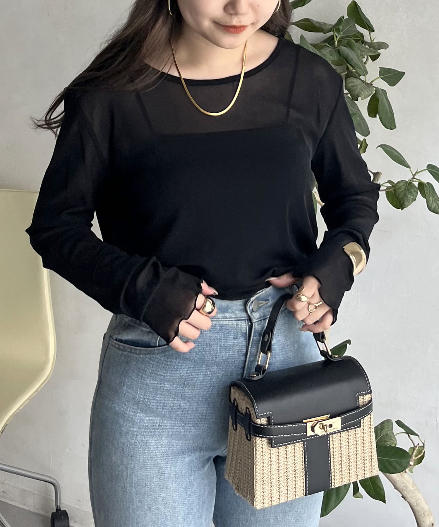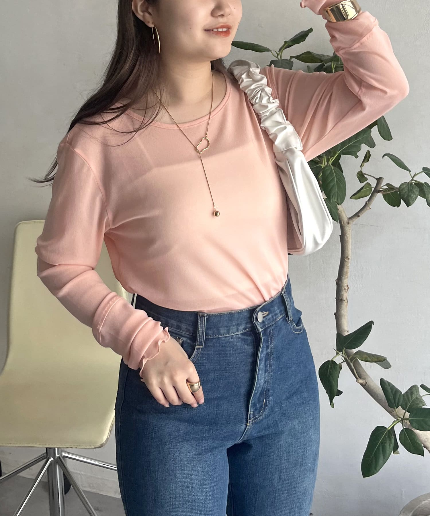 シアー×シアーで程よい肌見せをしてくれる配色ロンT