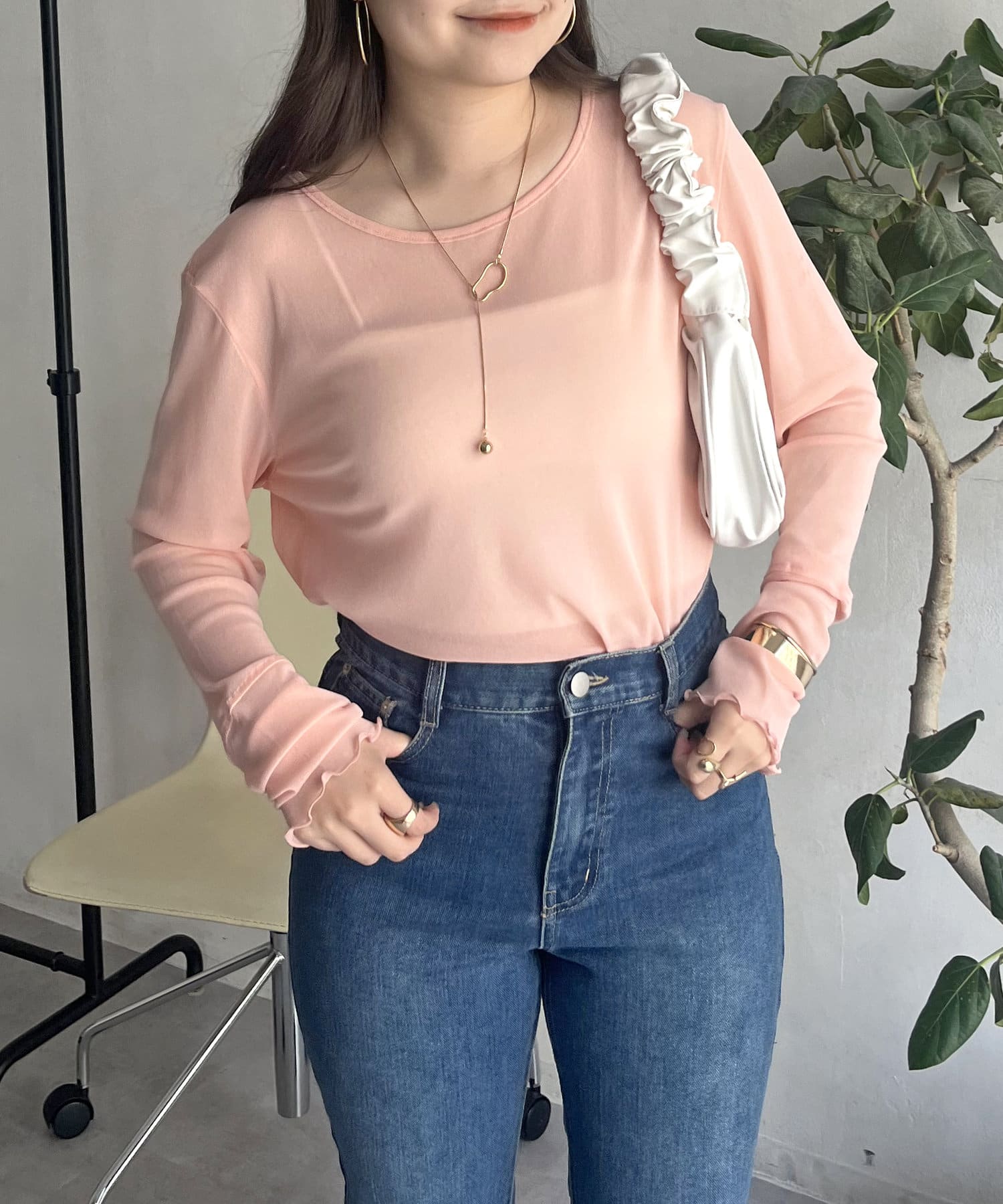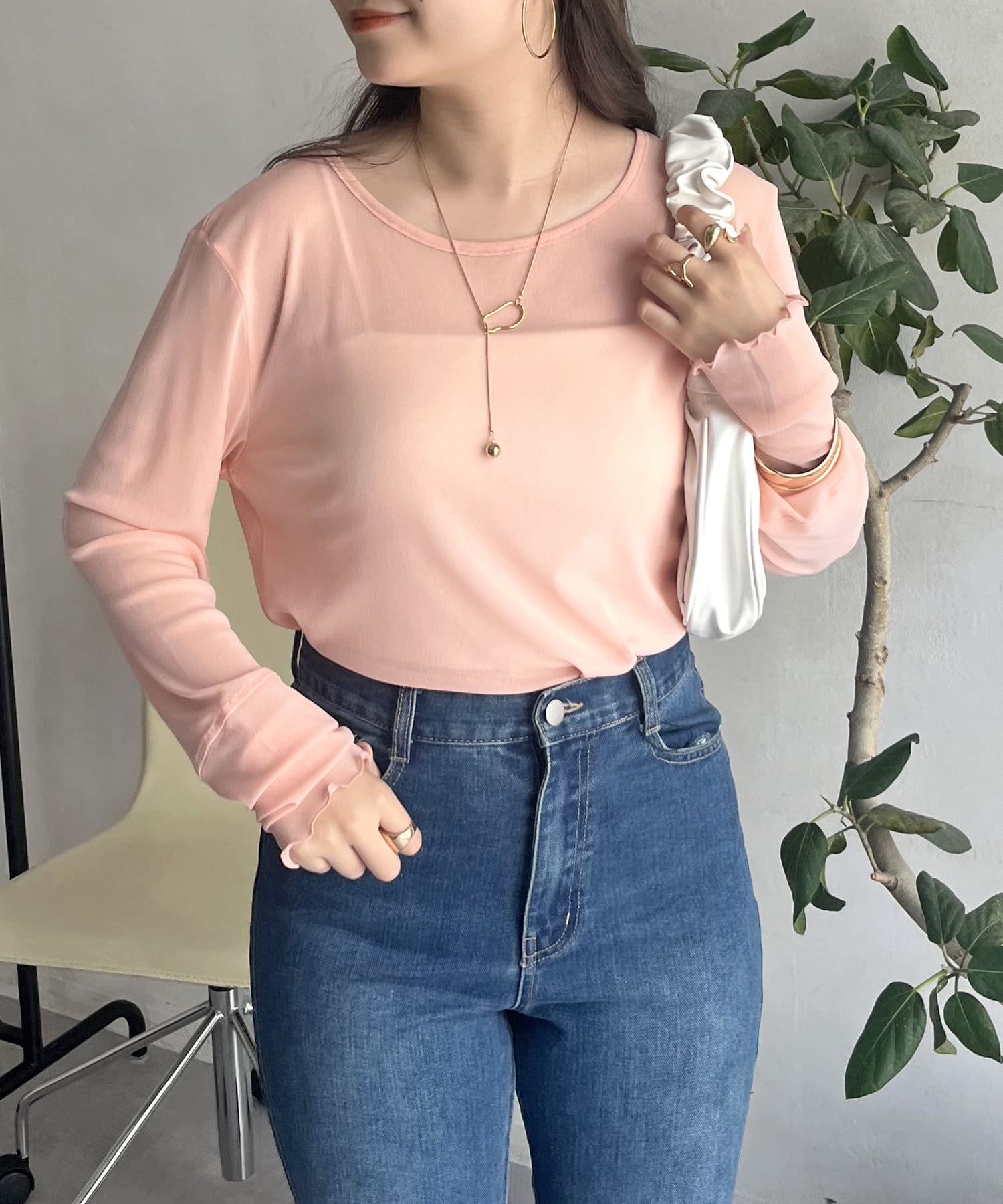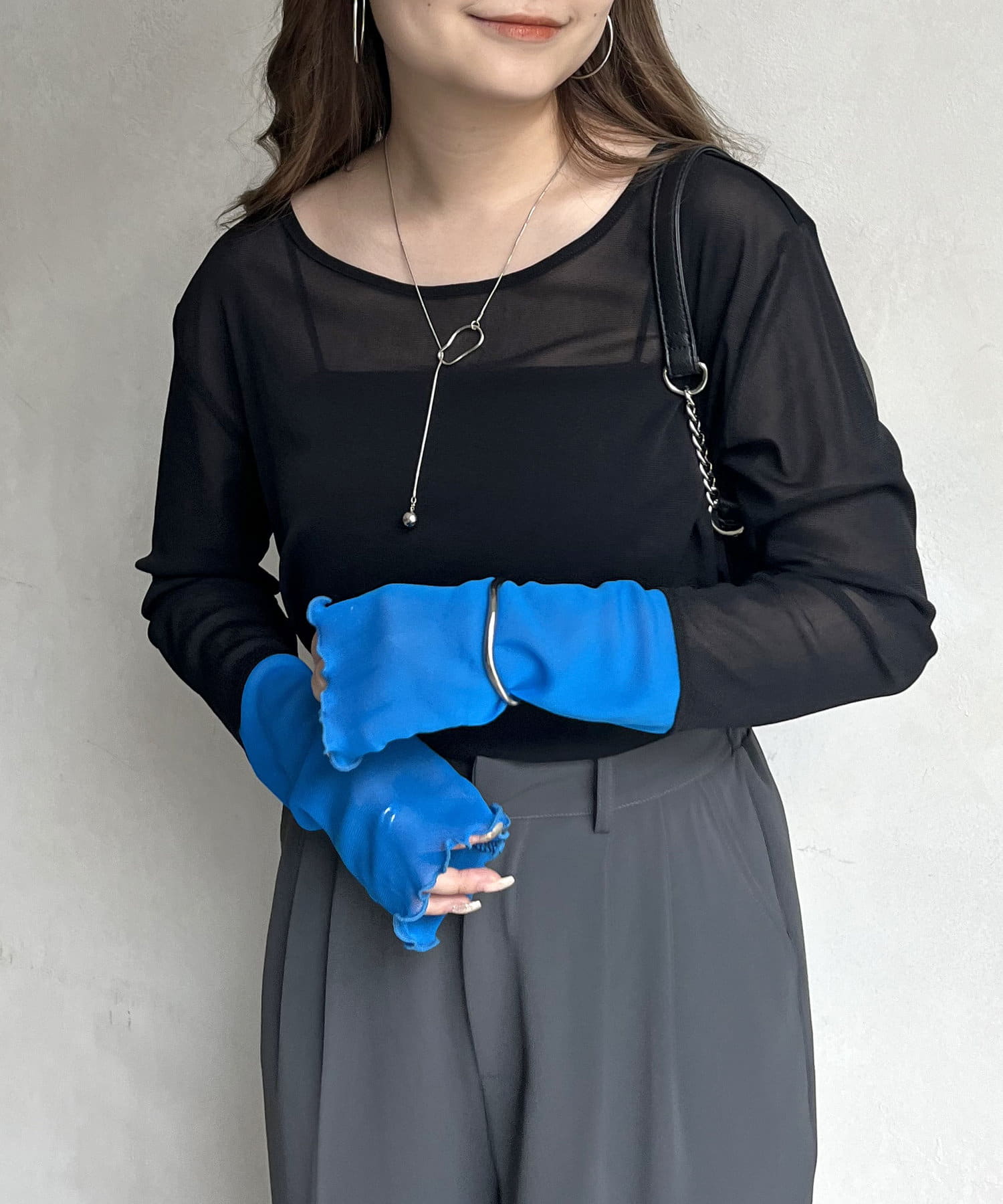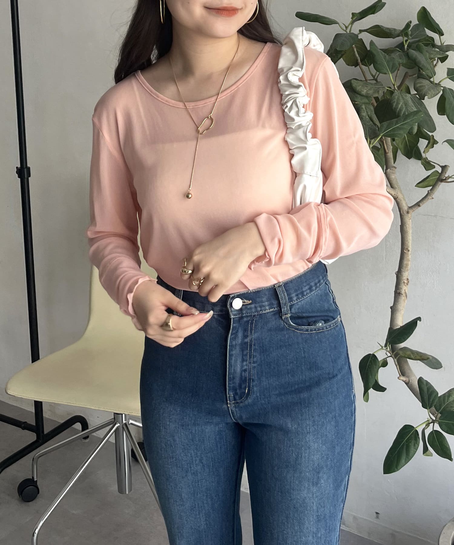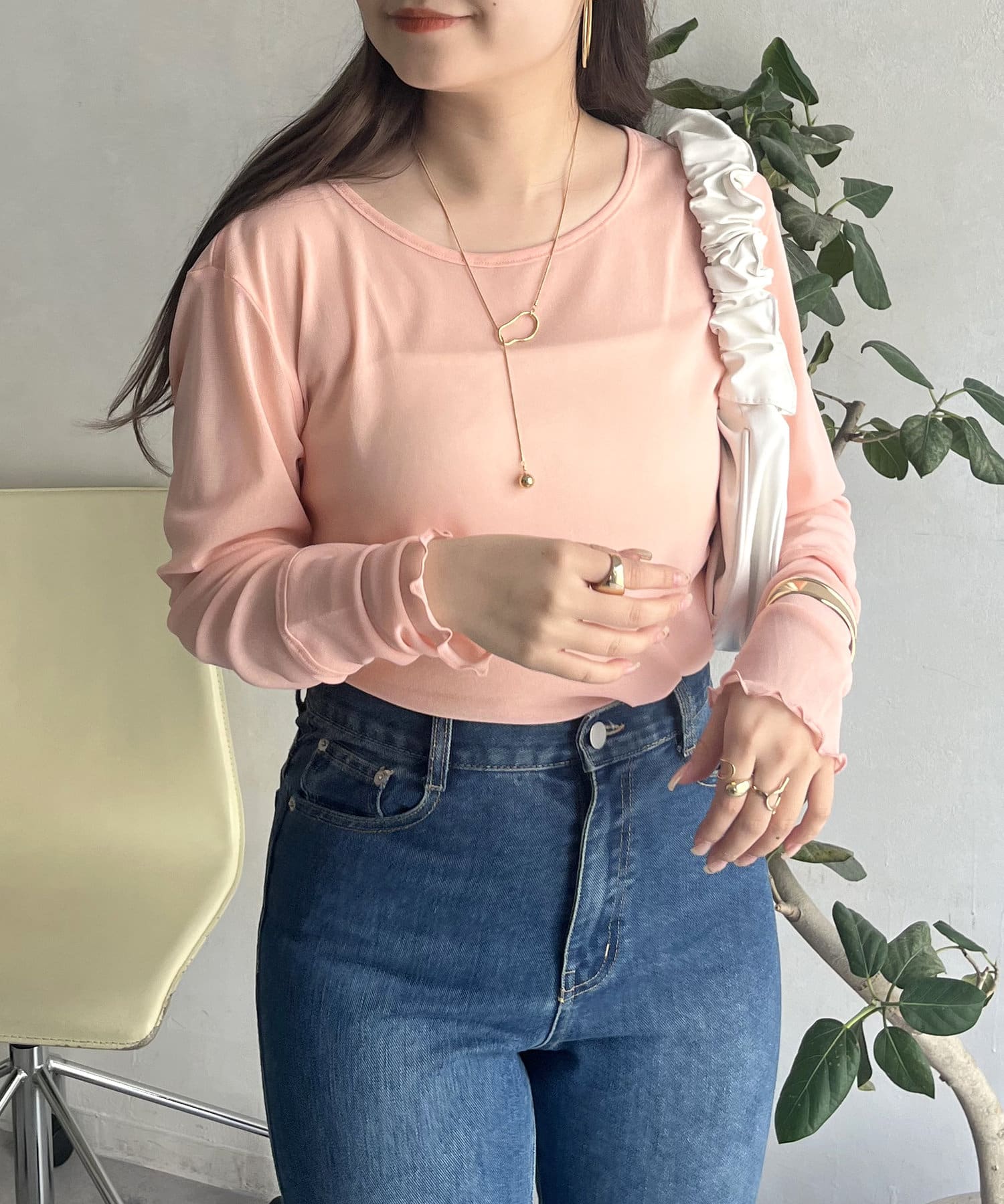 シアー×シアーで程よい肌見せをしてくれる配色ロンT