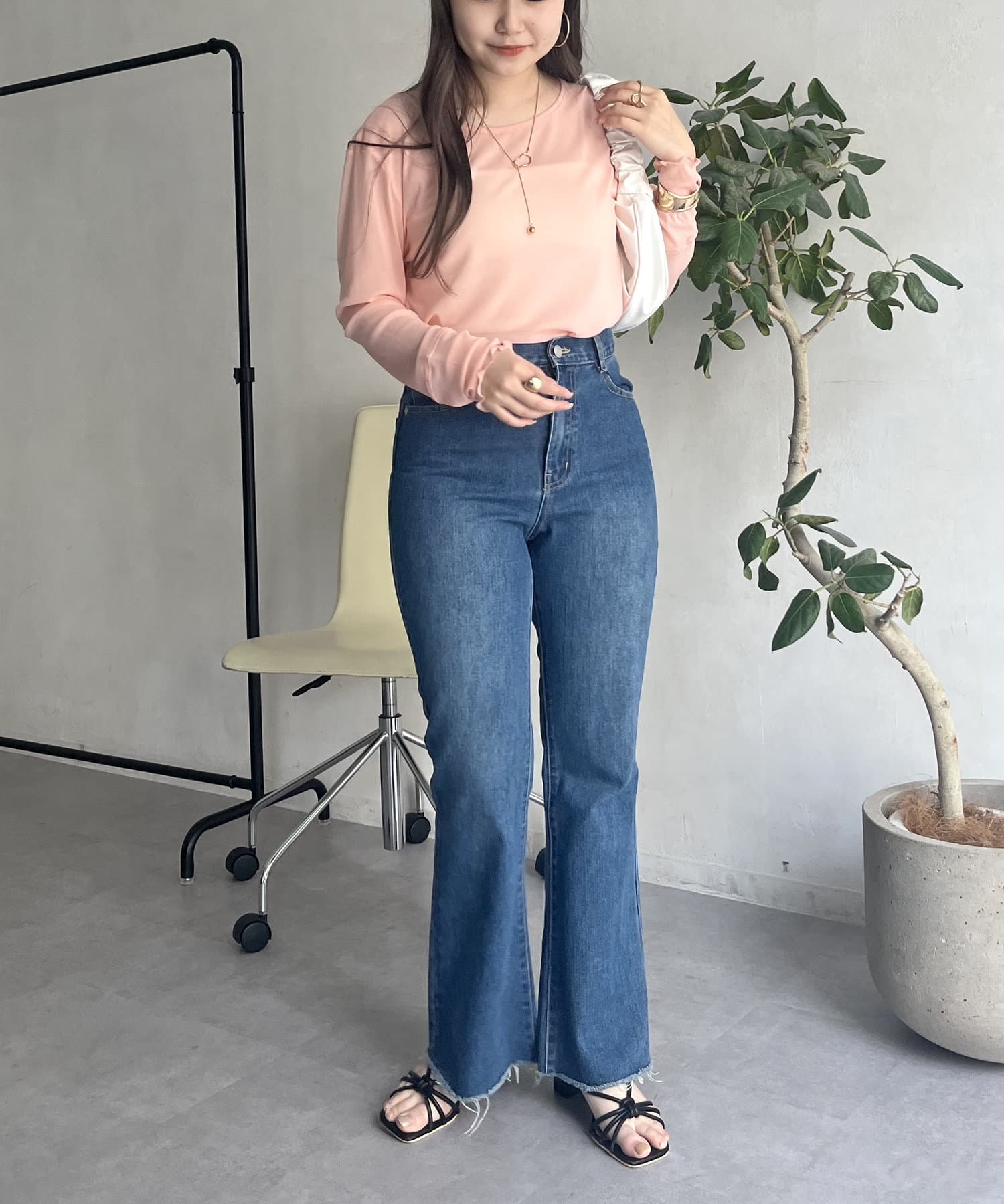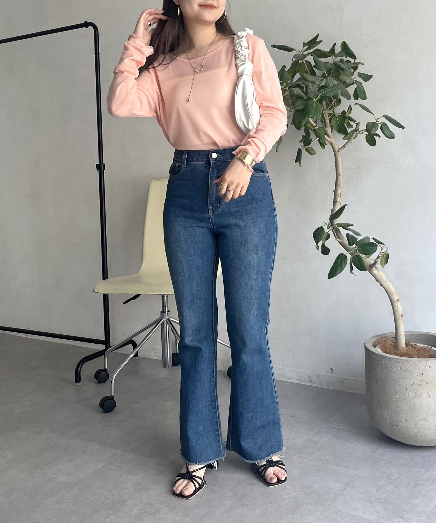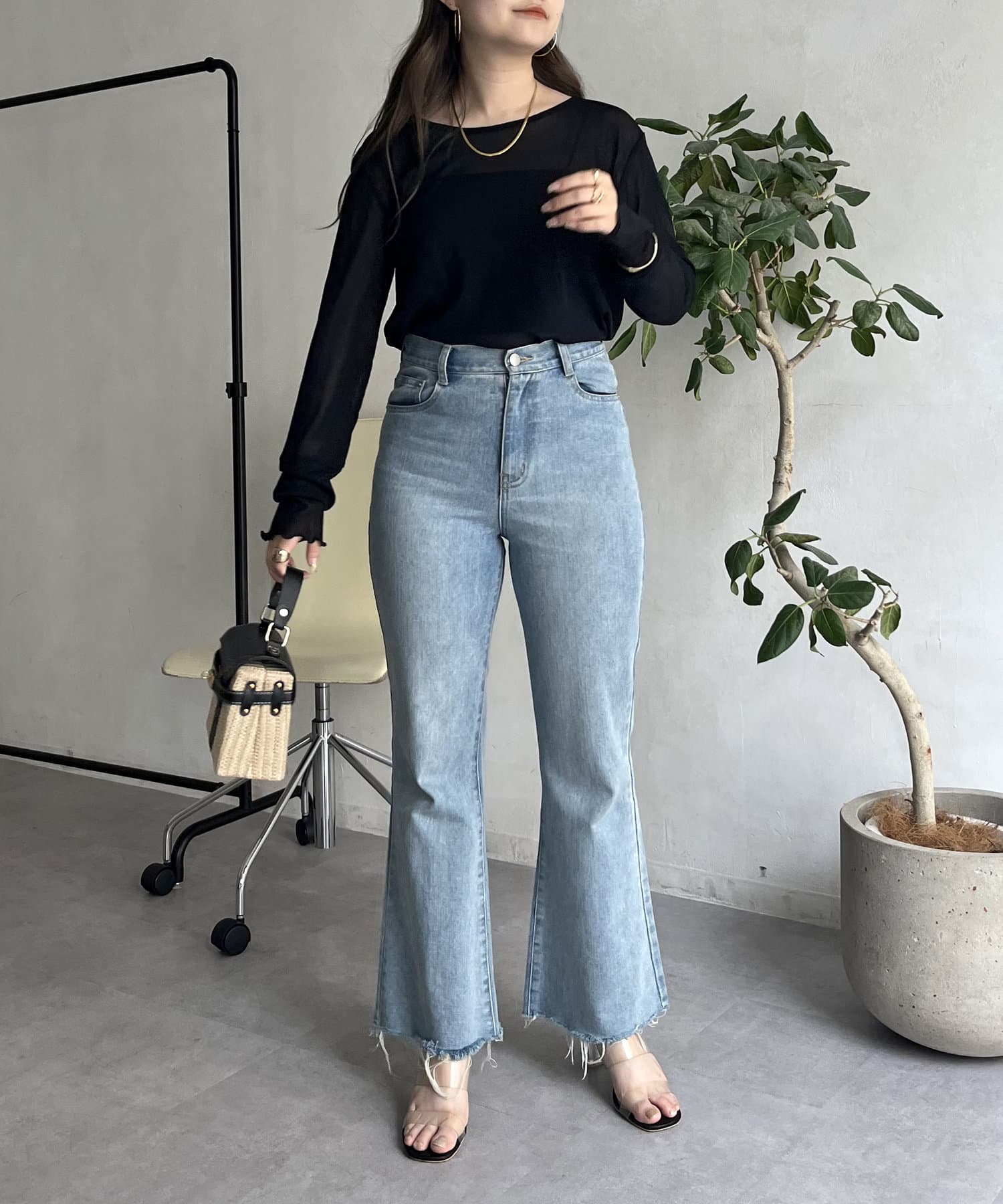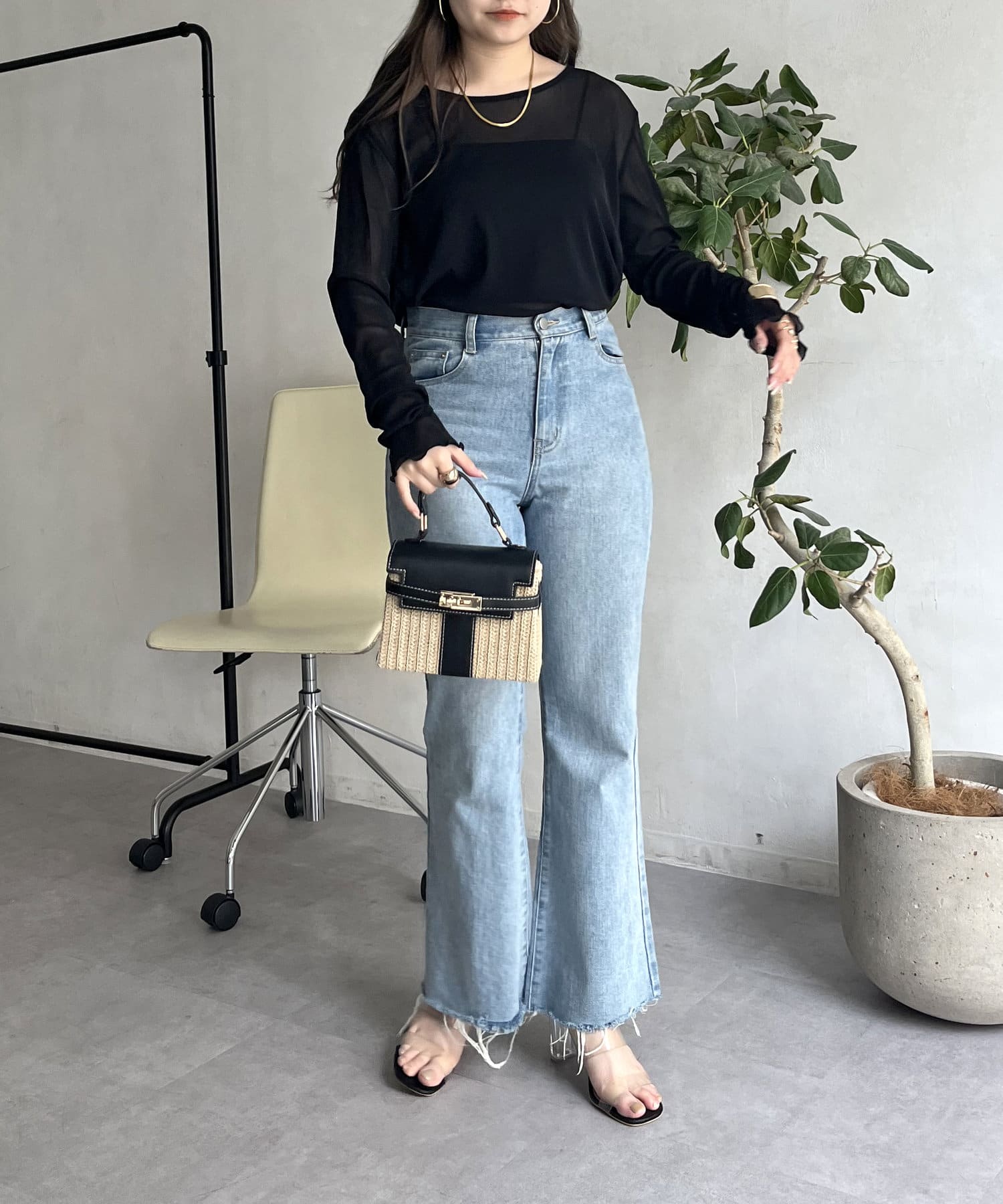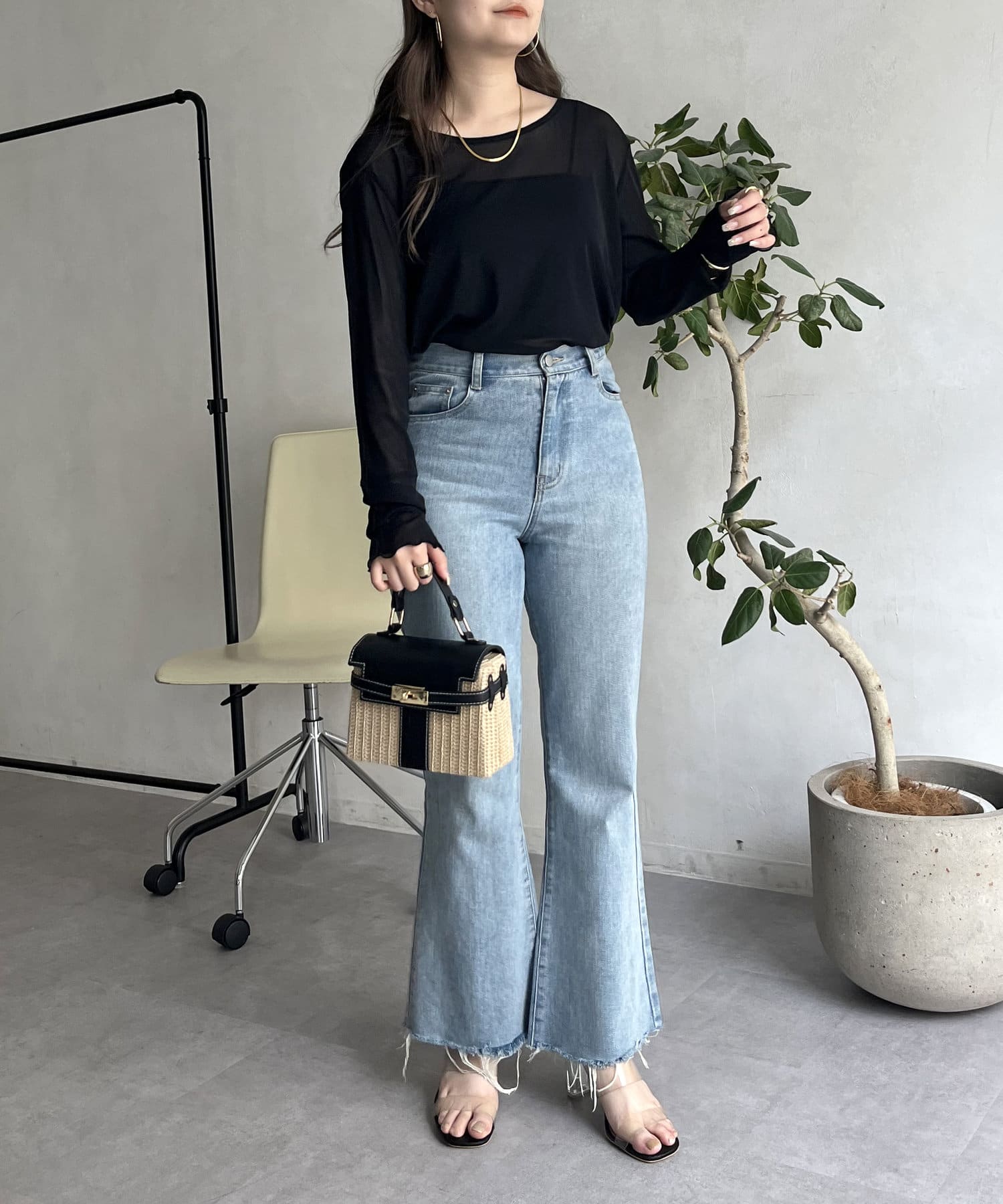シアー×シアーで程よい肌見せをしてくれる配色ロンT