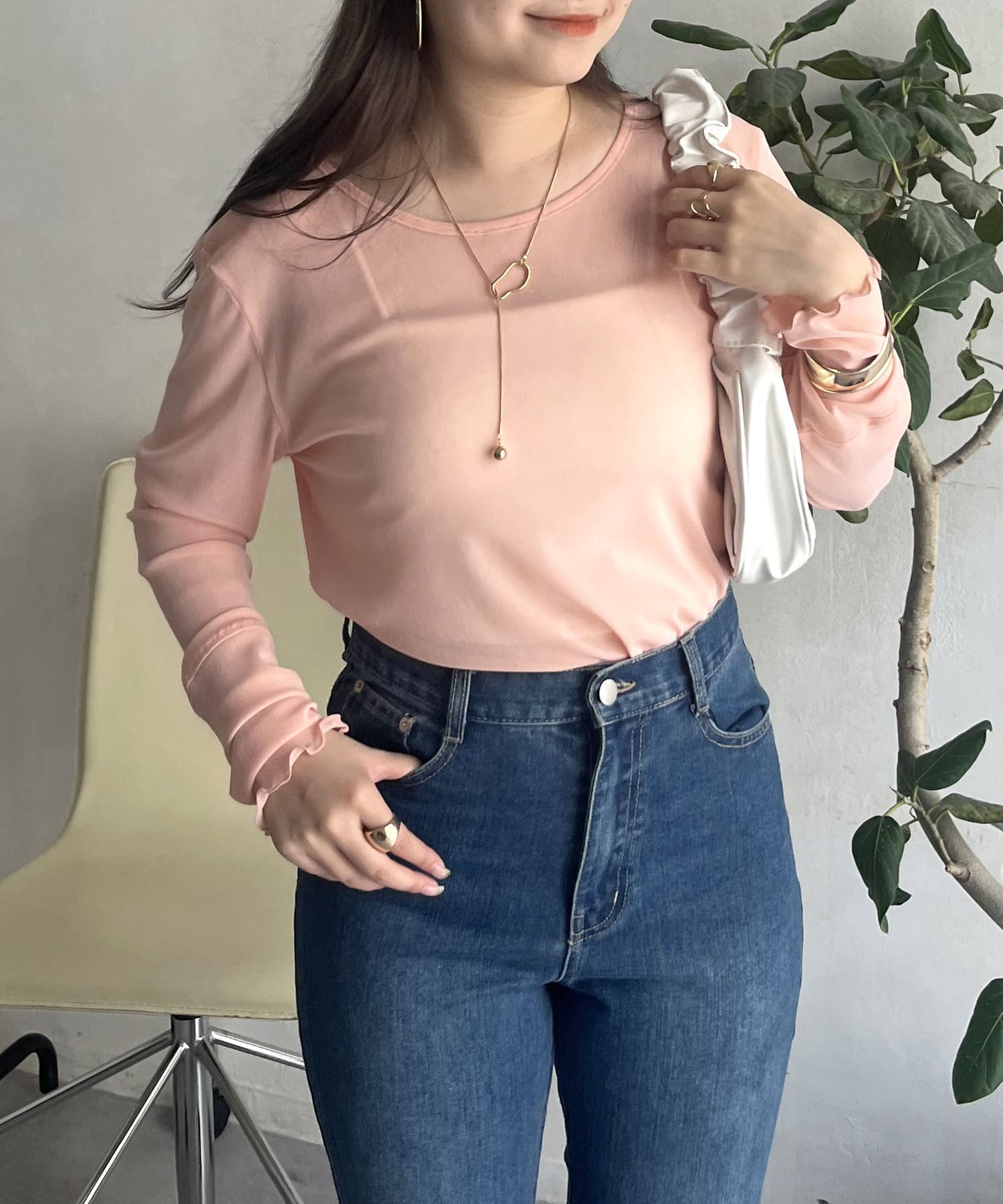 購入場所:パルクローゼットぴったぴたではないのでとても着やすい。裾のメローもかわいいです。ワンピの下やベストに合わせたり、とても活躍しています。