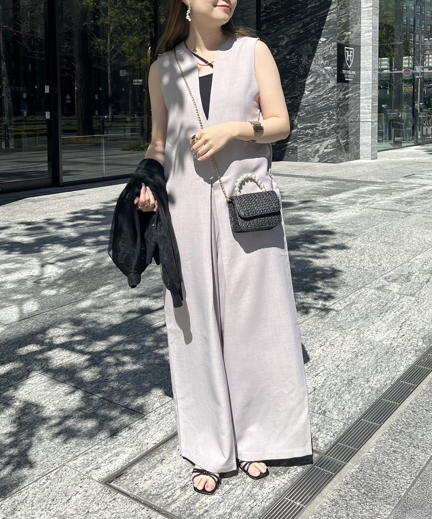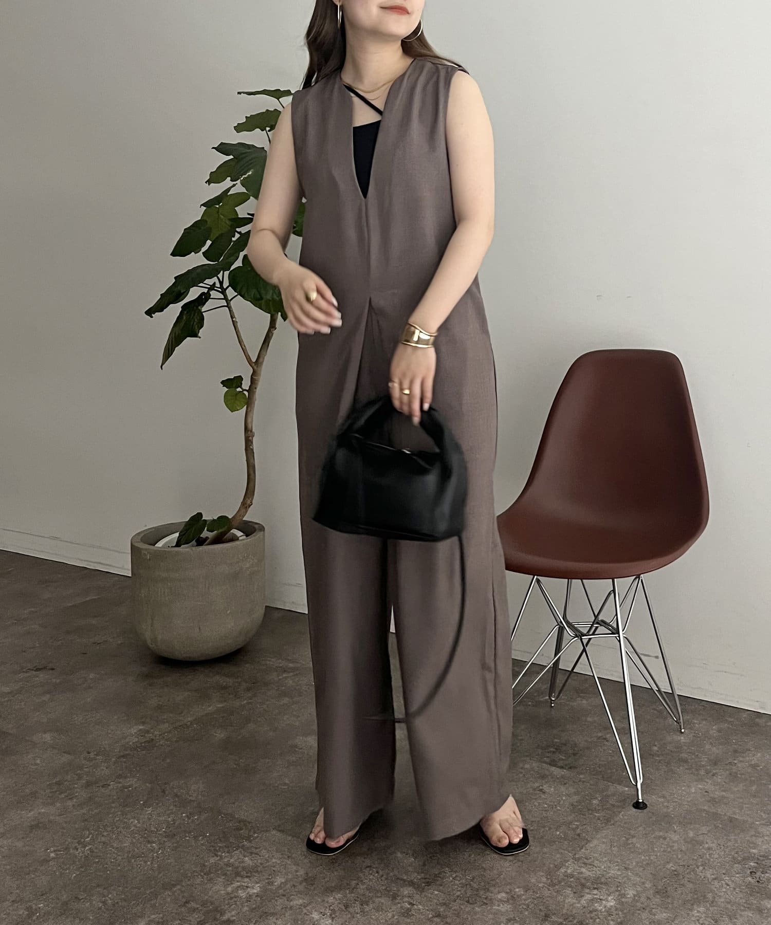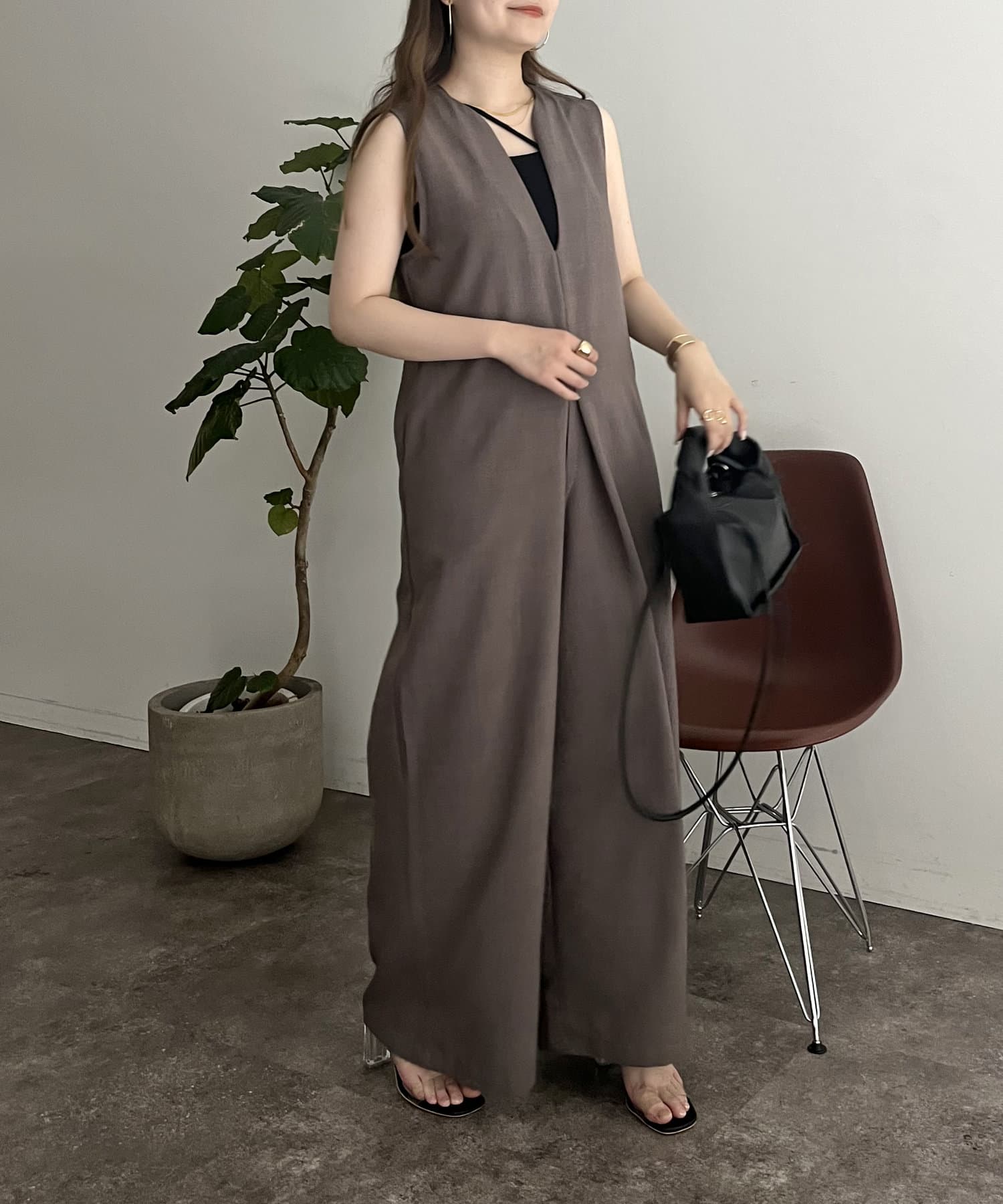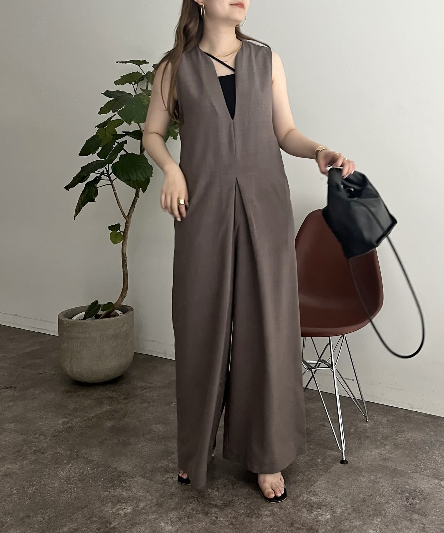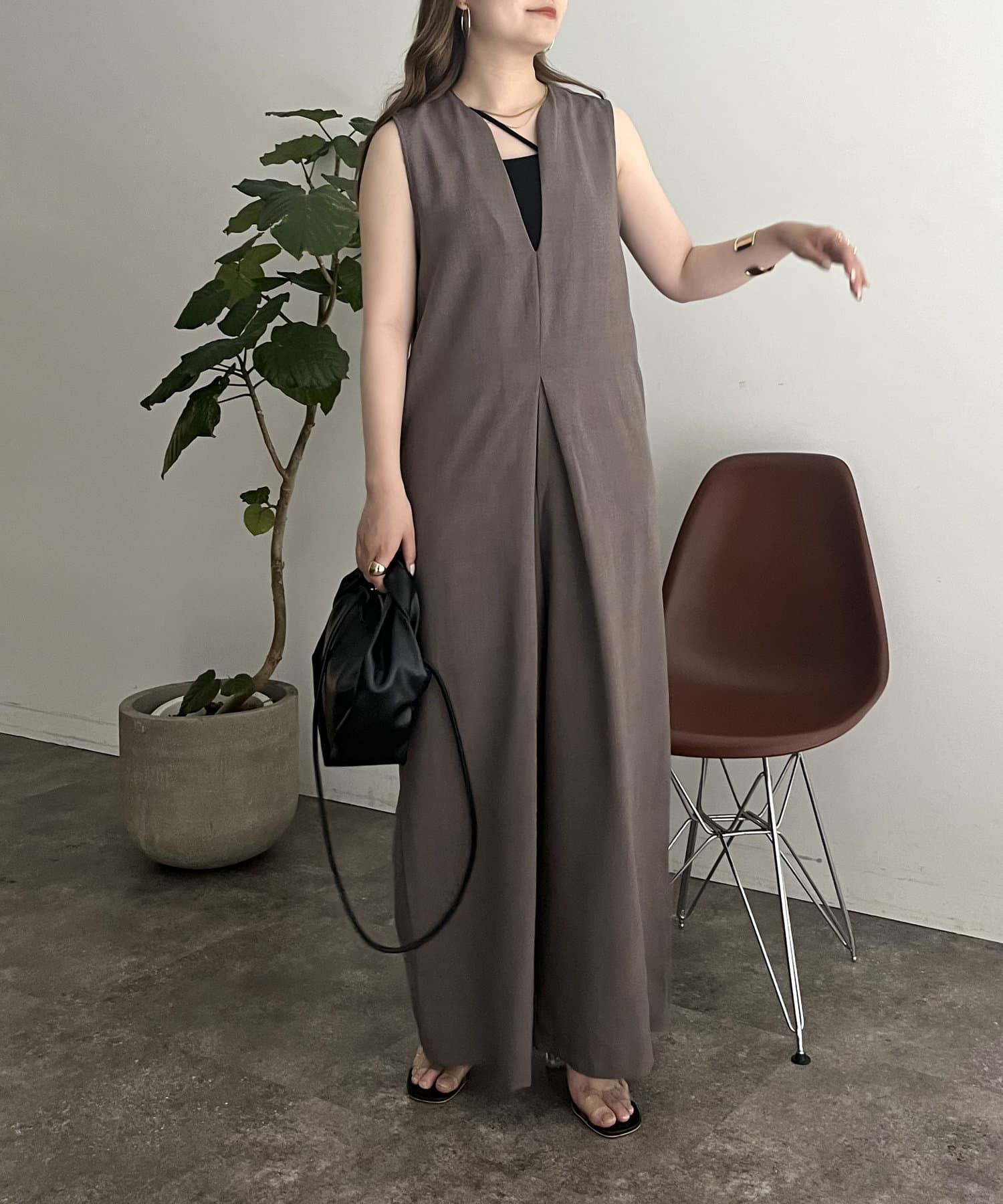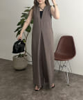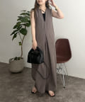 オールインワン /キーネック/Vネック/ノースリ/大人キレイめカジュアル
