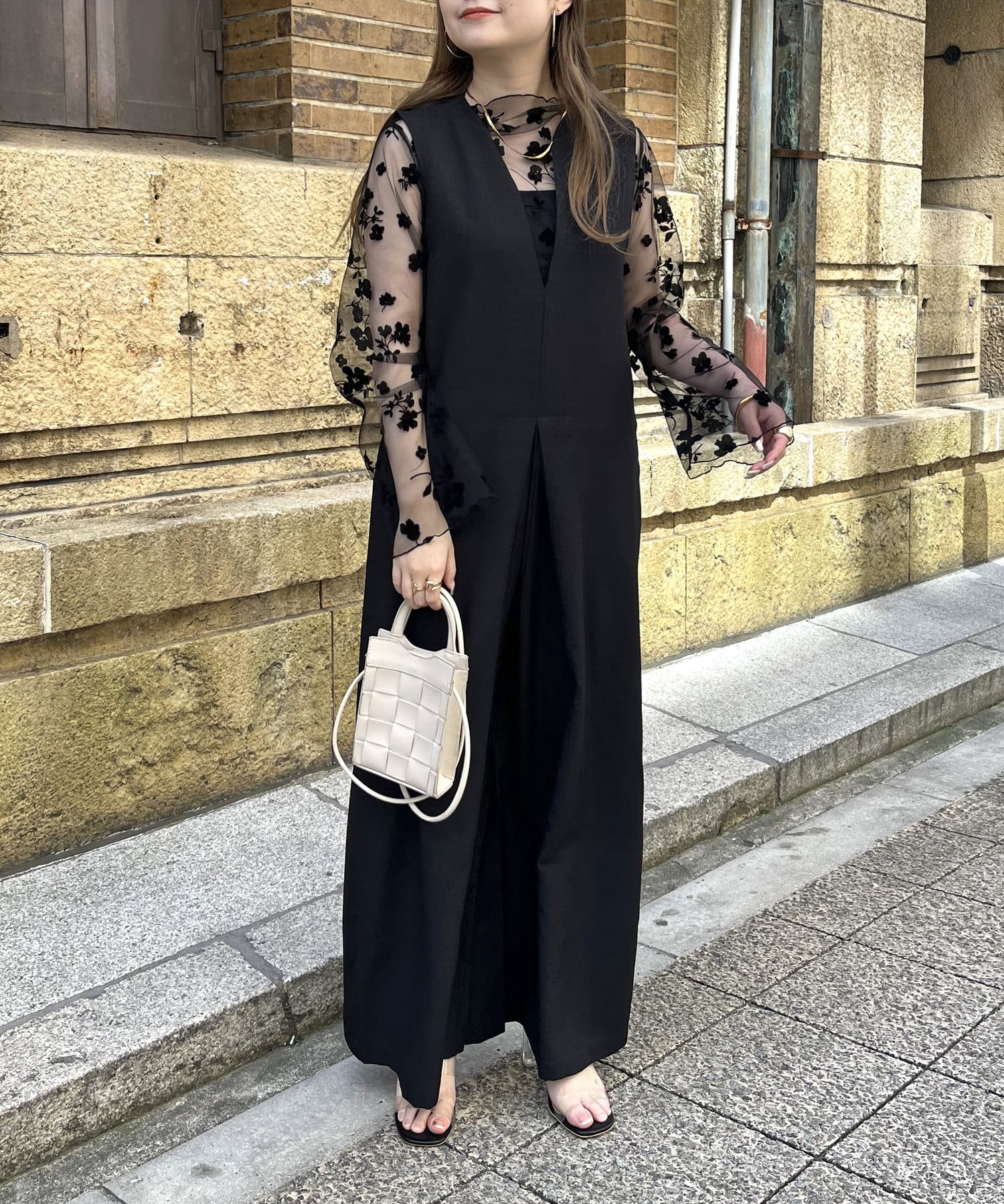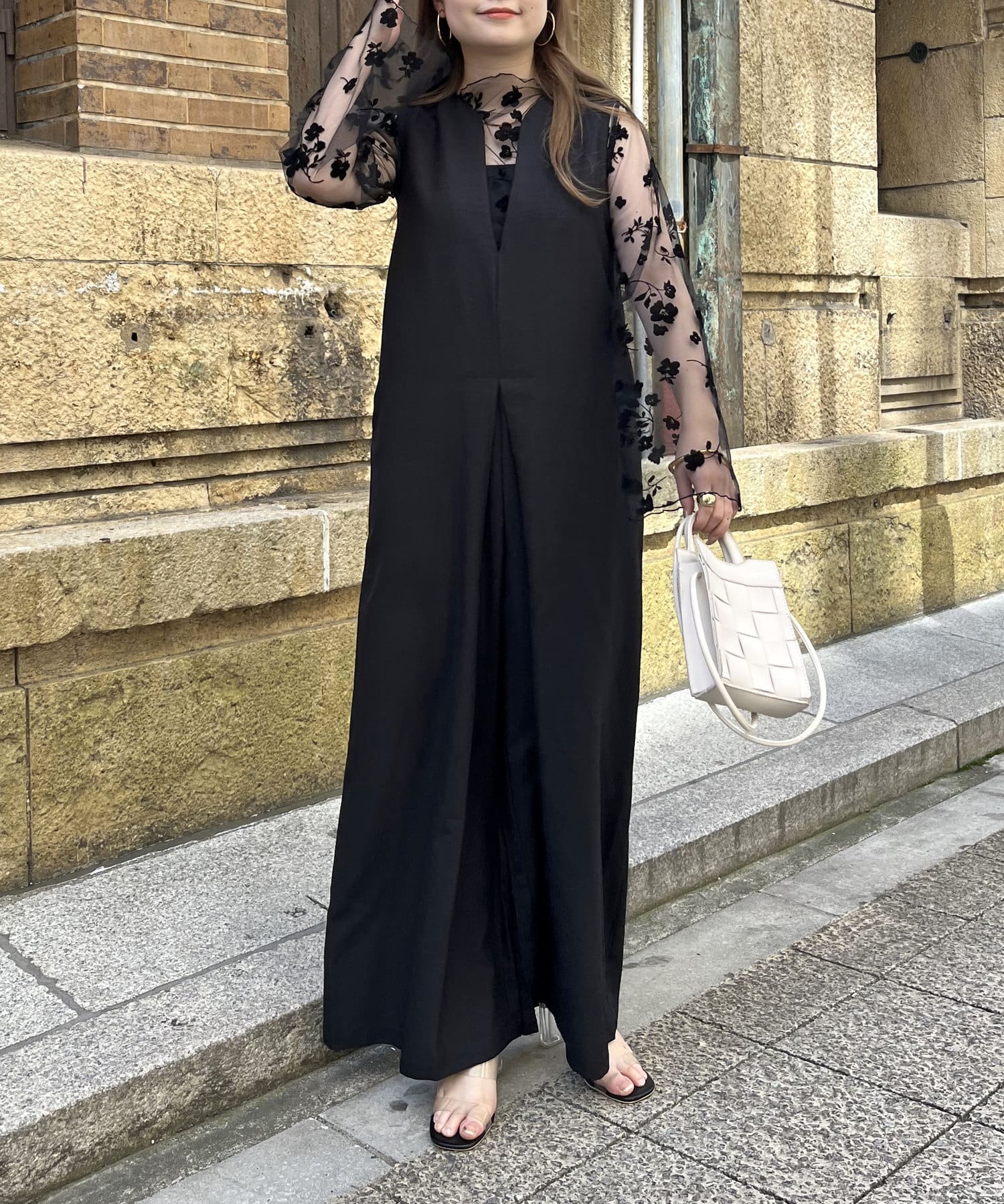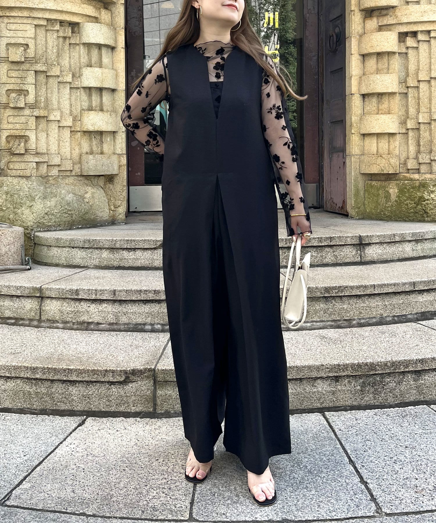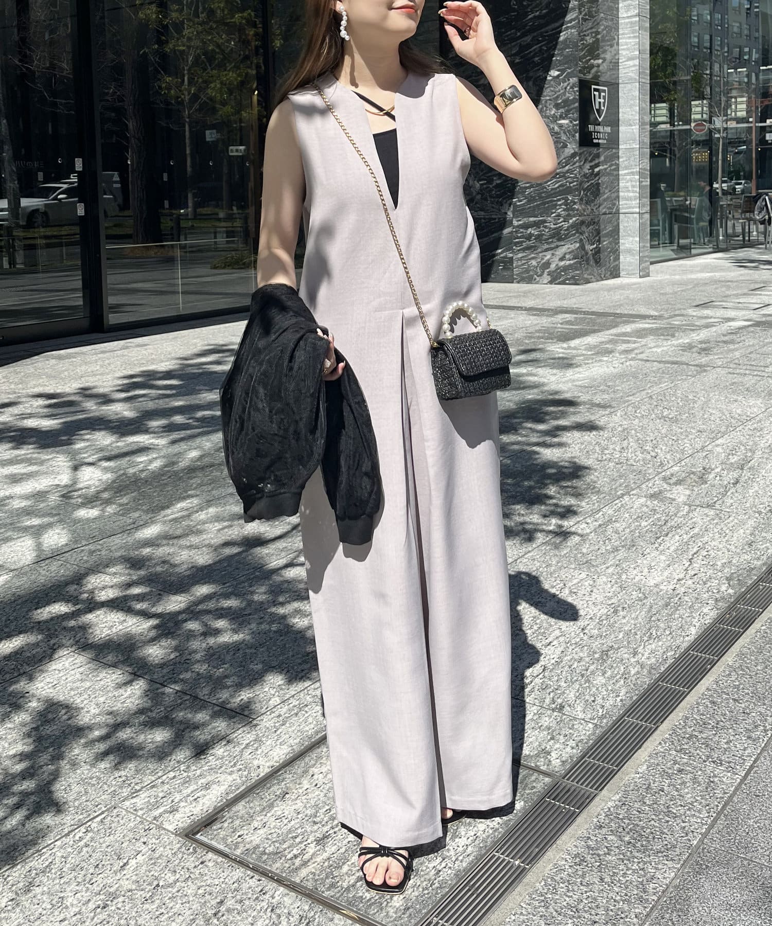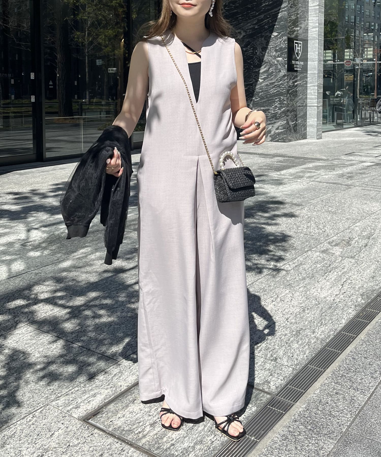 オールインワン /キーネック/Vネック/ノースリ/大人キレイめカジュアル