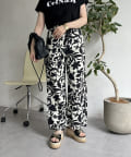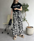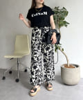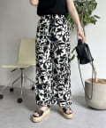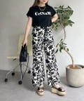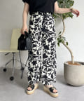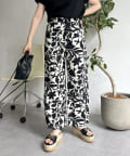 コーディネートの主役になるモノトーンフラワーイージーパンツ