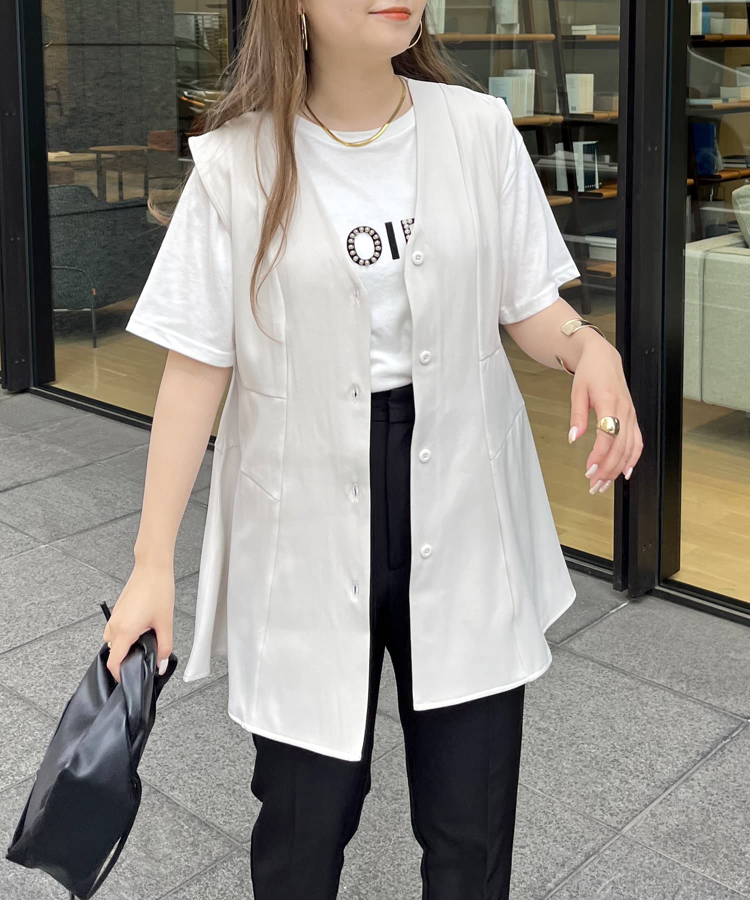 ●ボタンを締めるとさらにウエストマークしてくれます◎