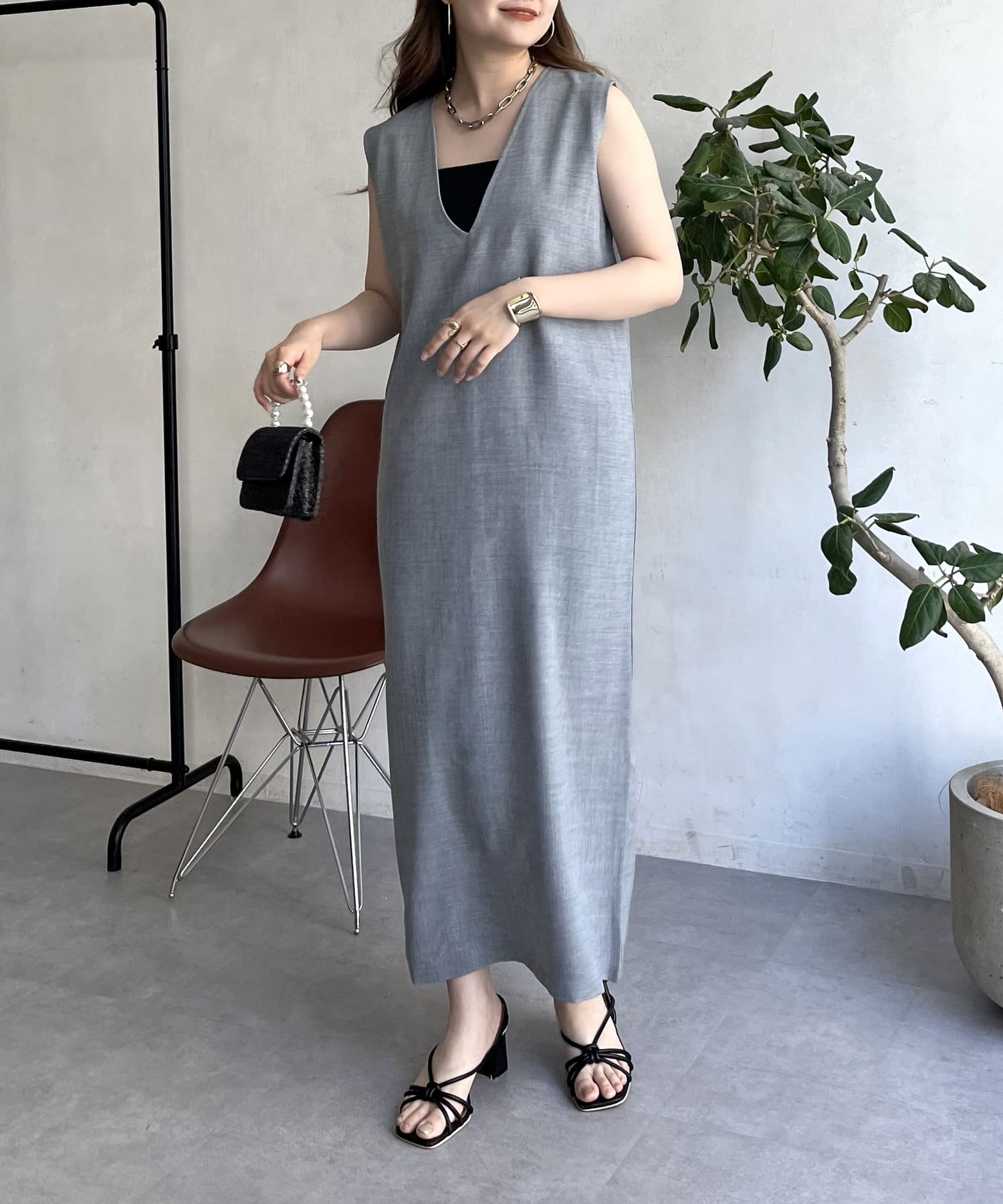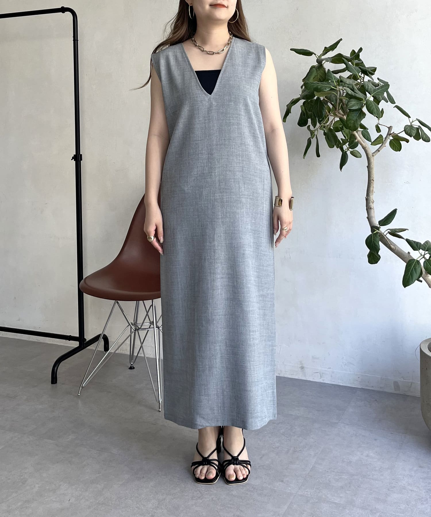 メランジVネックワンピース
