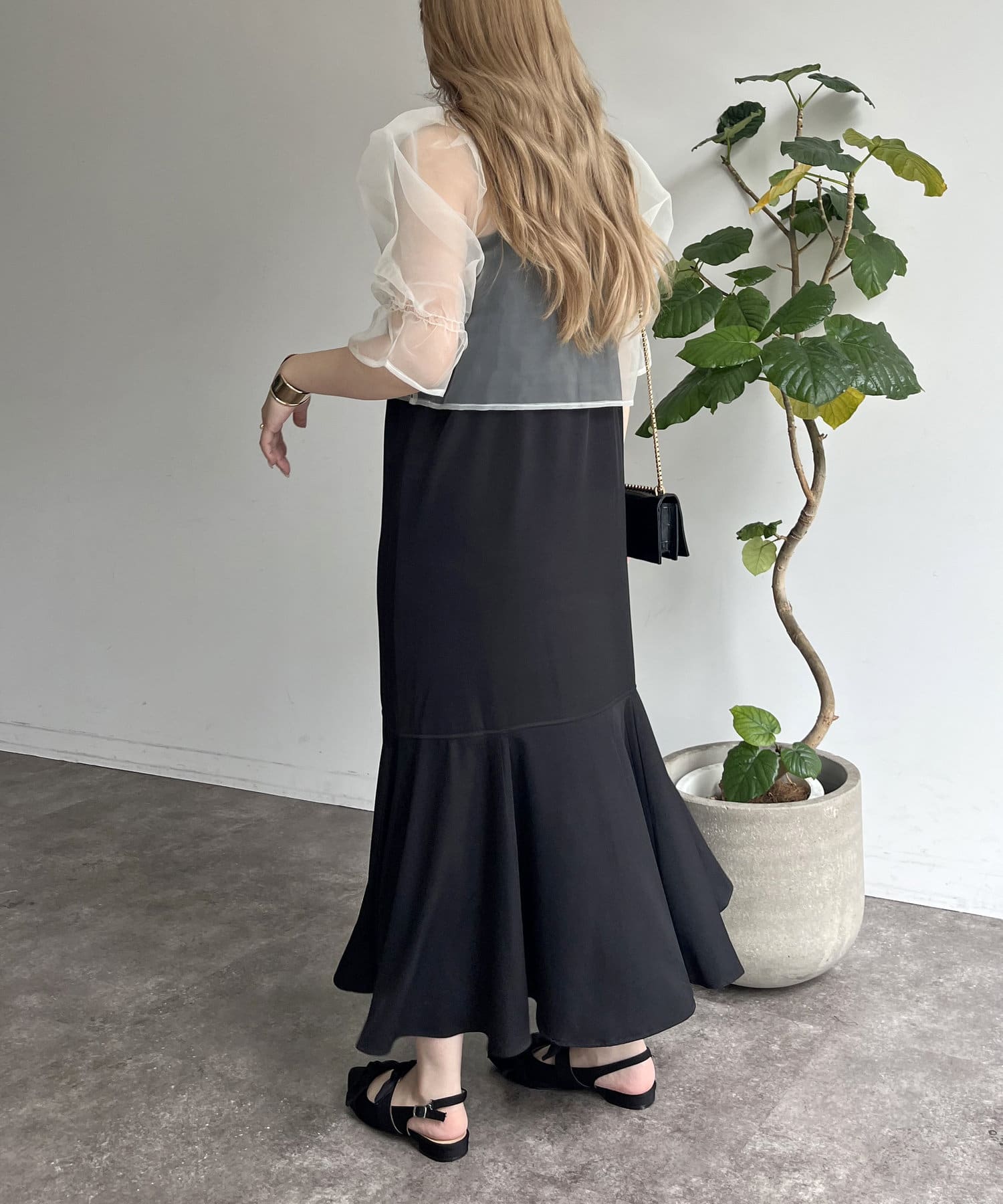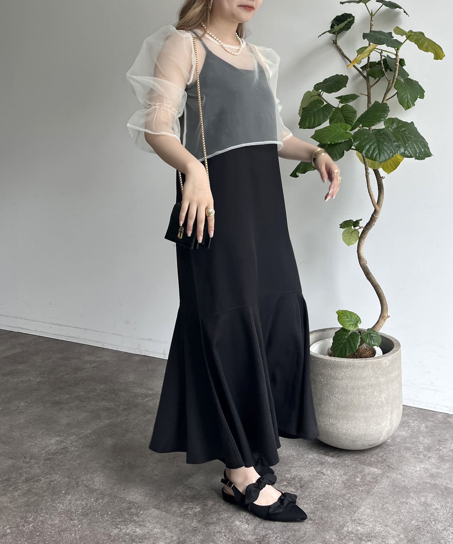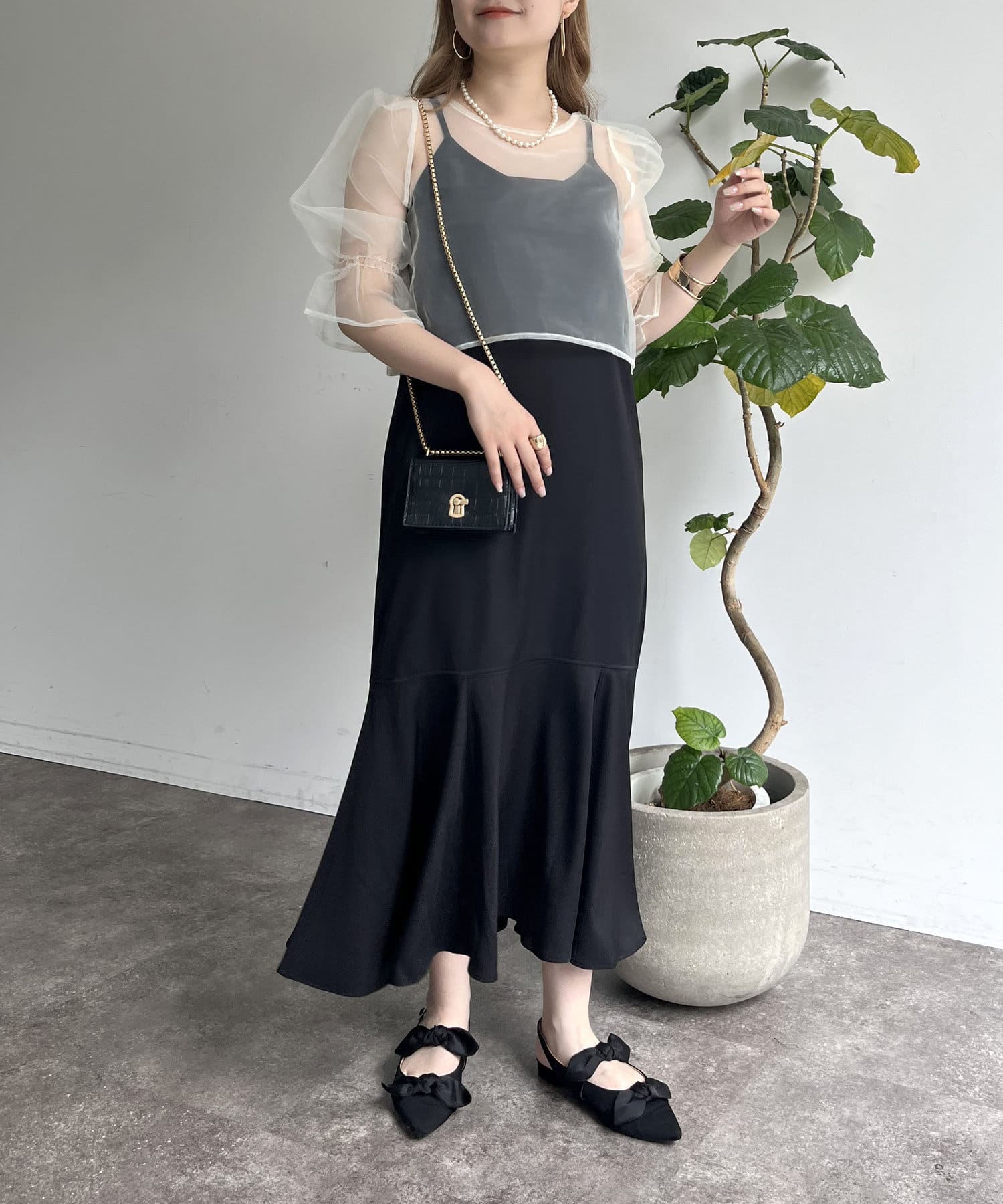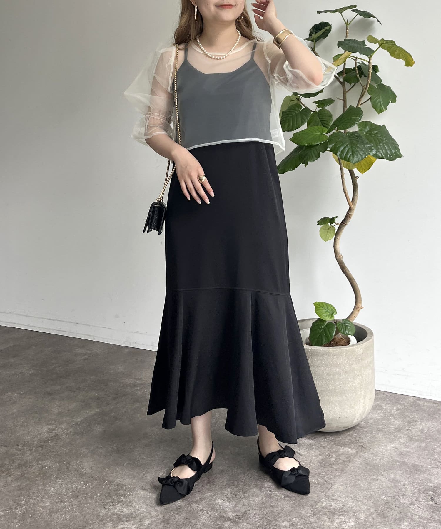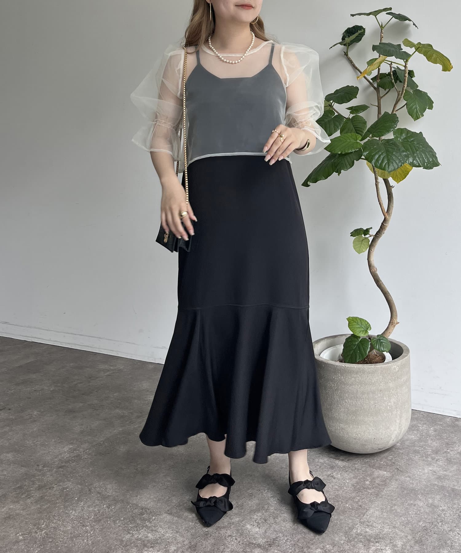 【ON・OFF使える】シアーブラウス×マーメイドキャミワンピースセット