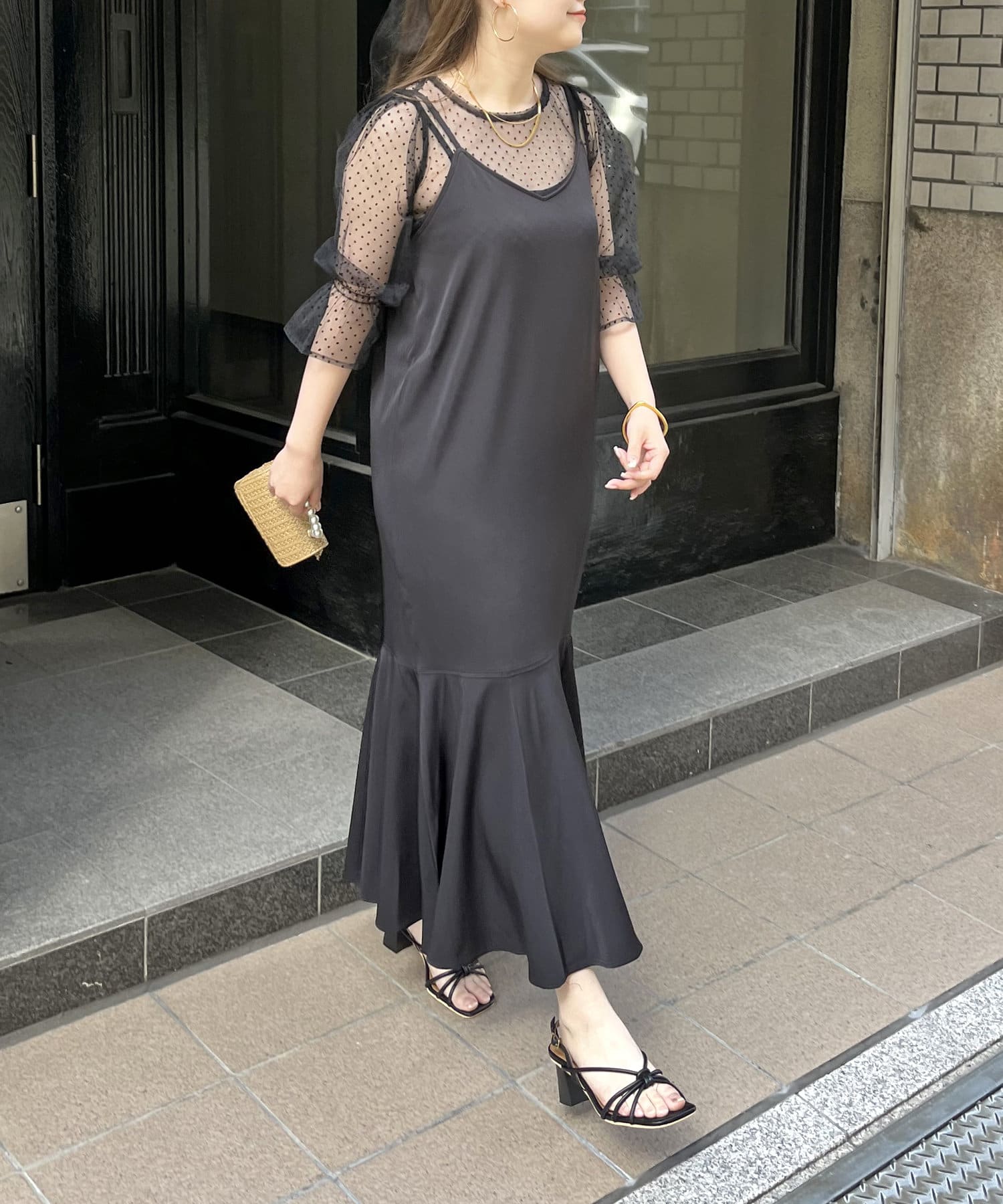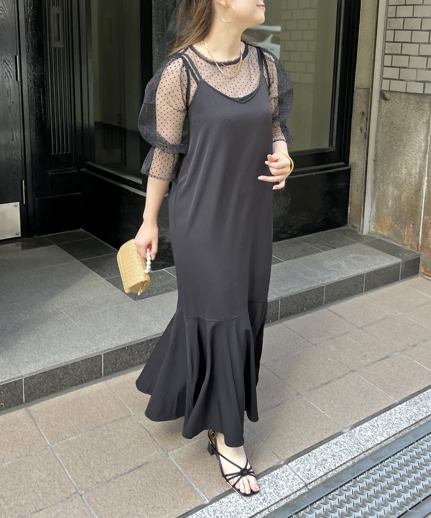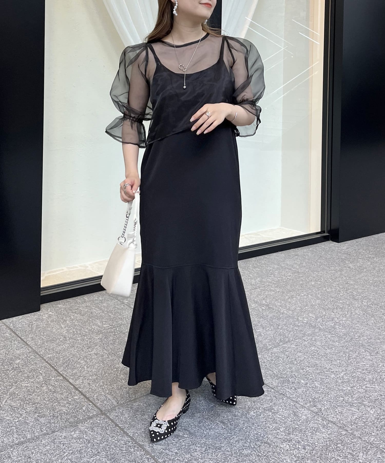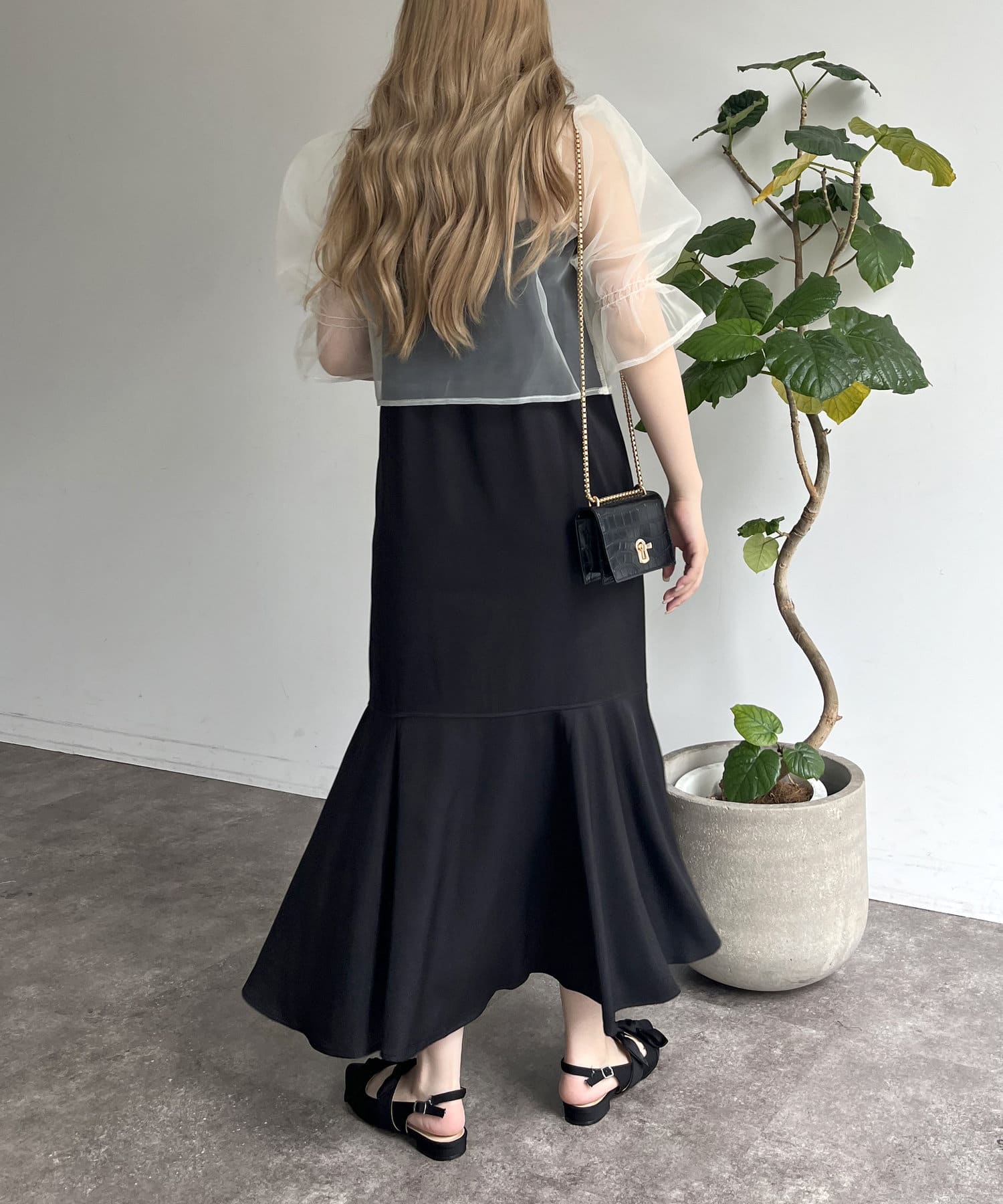【ON・OFF使える】シアーブラウス×マーメイドキャミワンピースセット