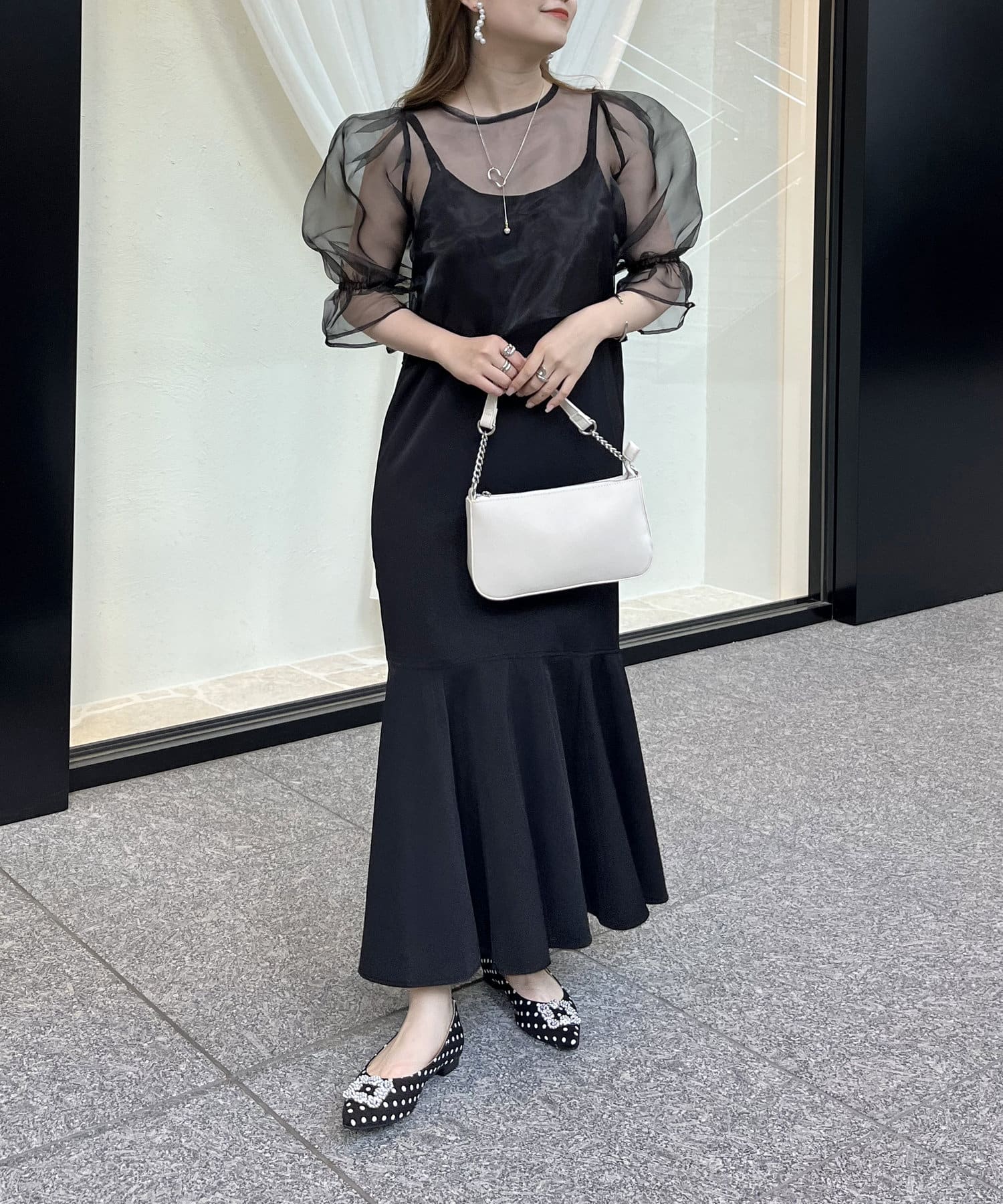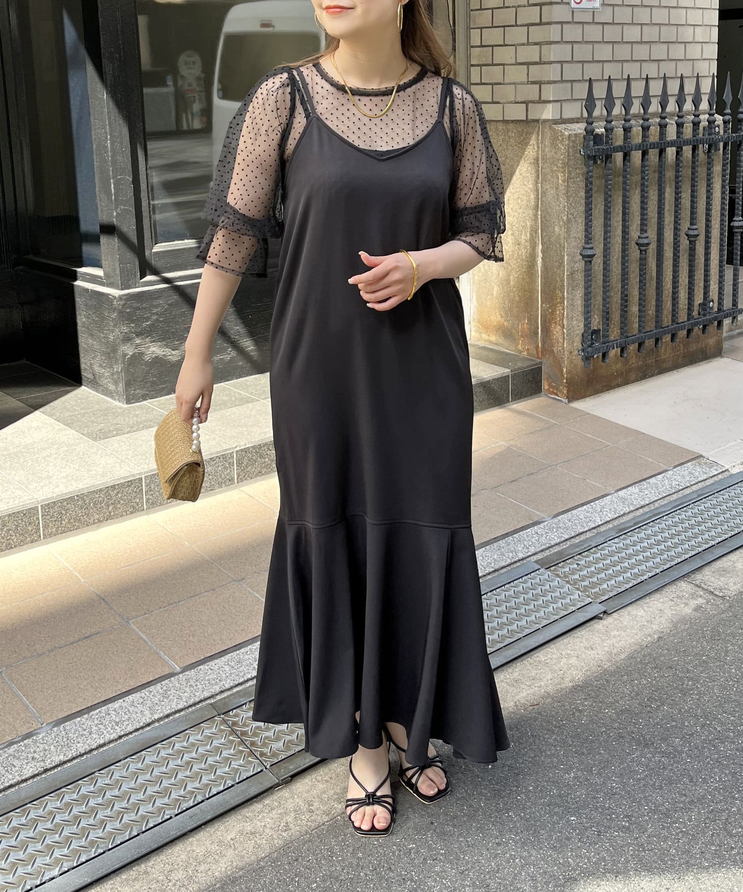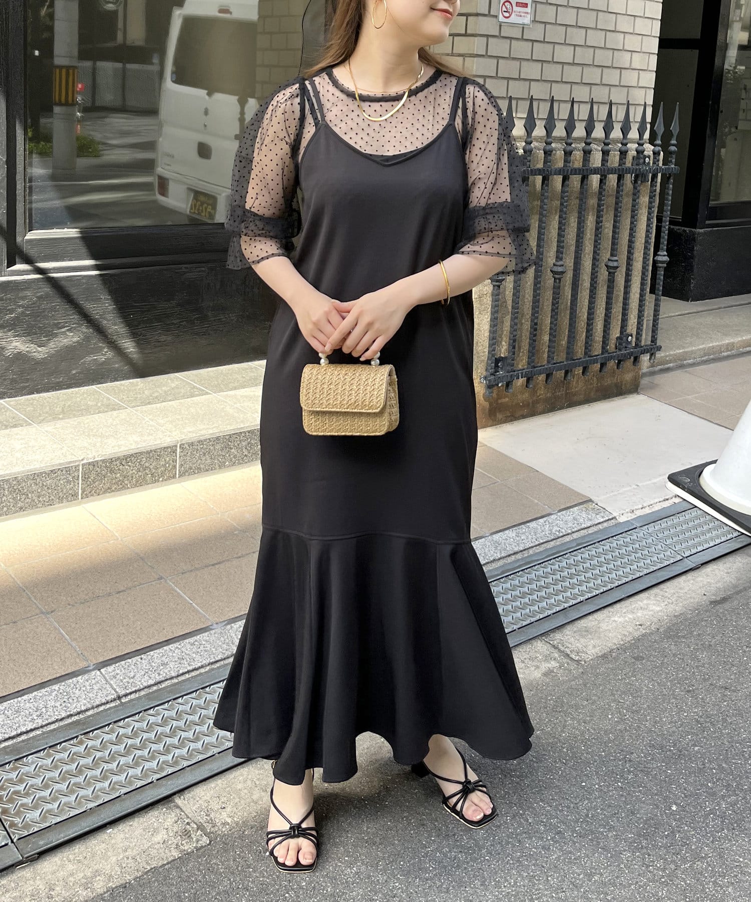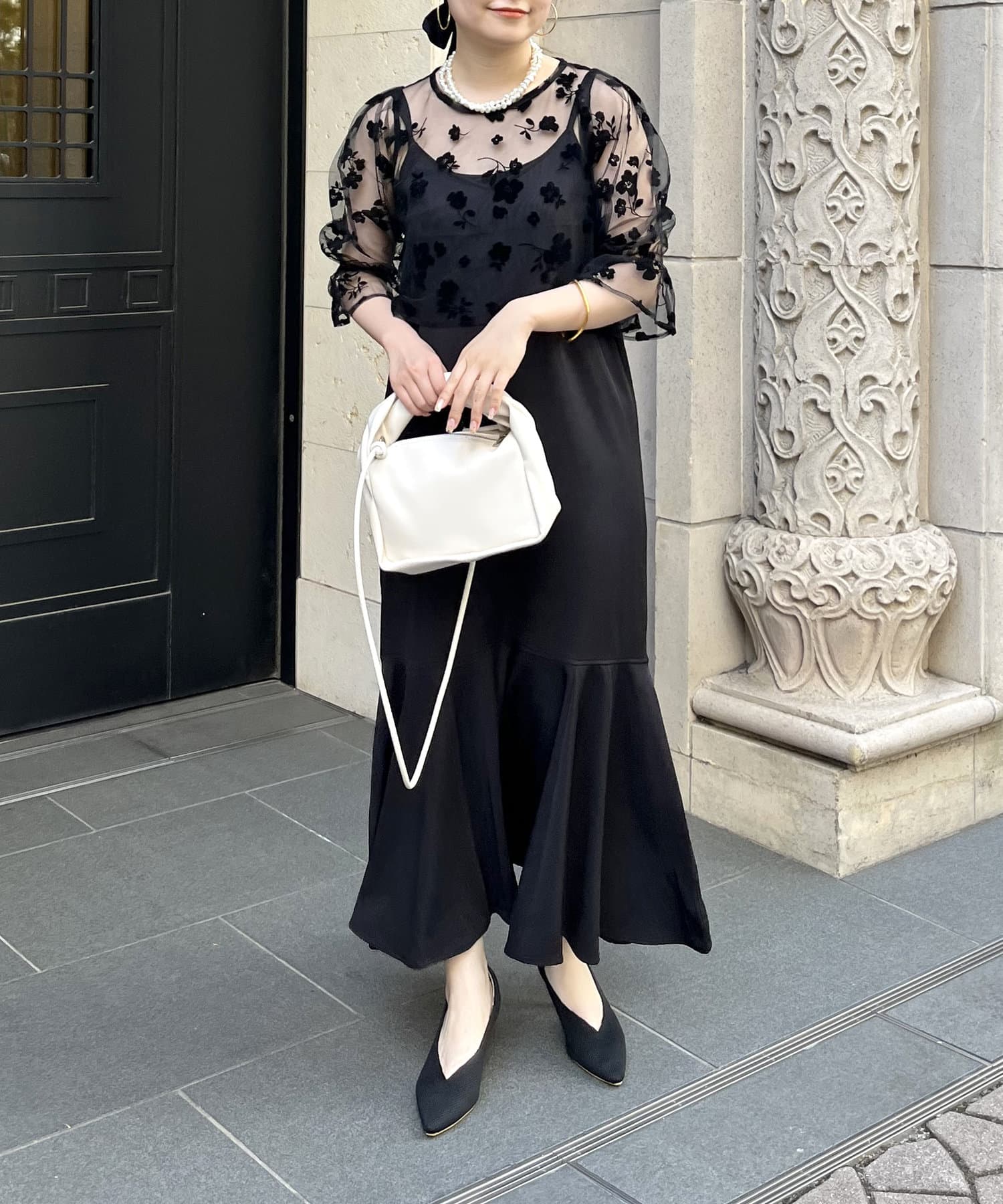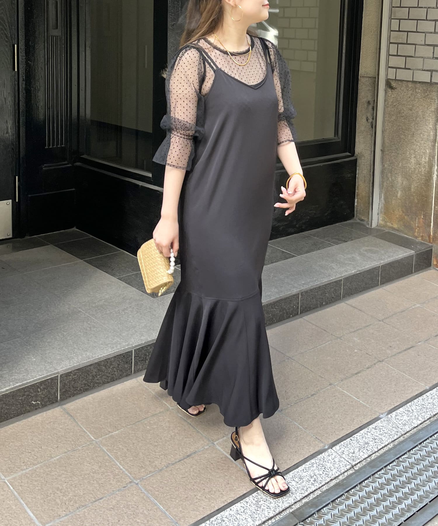 【ON・OFF使える】シアーブラウス×マーメイドキャミワンピースセット