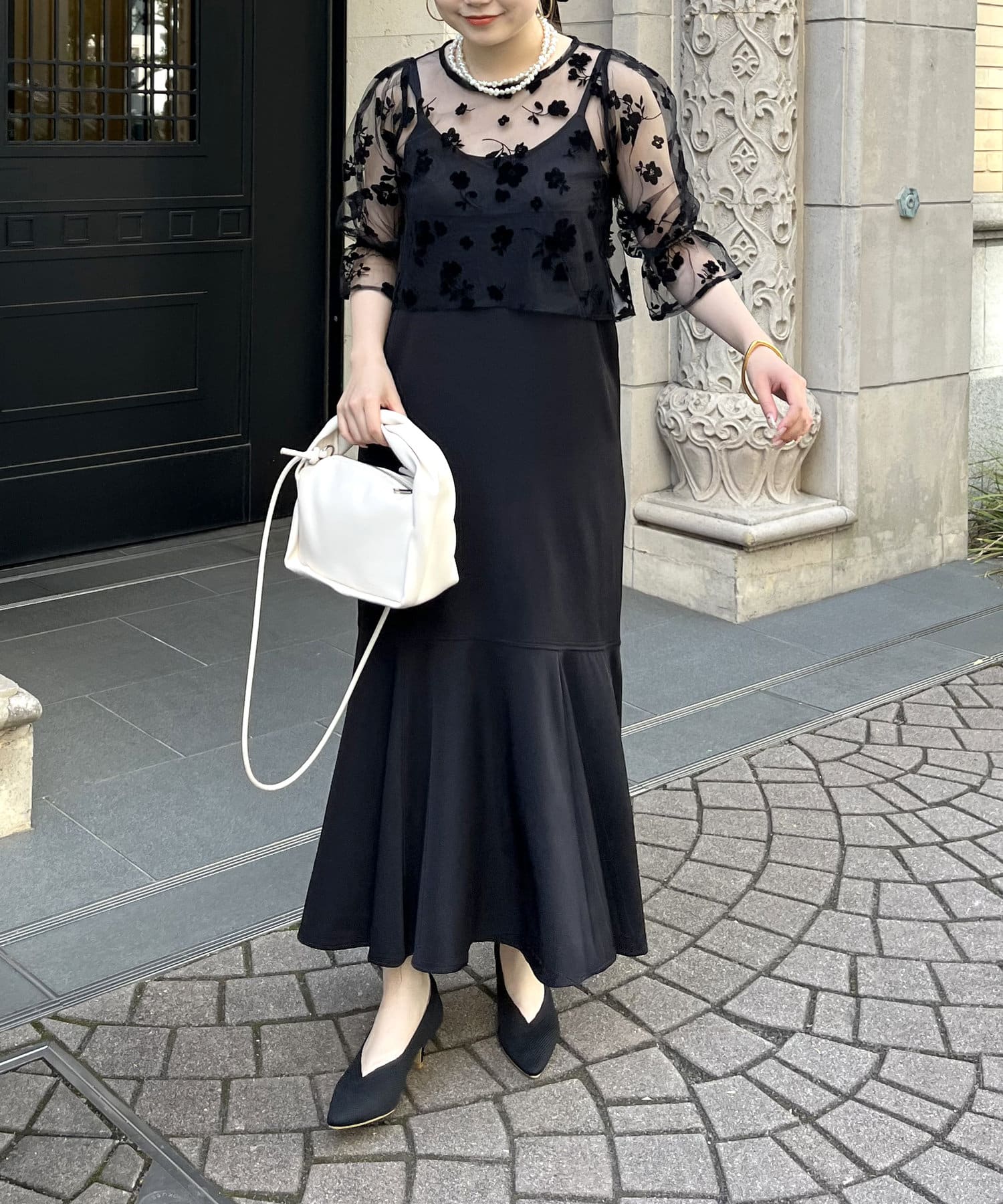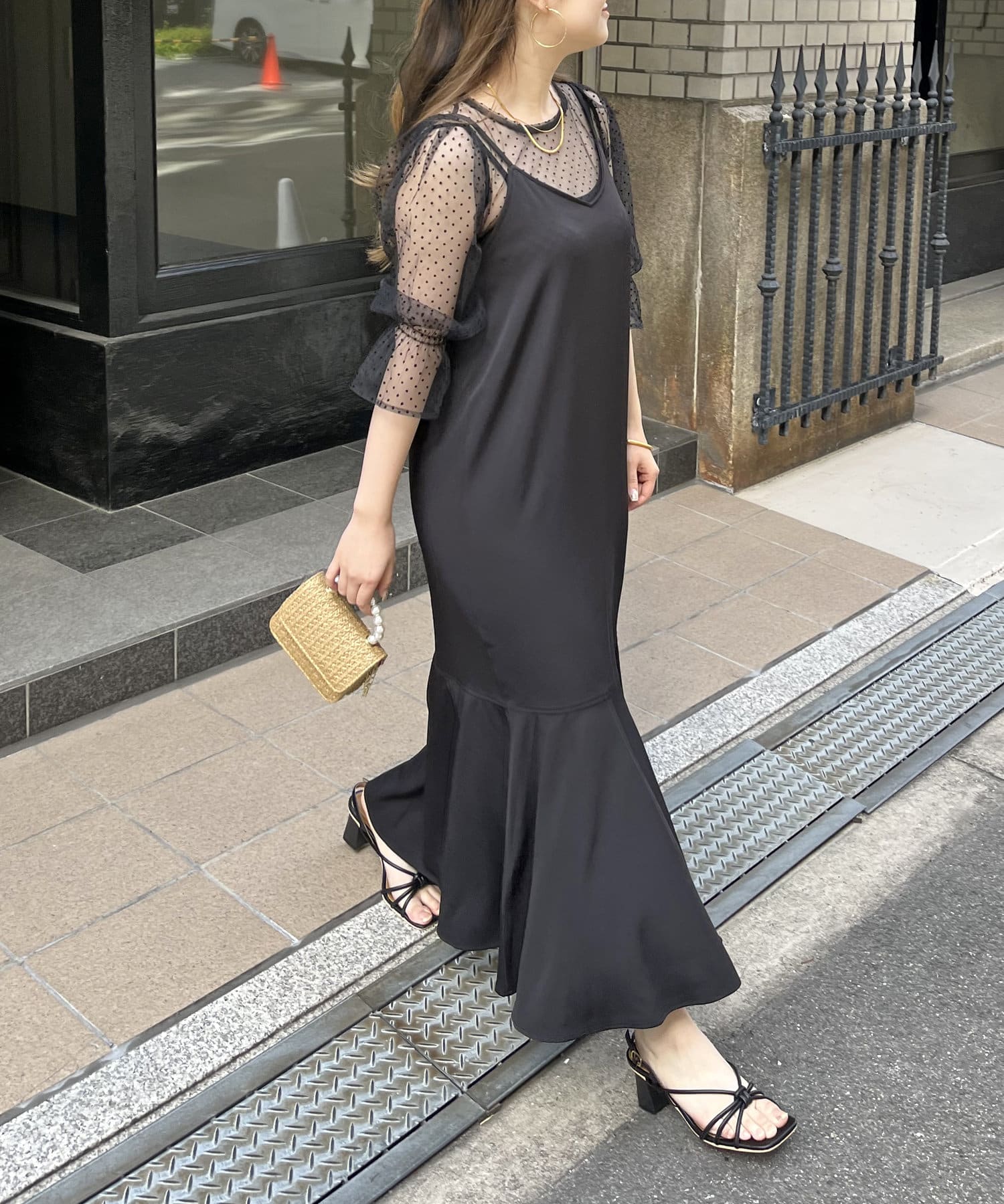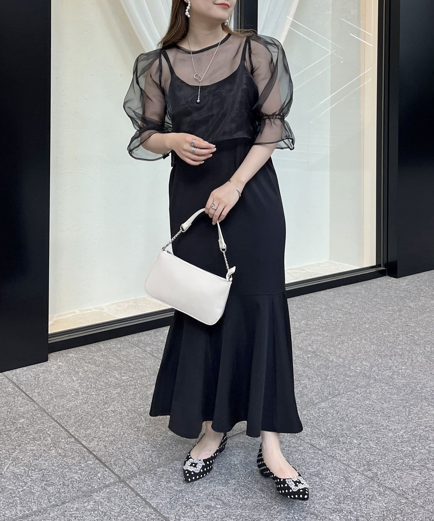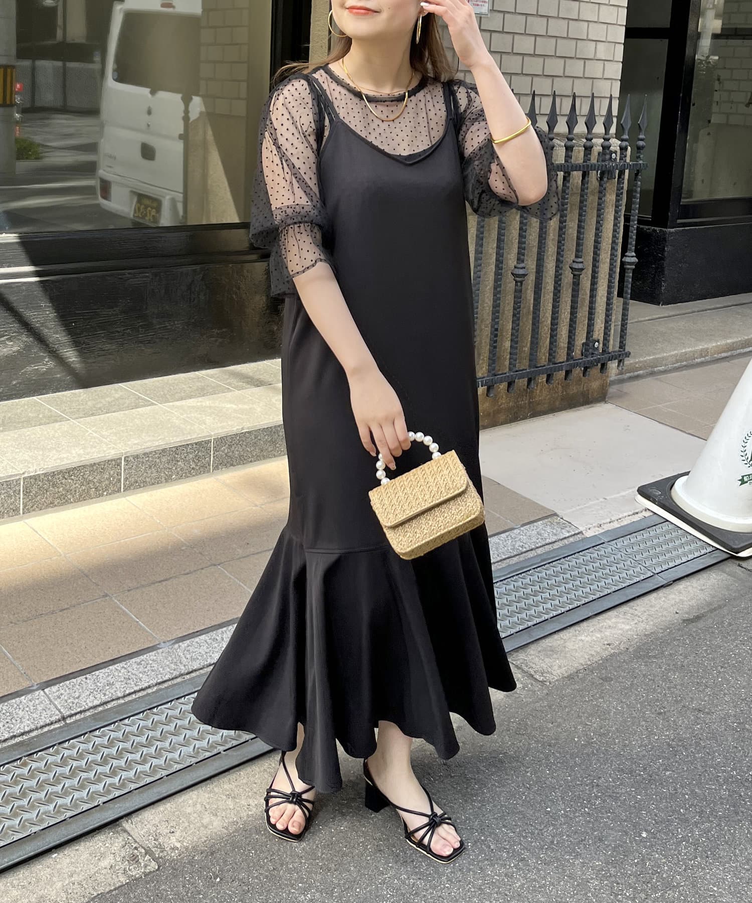 【ON・OFF使える】シアーブラウス×マーメイドキャミワンピースセット