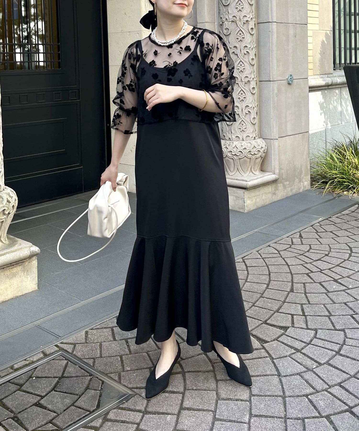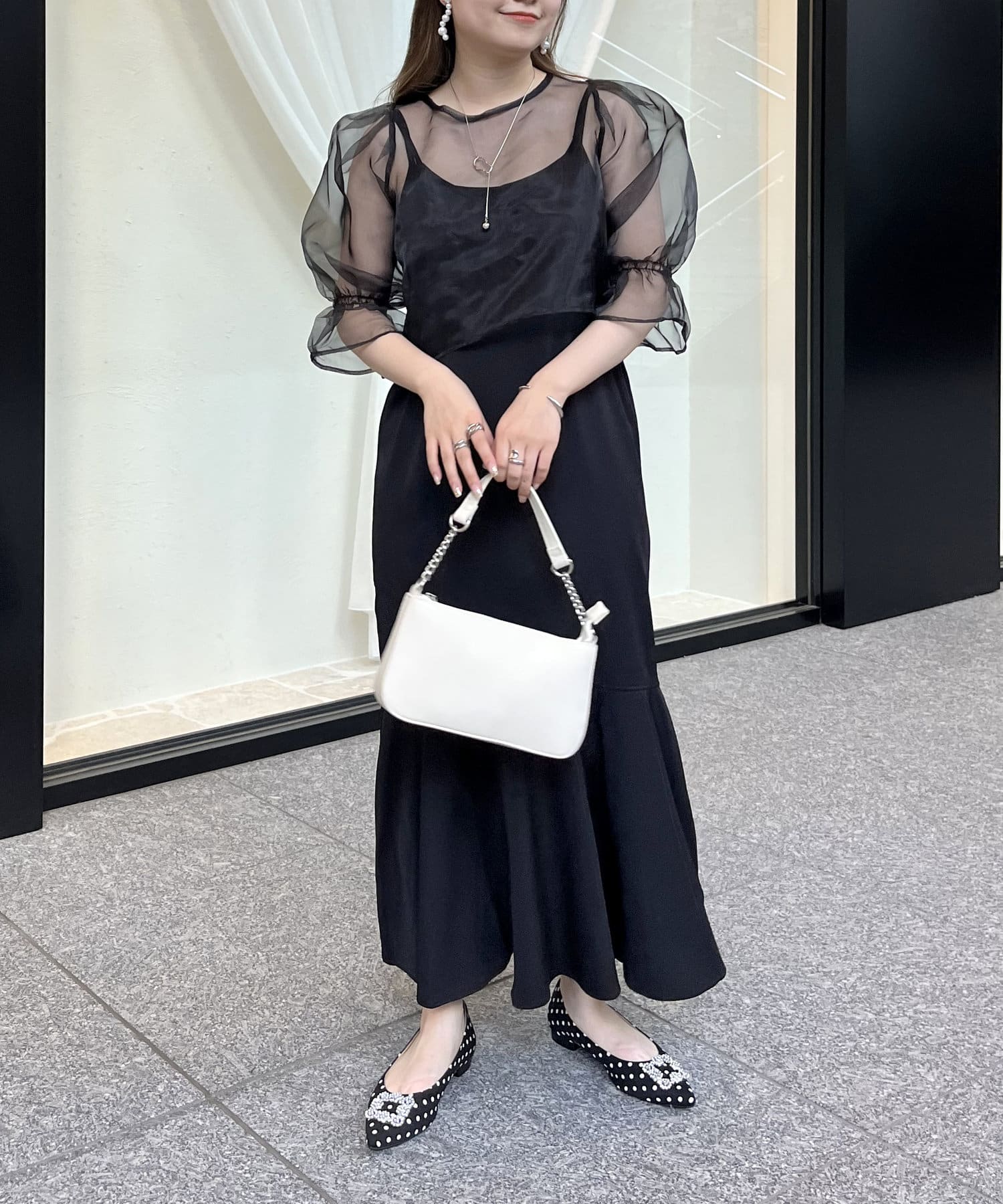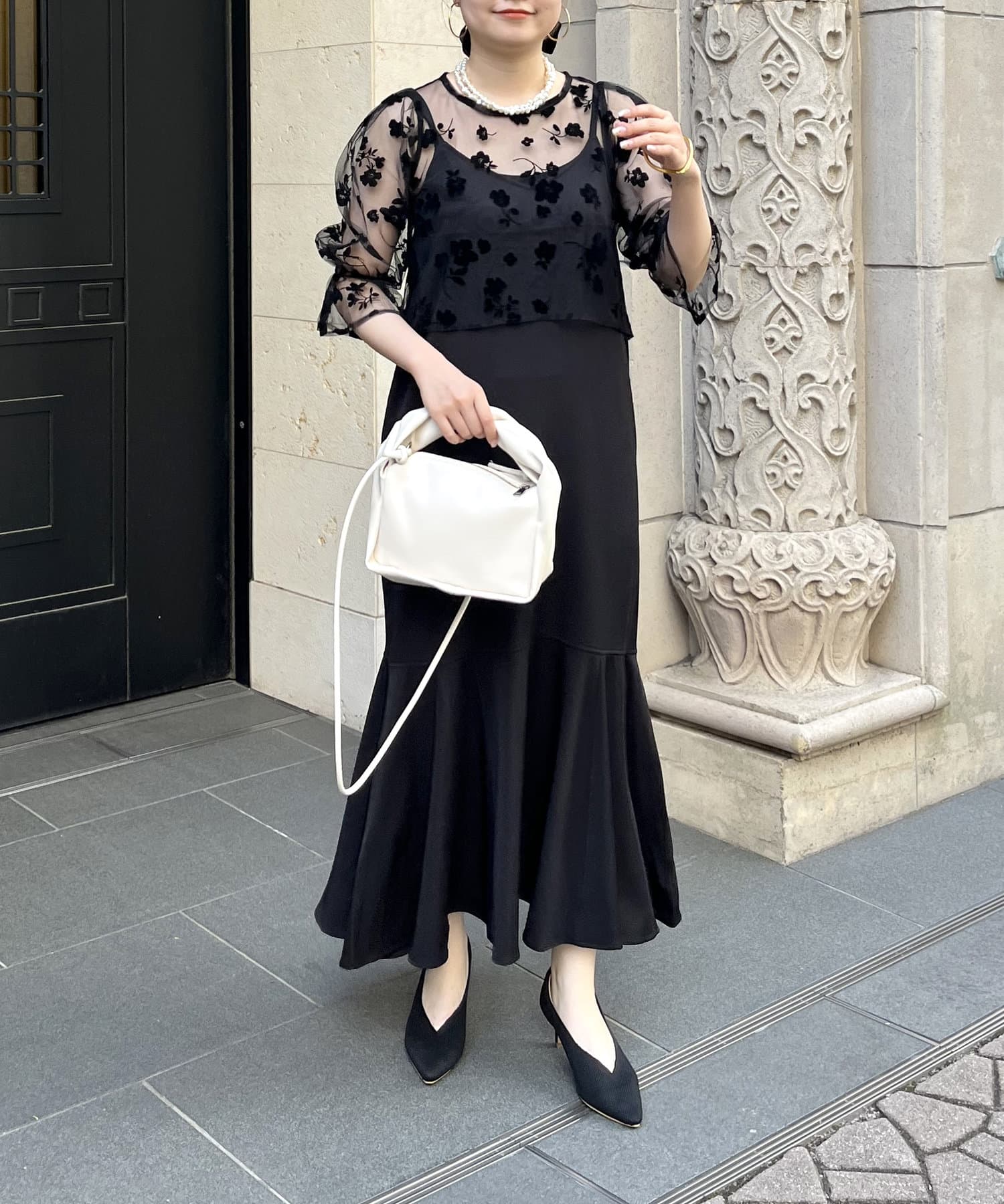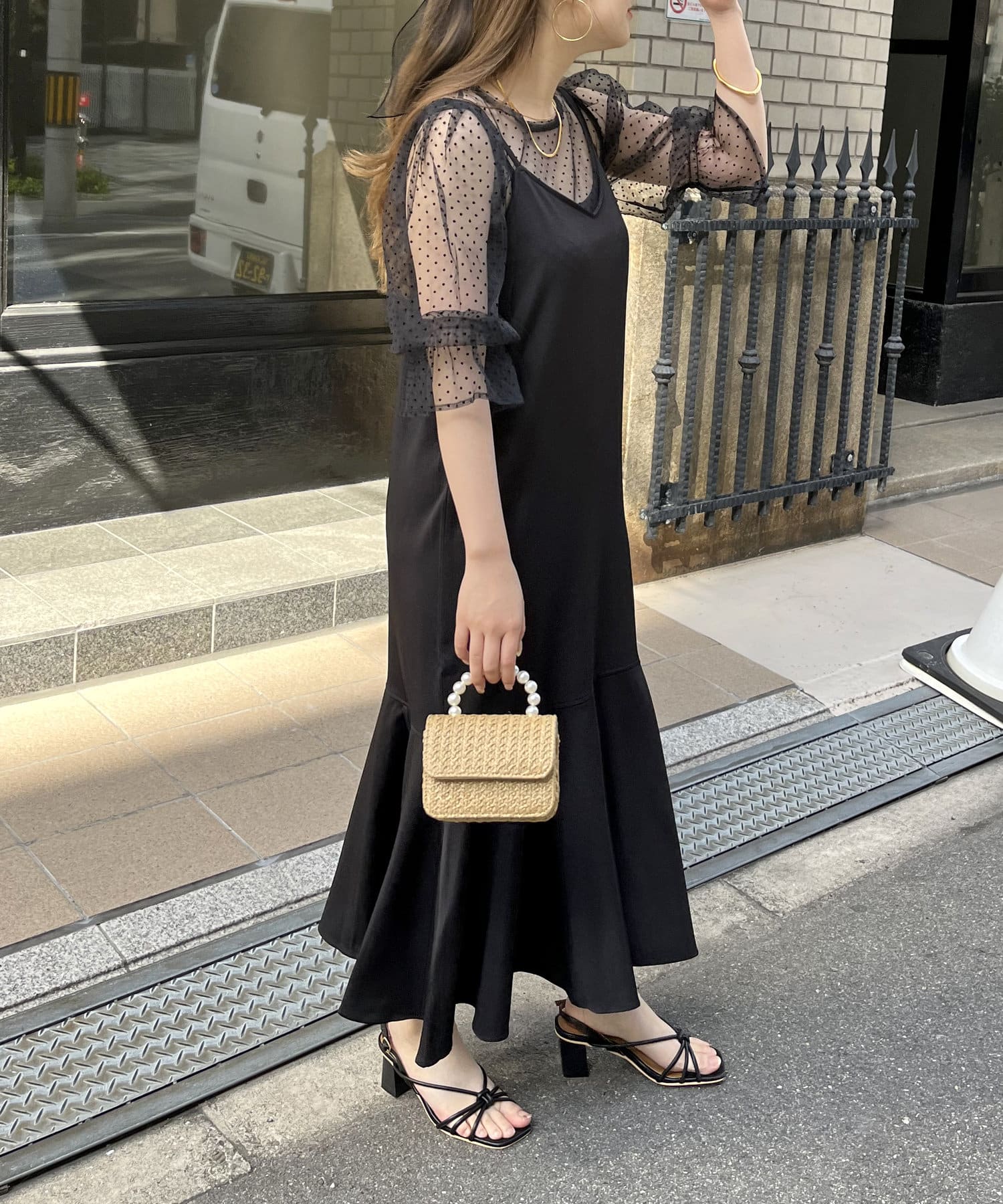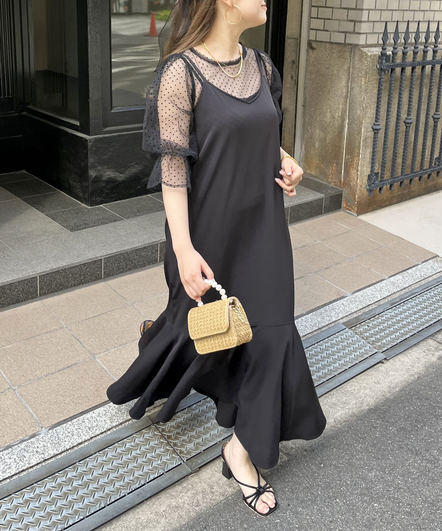 【ON・OFF使える】シアーブラウス×マーメイドキャミワンピースセット