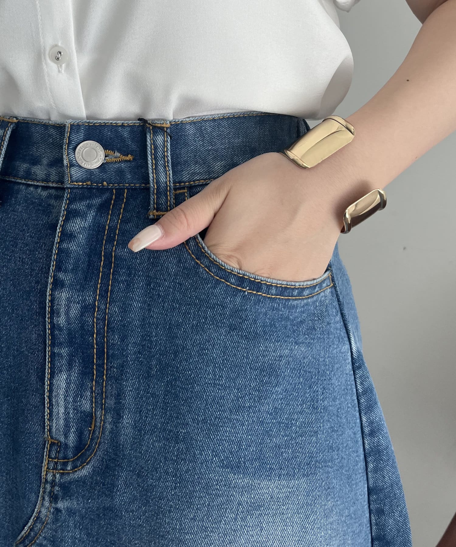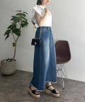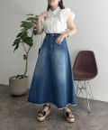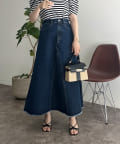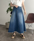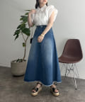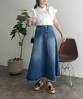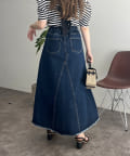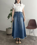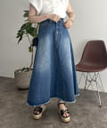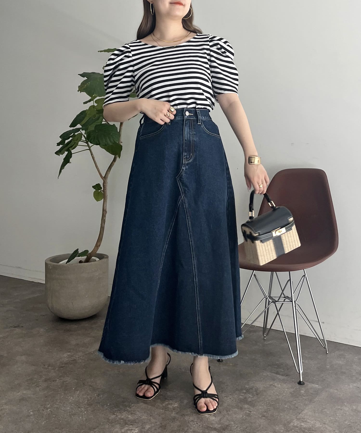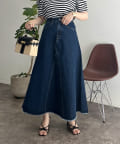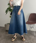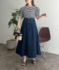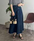 フレアシルエットで女性らしく着こなせれるデニムスカート