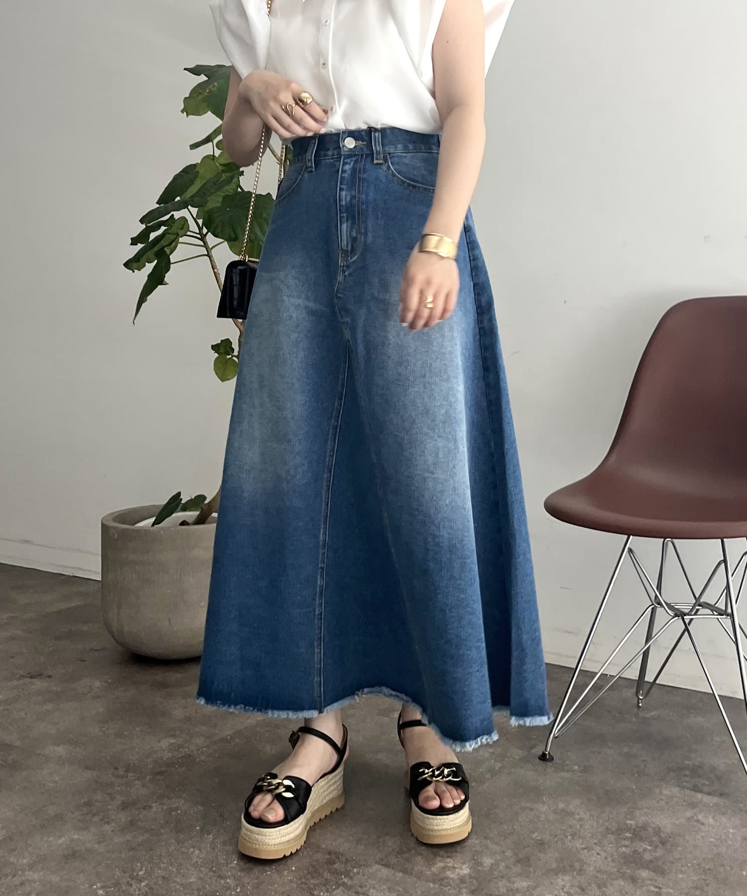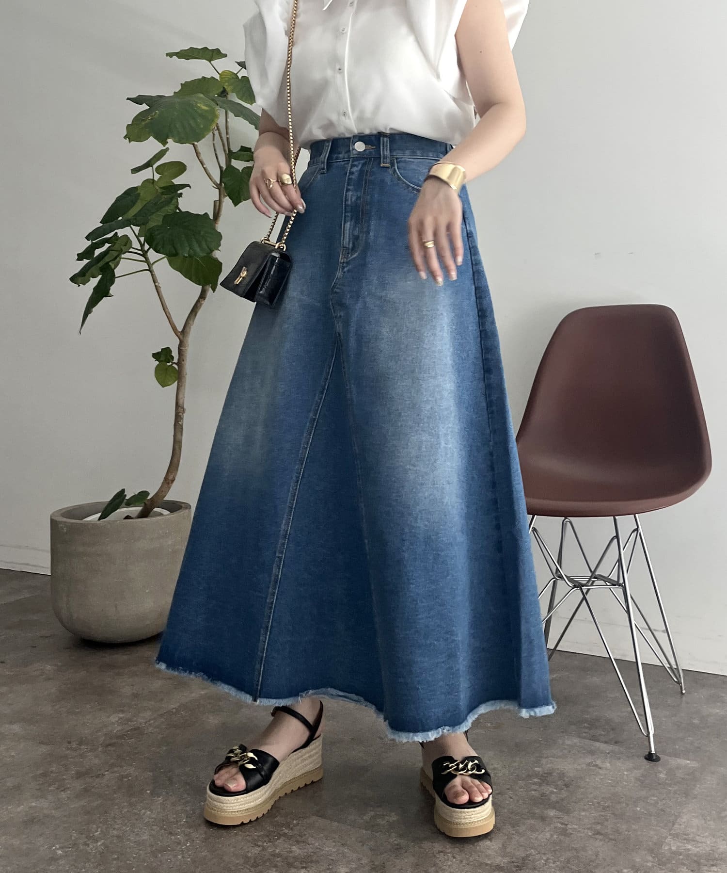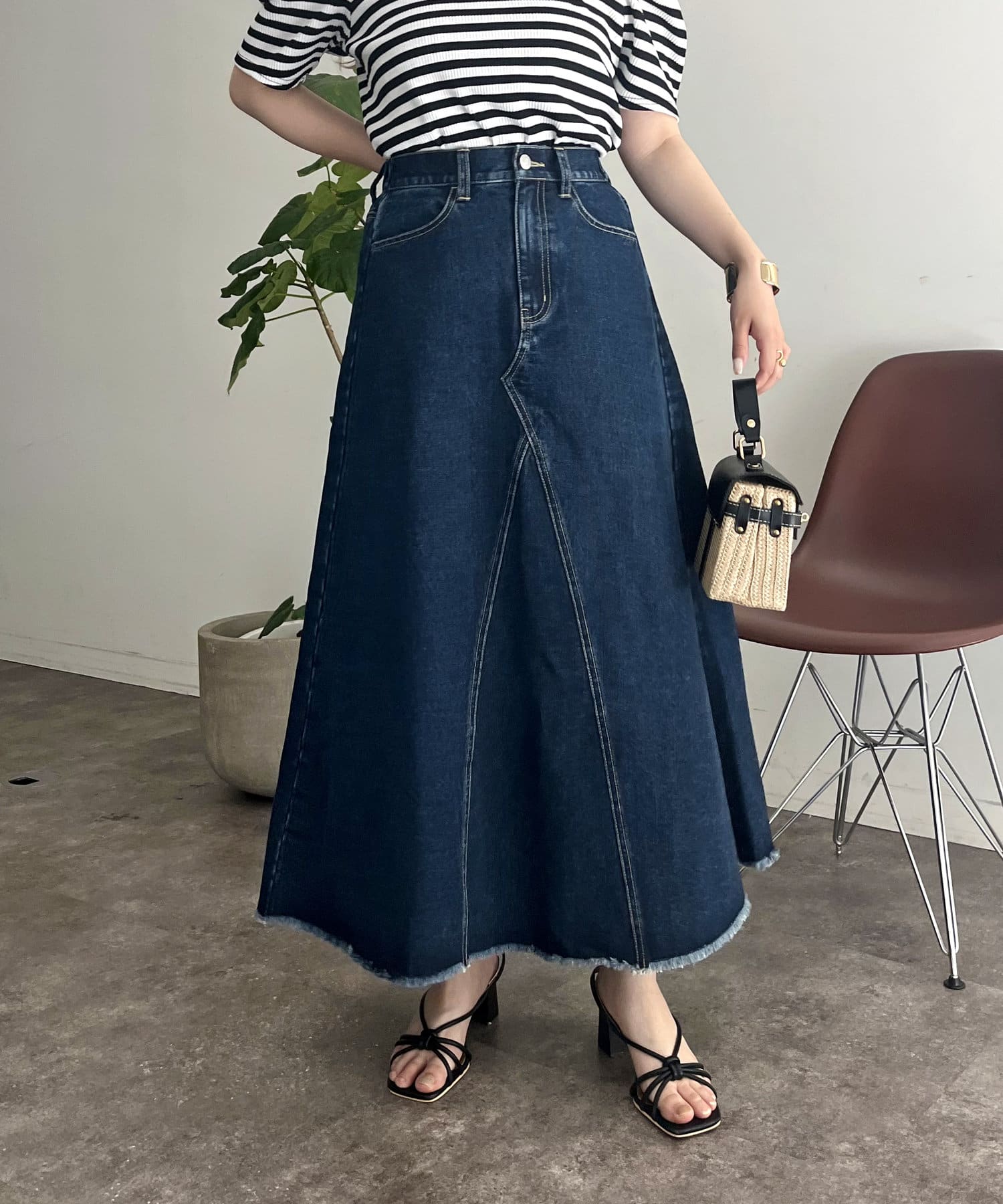 スカート/デニム/ デニムスカート/フリンジ/こなれ感