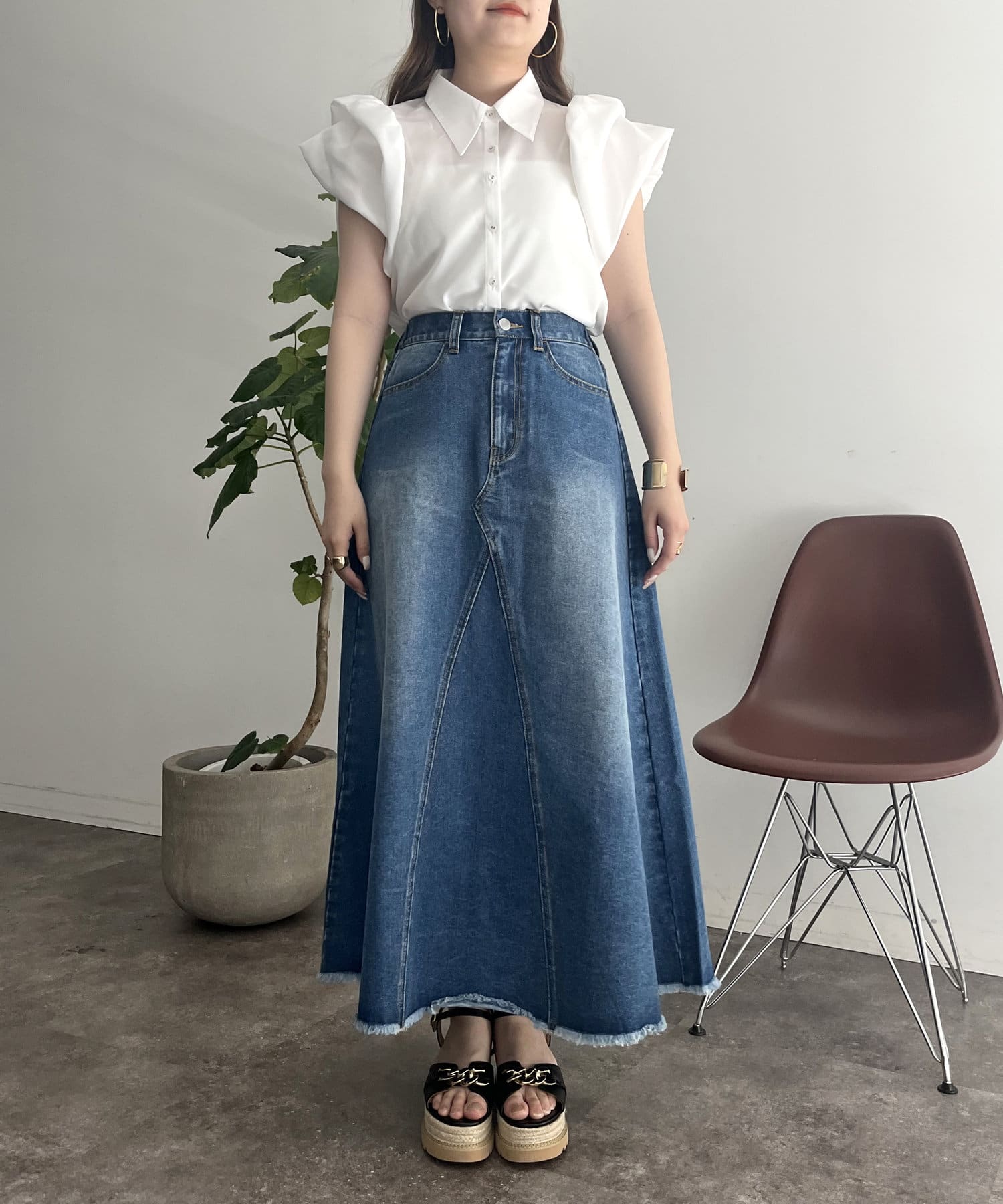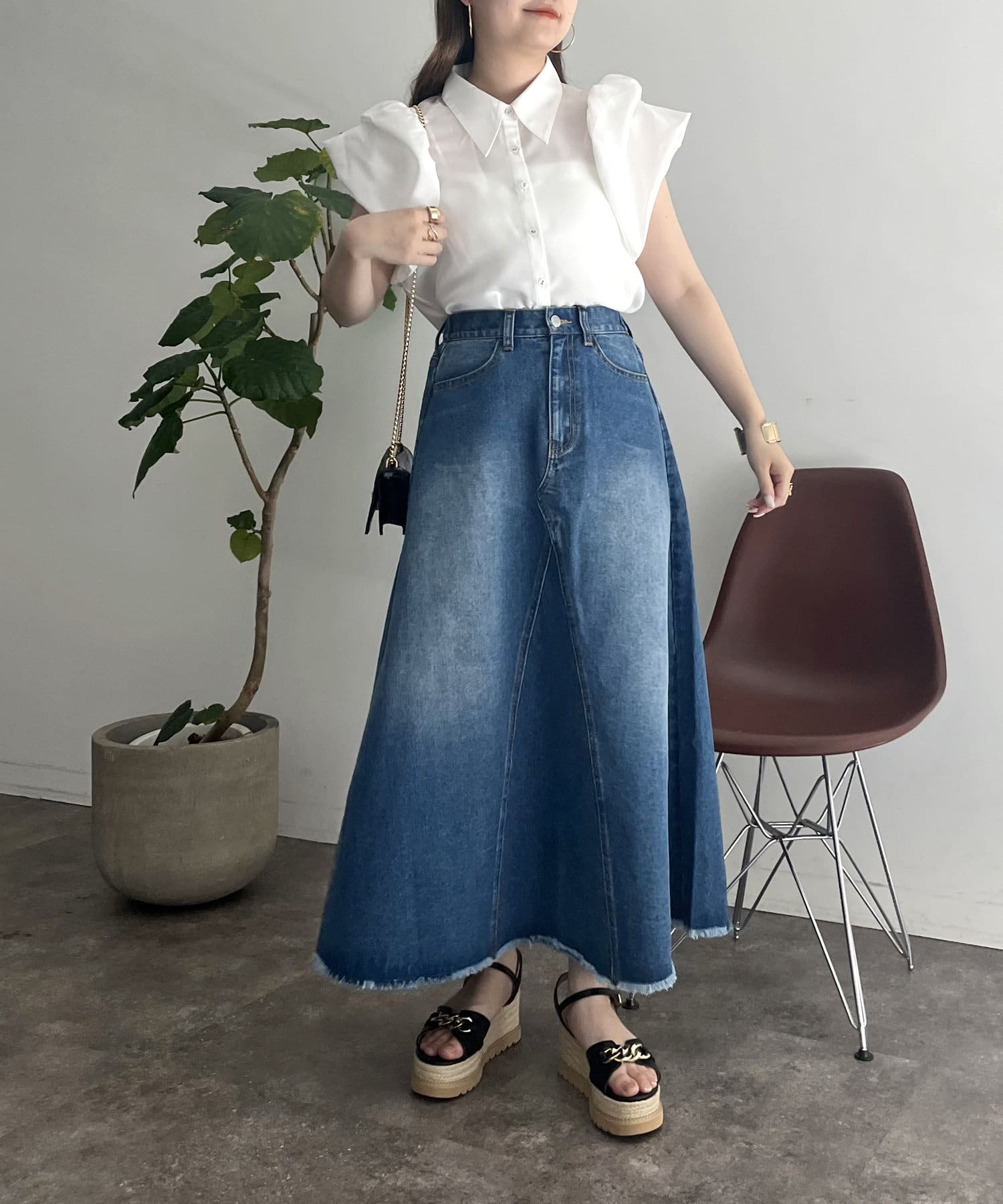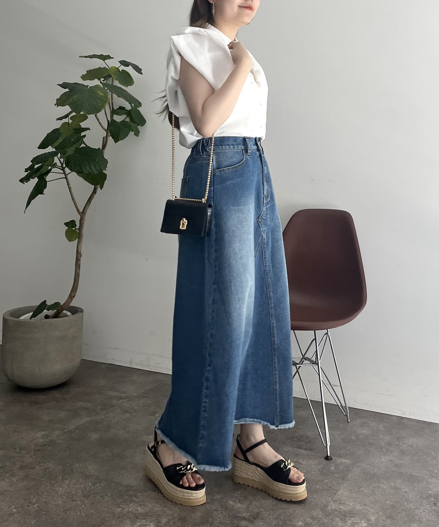 スカート/デニム/ デニムスカート/フリンジ/こなれ感