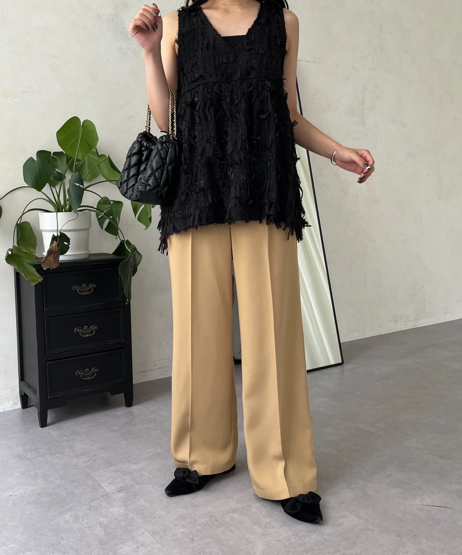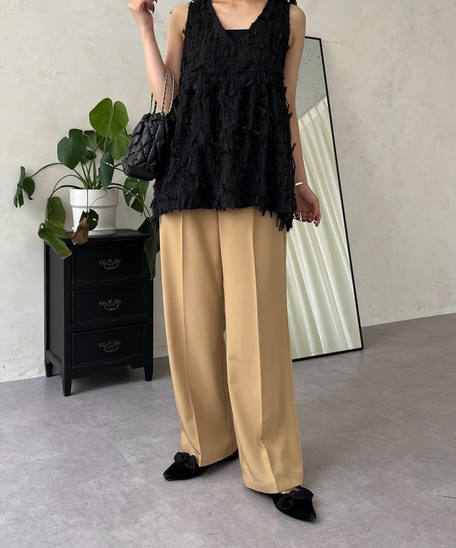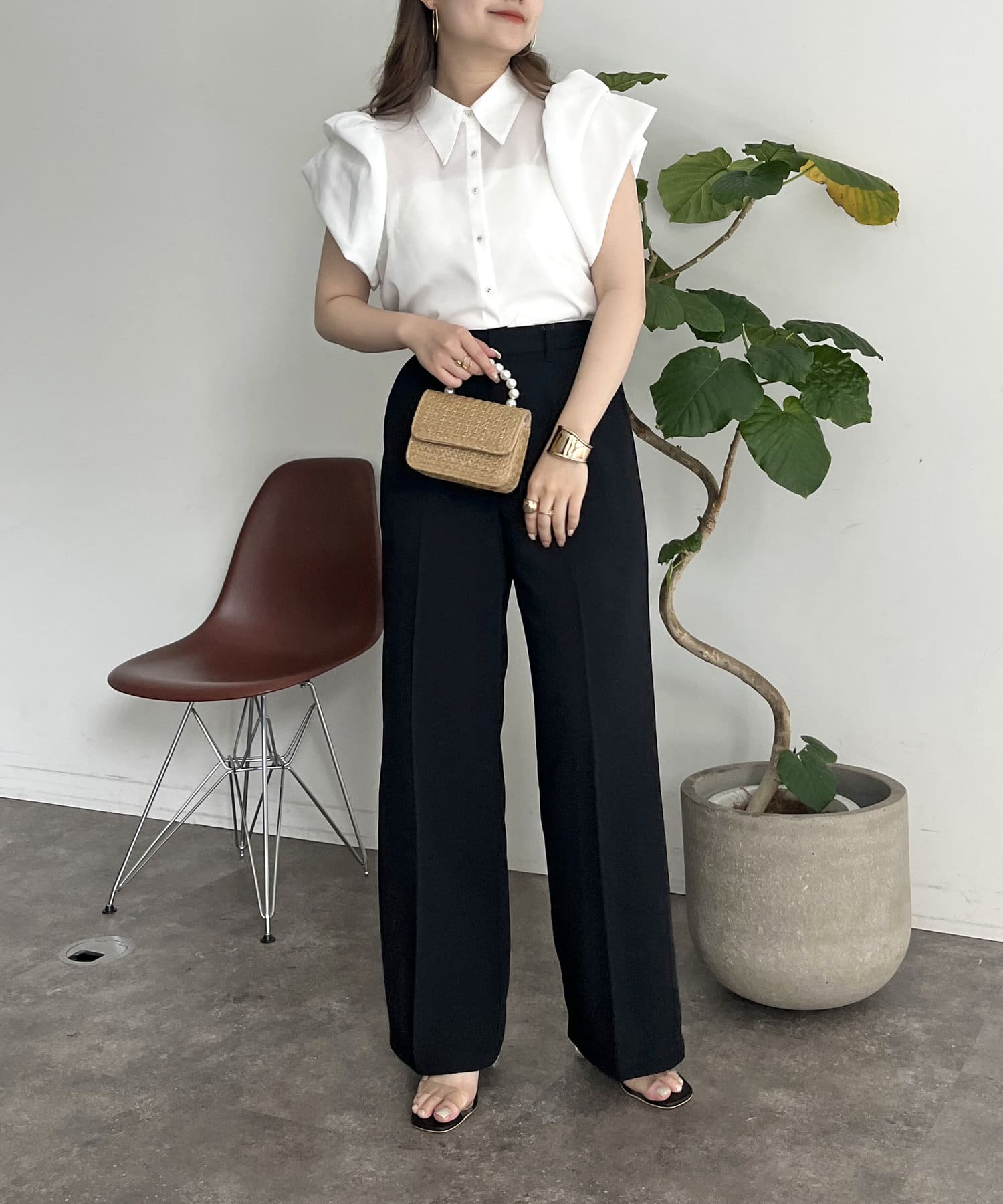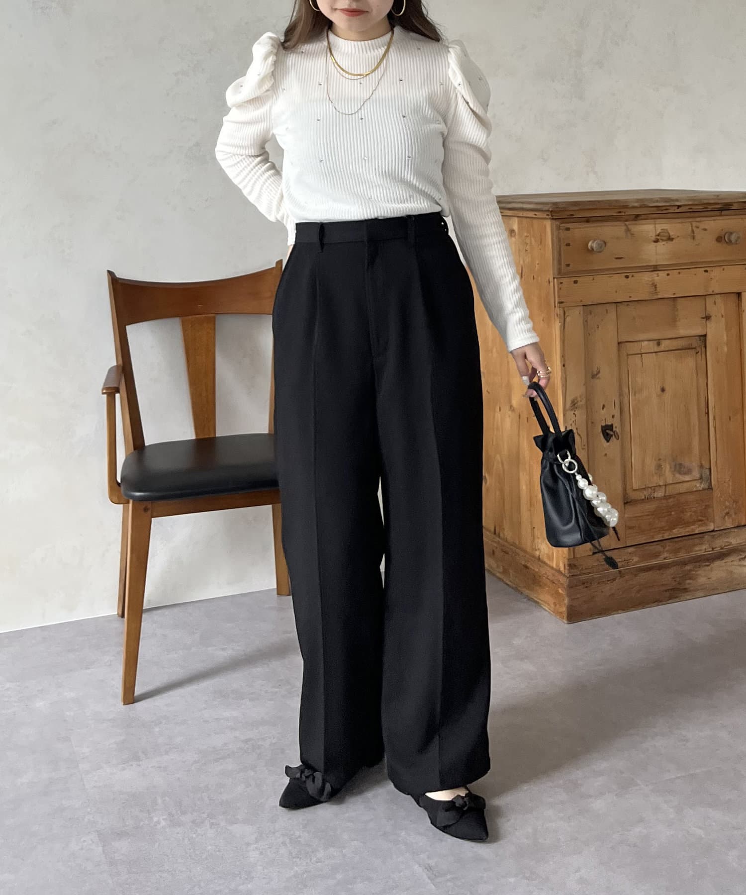 ●ハイウエスト+センタープレスなので脚長効果にも!