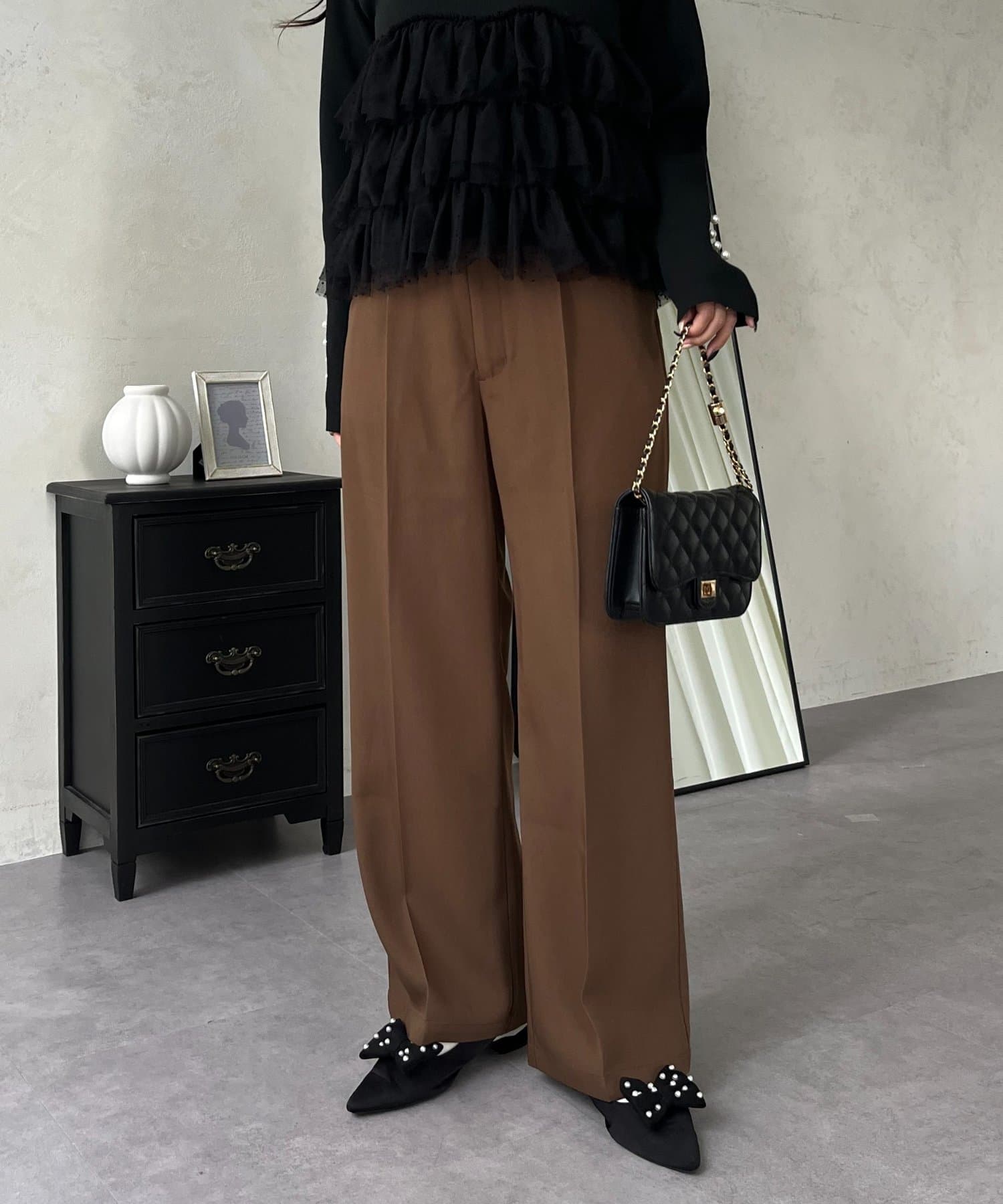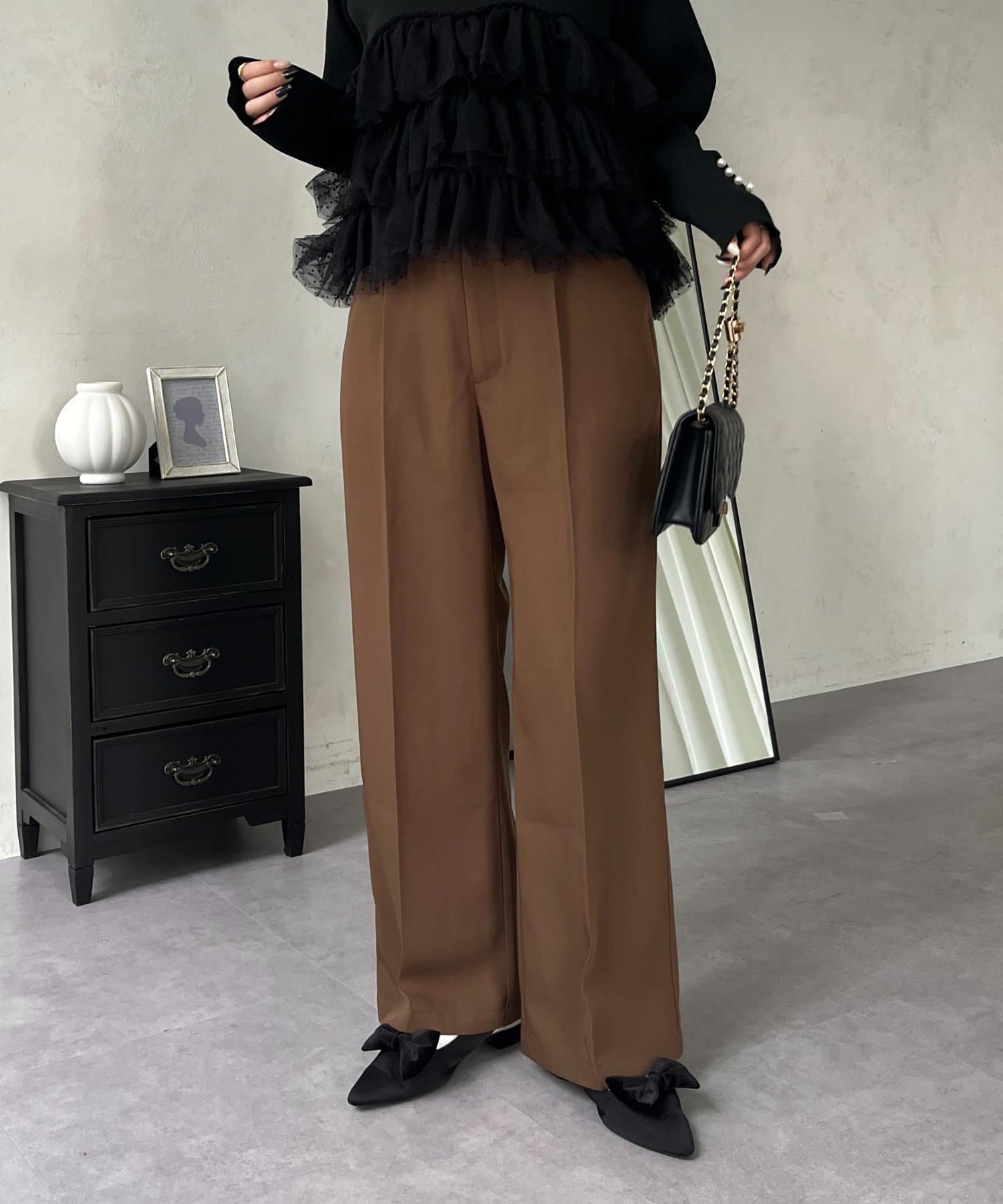 着回し万能ハイウエストセンタープレスタックパンツ