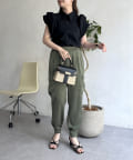 サテン素材が大人キレイめカジュアルに着こなせれるジョガーパンツ