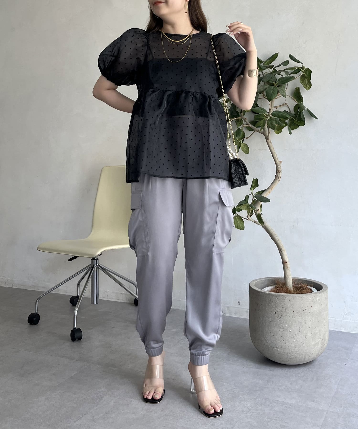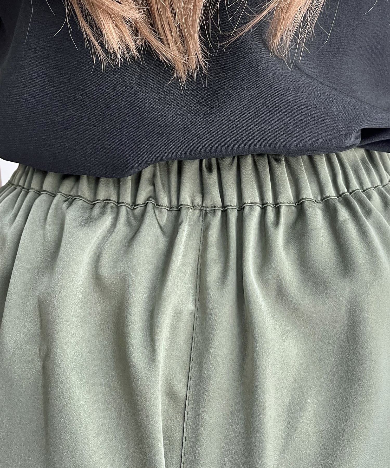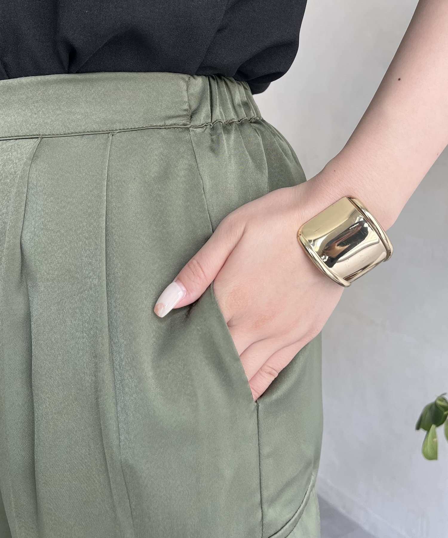 ●サテン素材で光沢感が少しあるので、キレイめなアイテムとも相性抜群