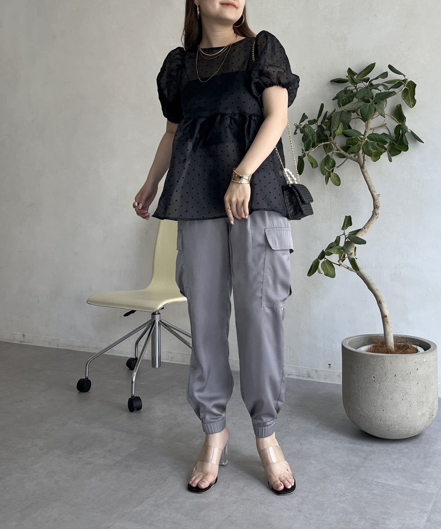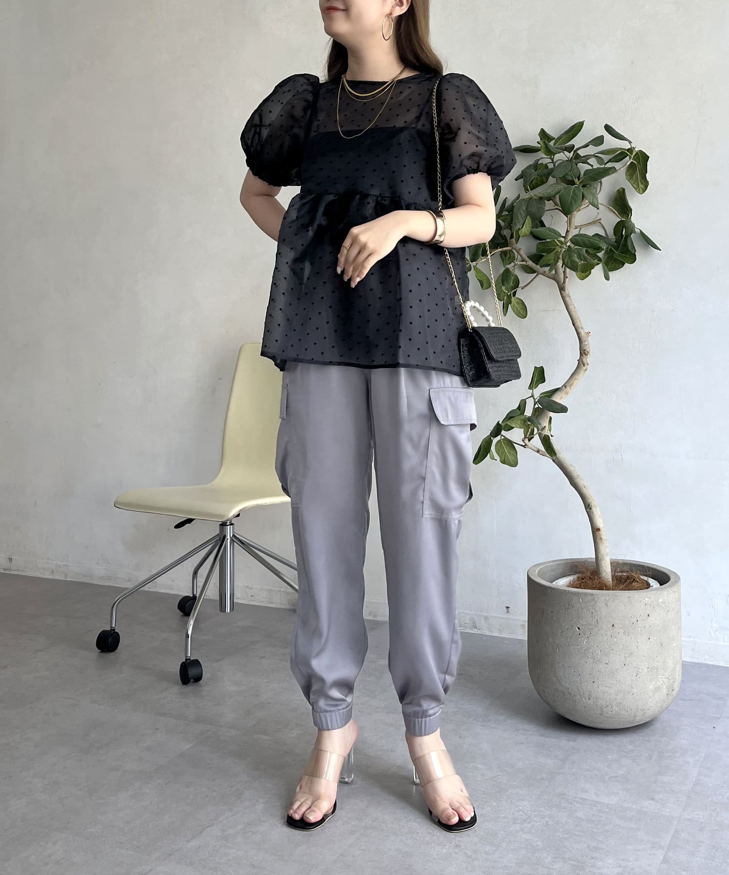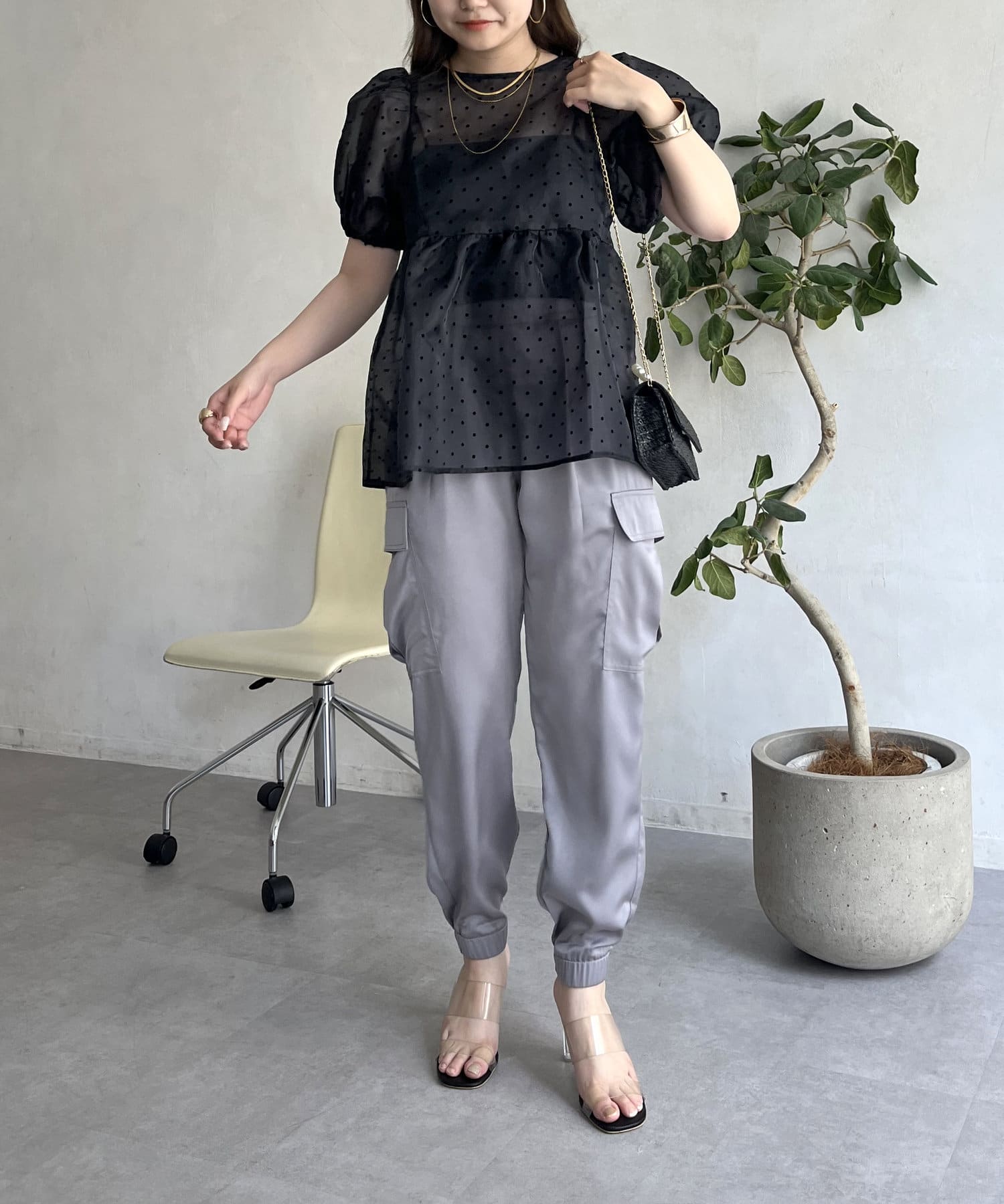 ●サテン素材で光沢感が少しあるので、キレイめなアイテムとも相性抜群