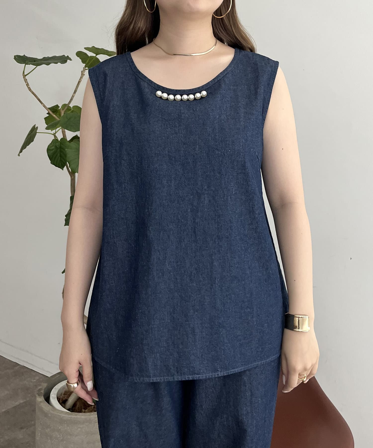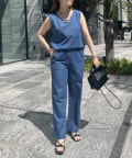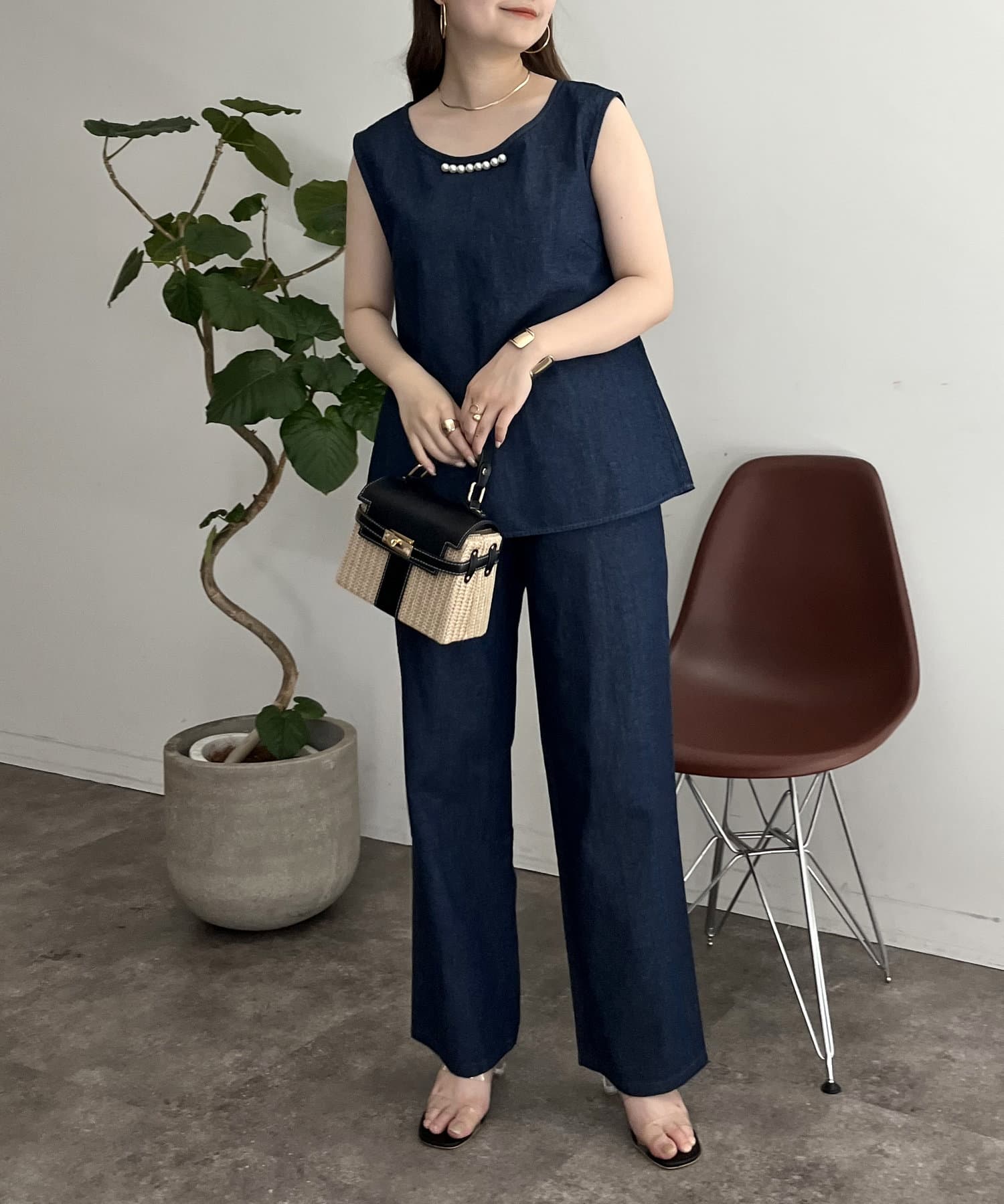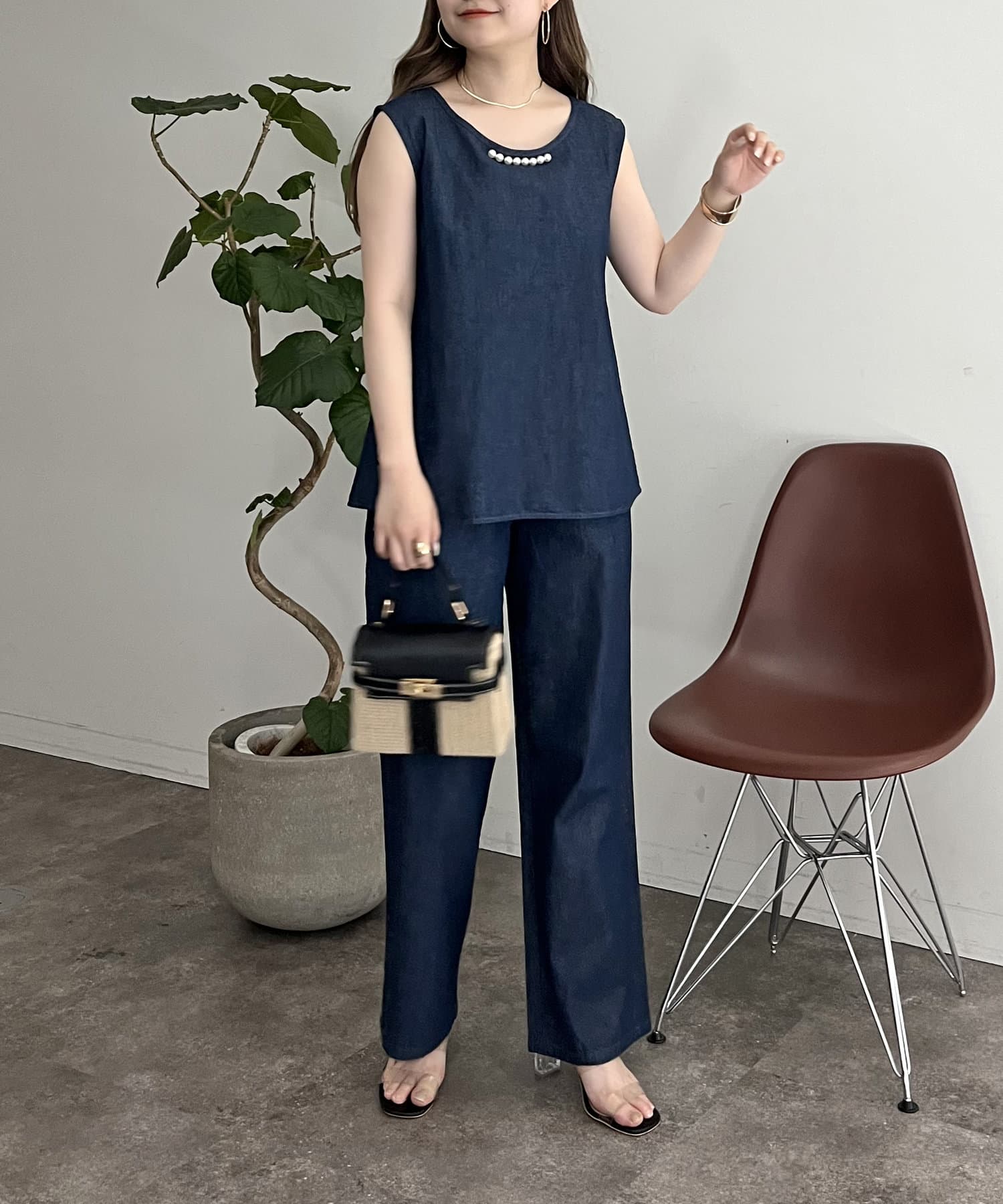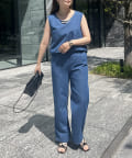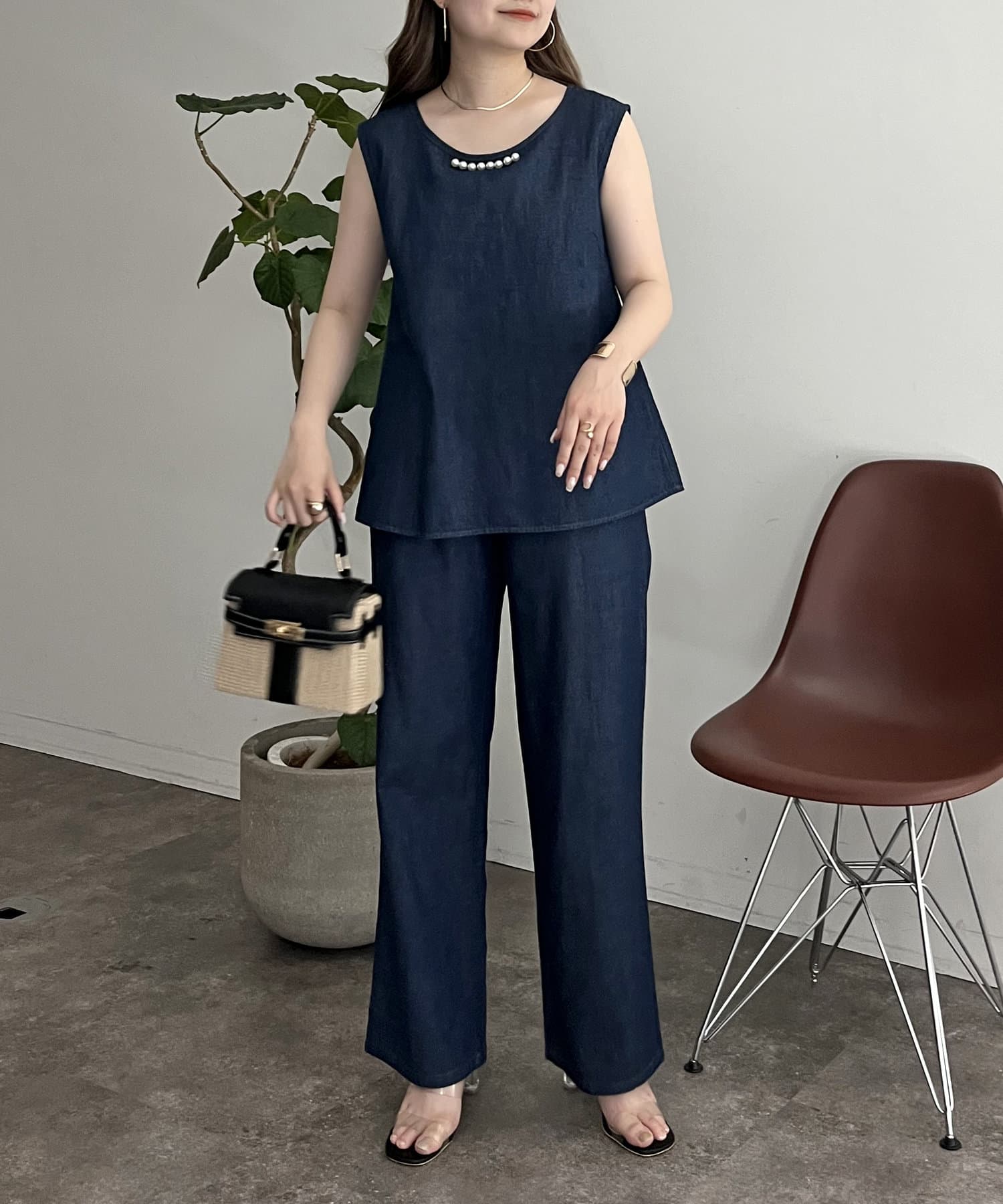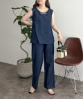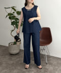 えりパールリネン混デニムセットアップ