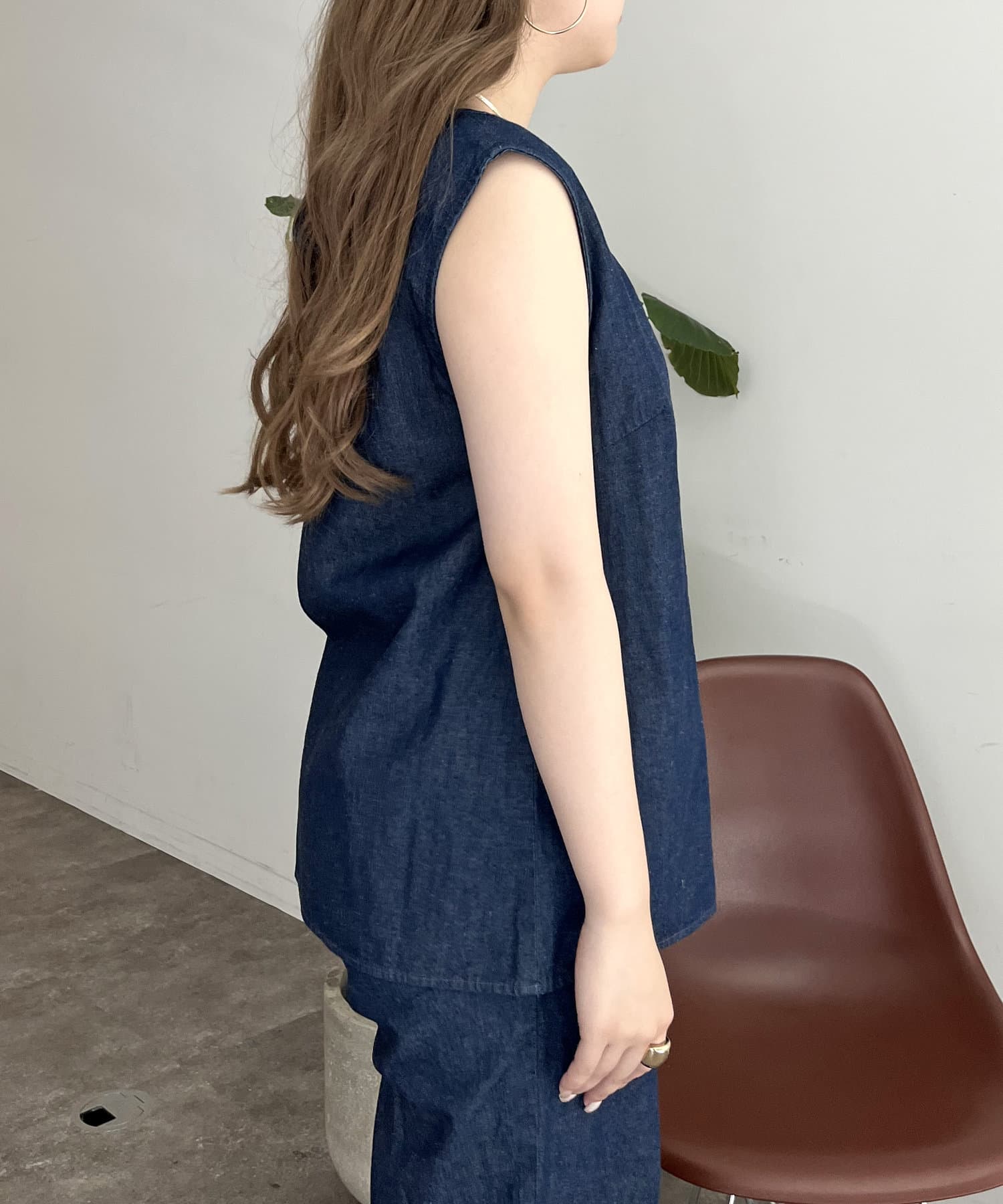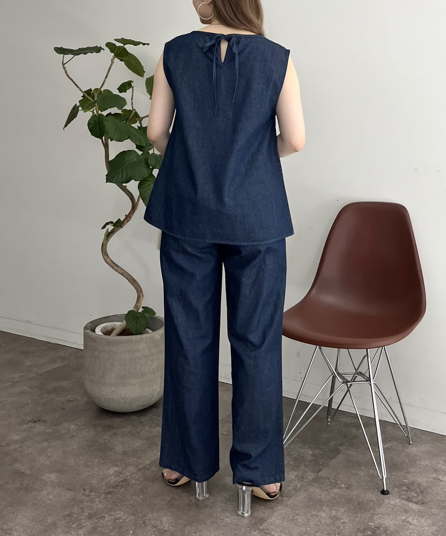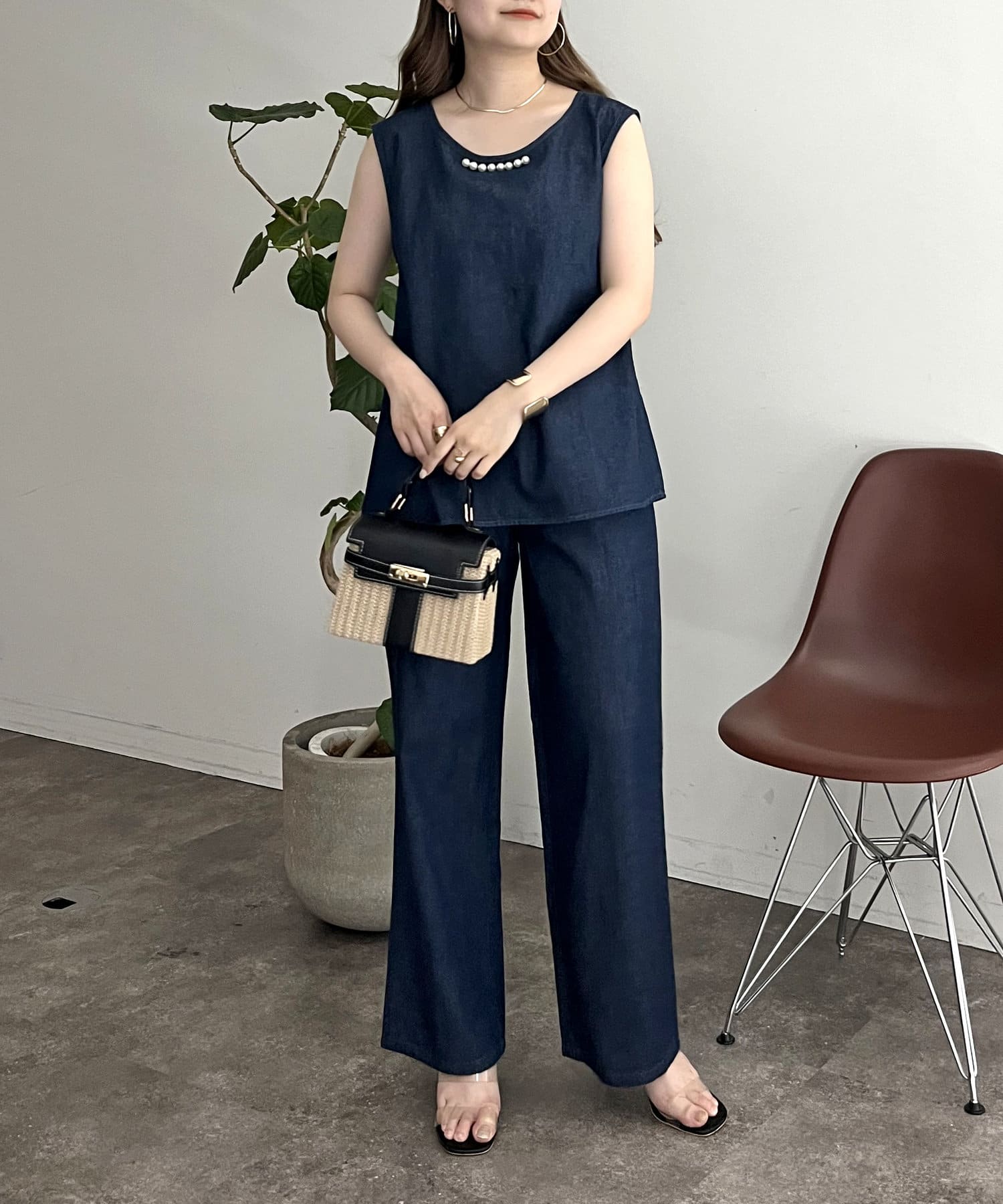 えりパールリネン混デニムセットアップ