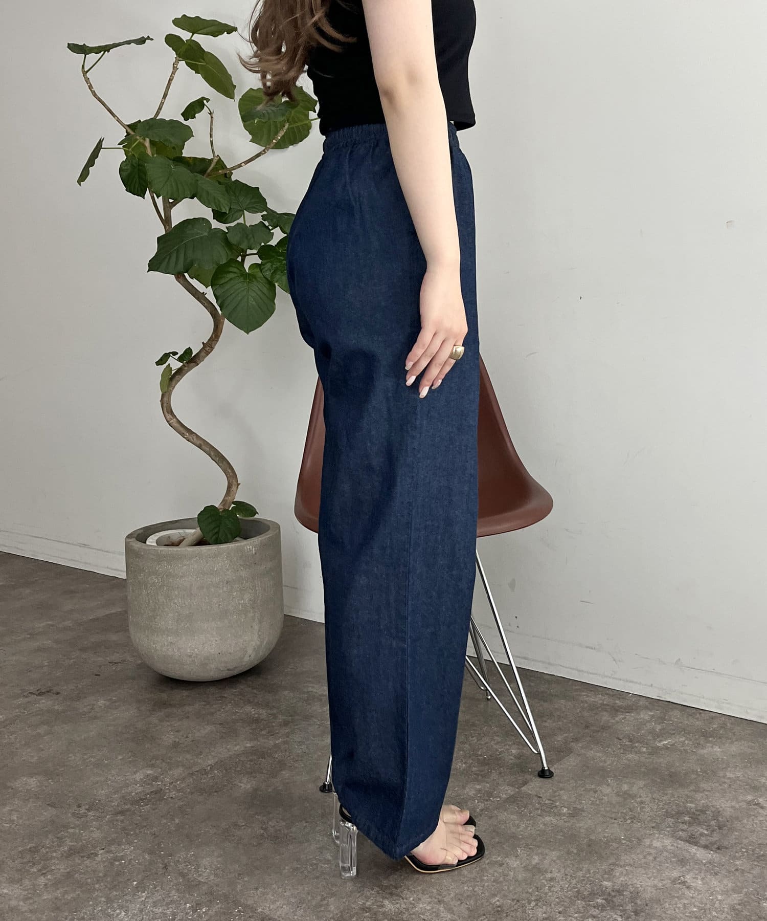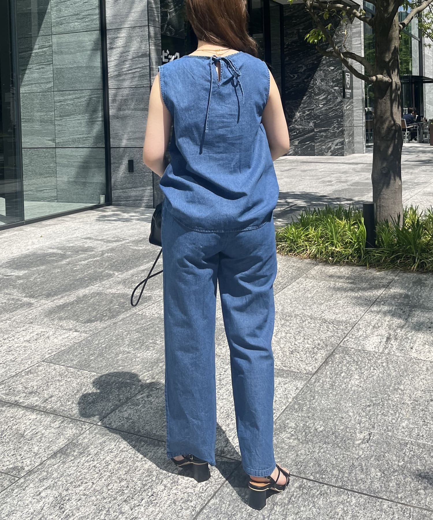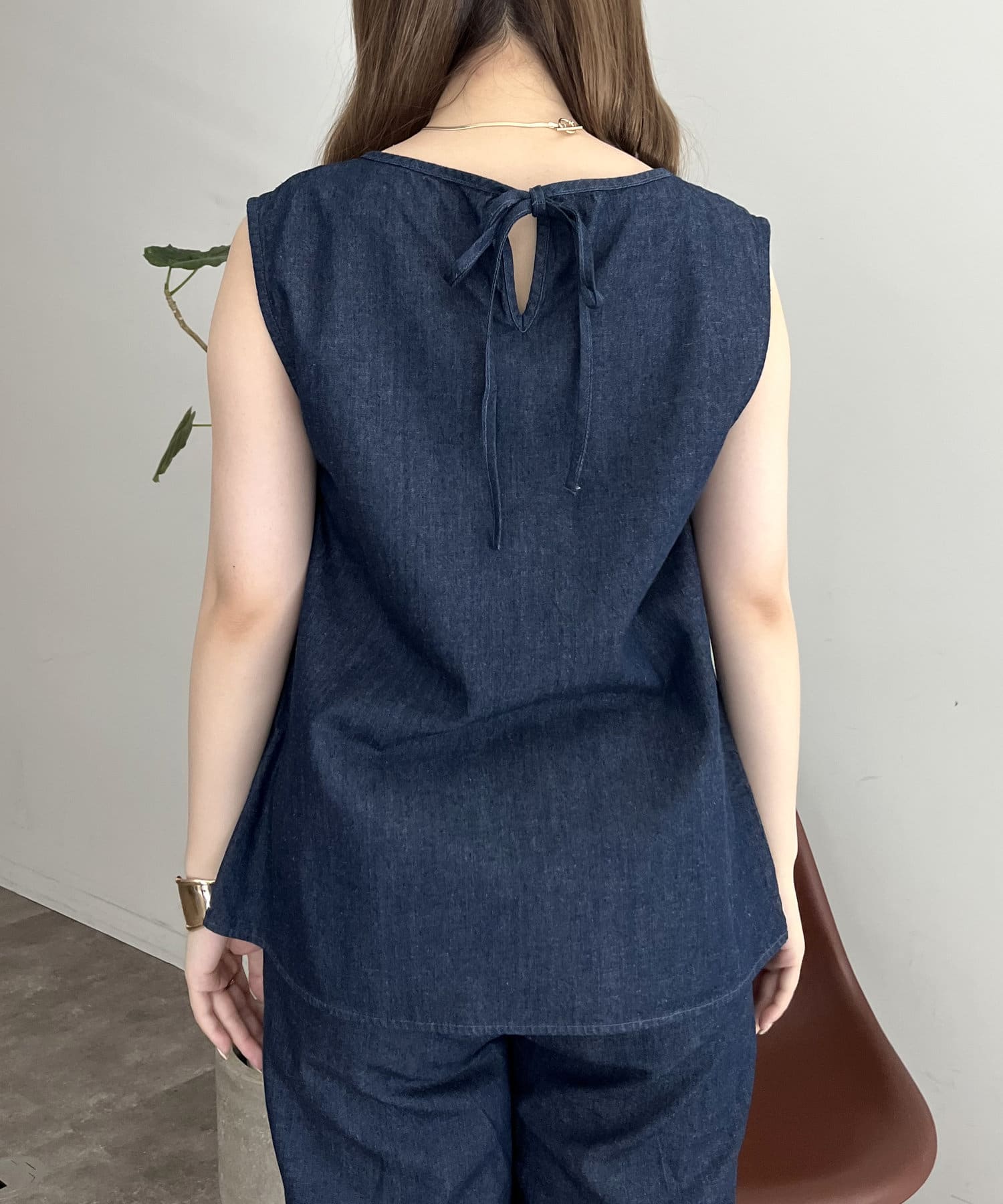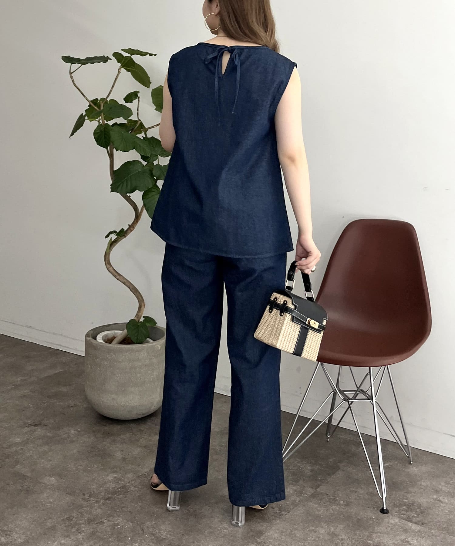 えりパールリネン混デニムセットアップ