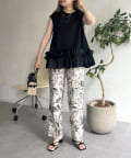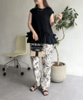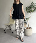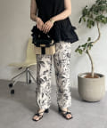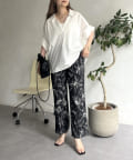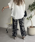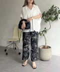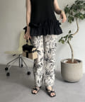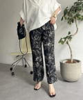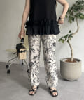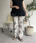 • prose verse(プロズヴェール) 麻調モノトーンボタニカル柄イージーパンツ