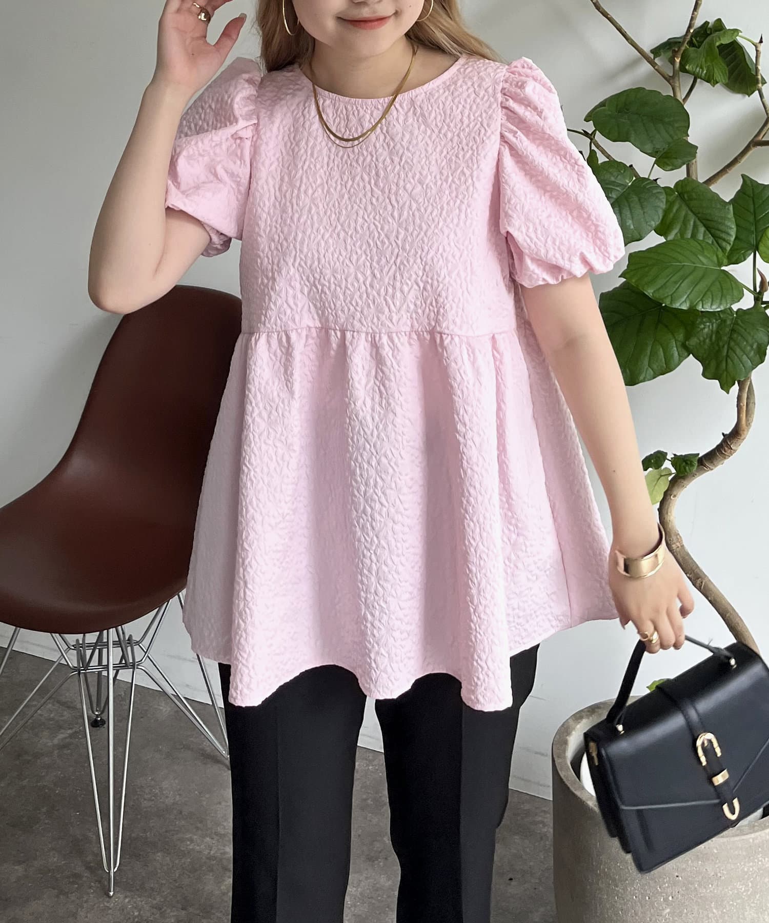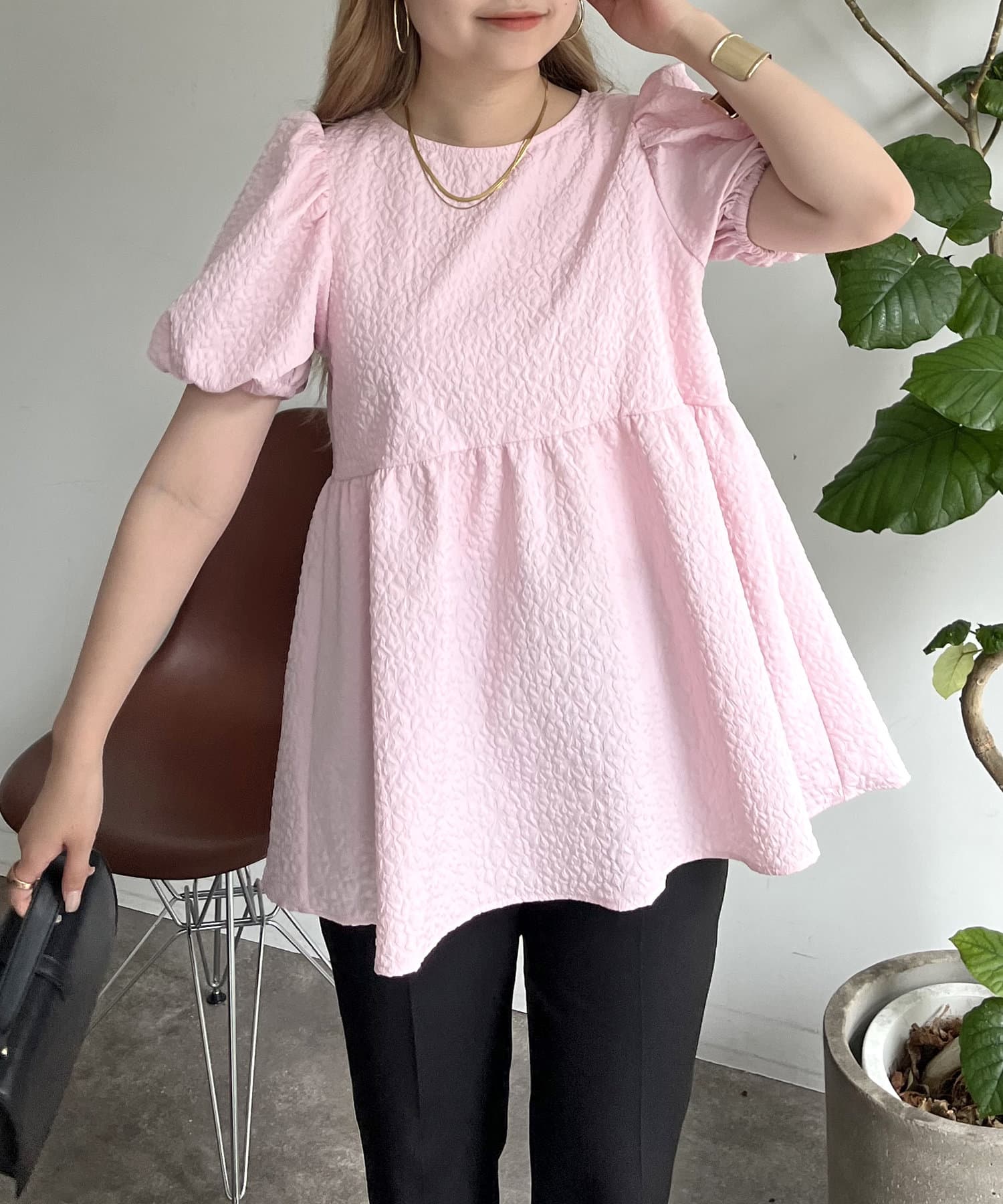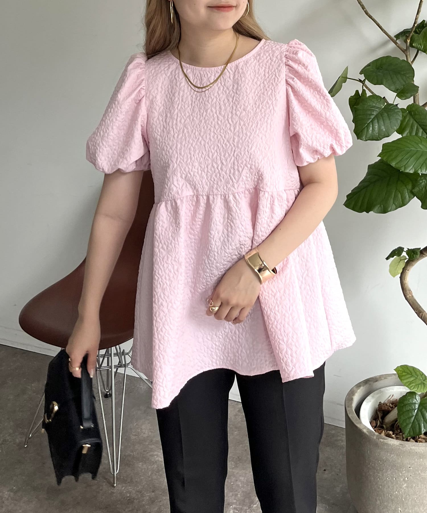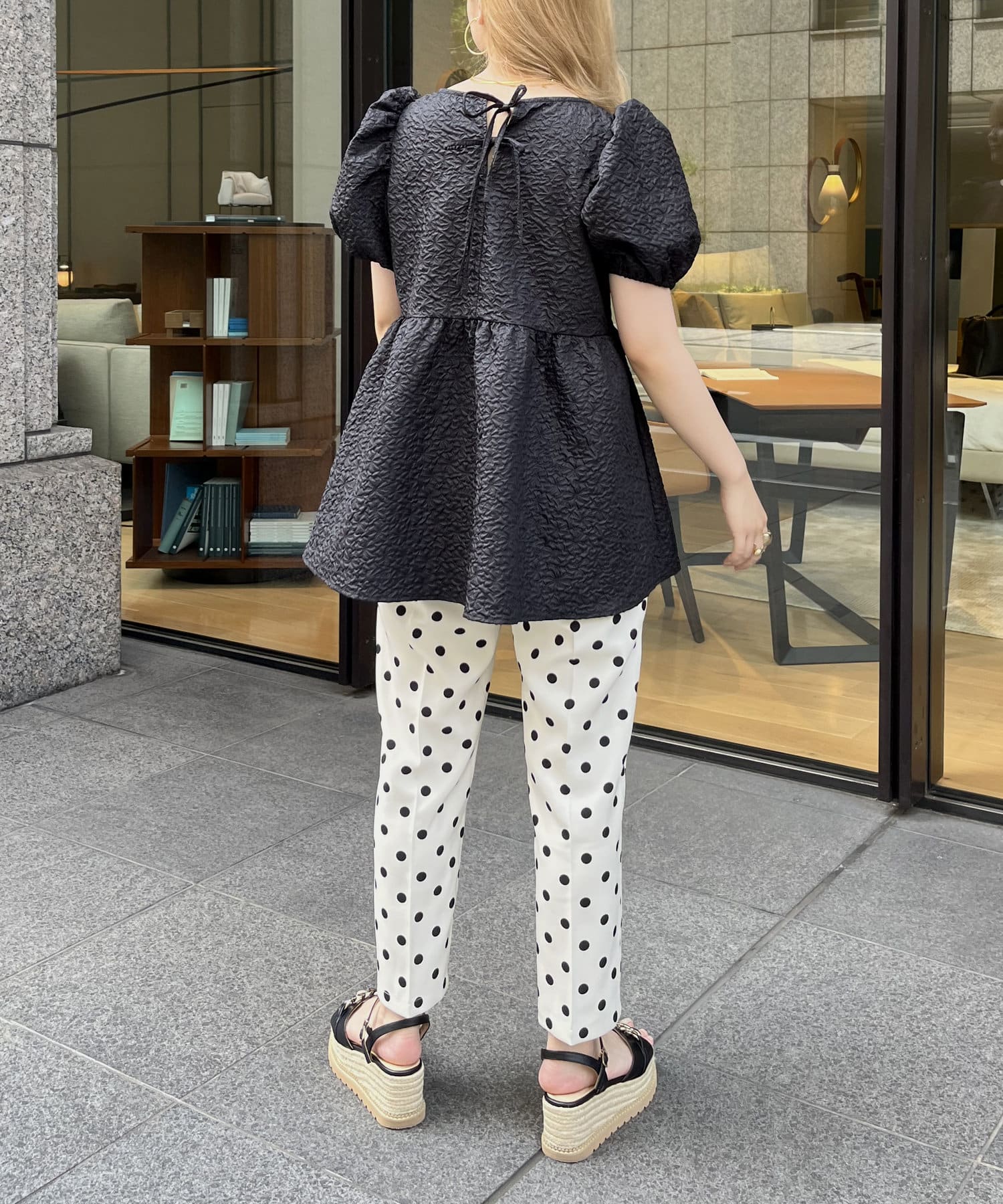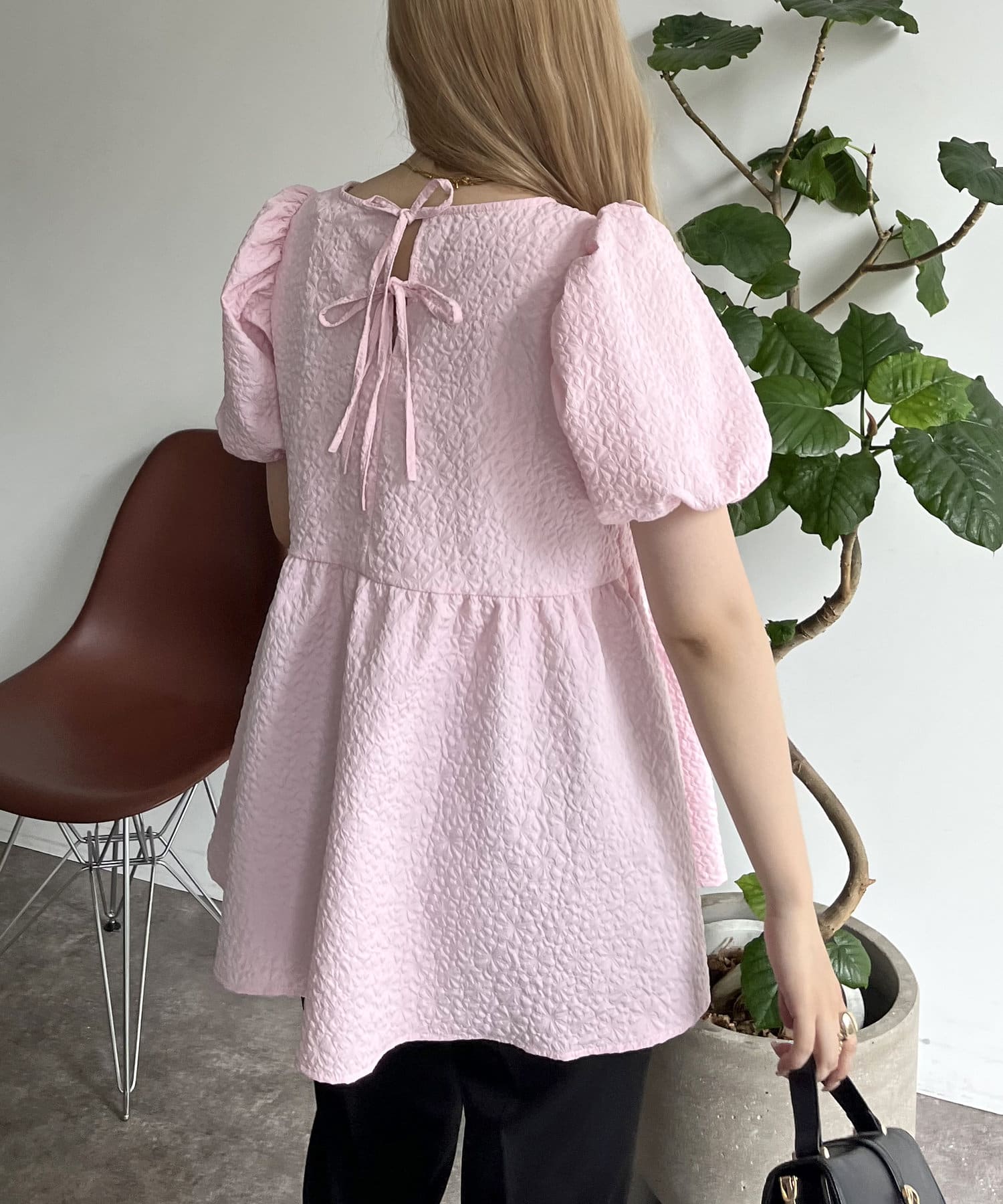 ブラウス/バックリボン /ペプラム /ジャガード/こなれ感/上品見え