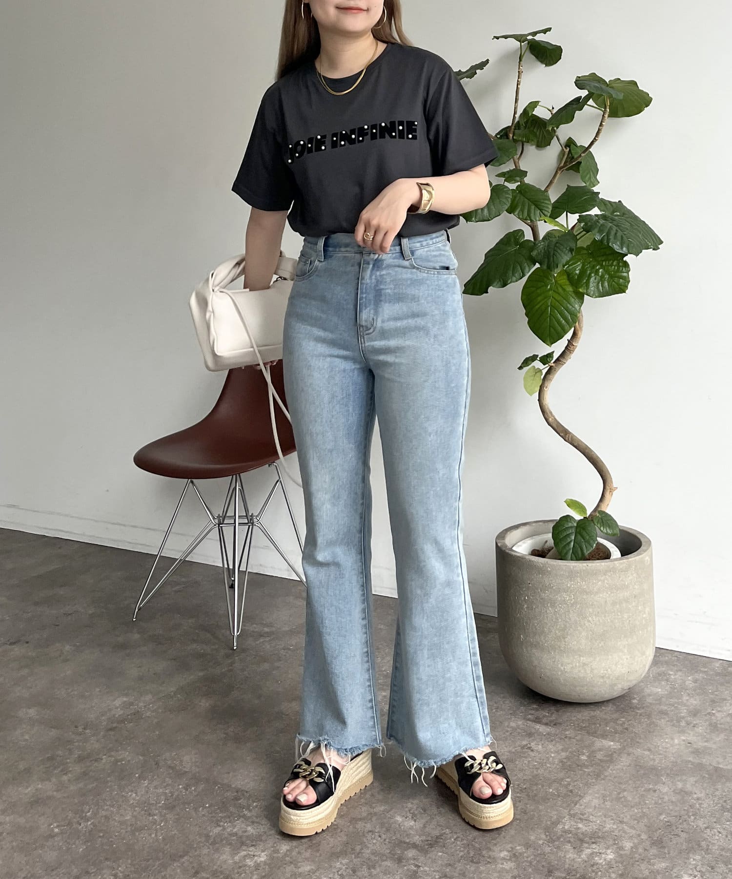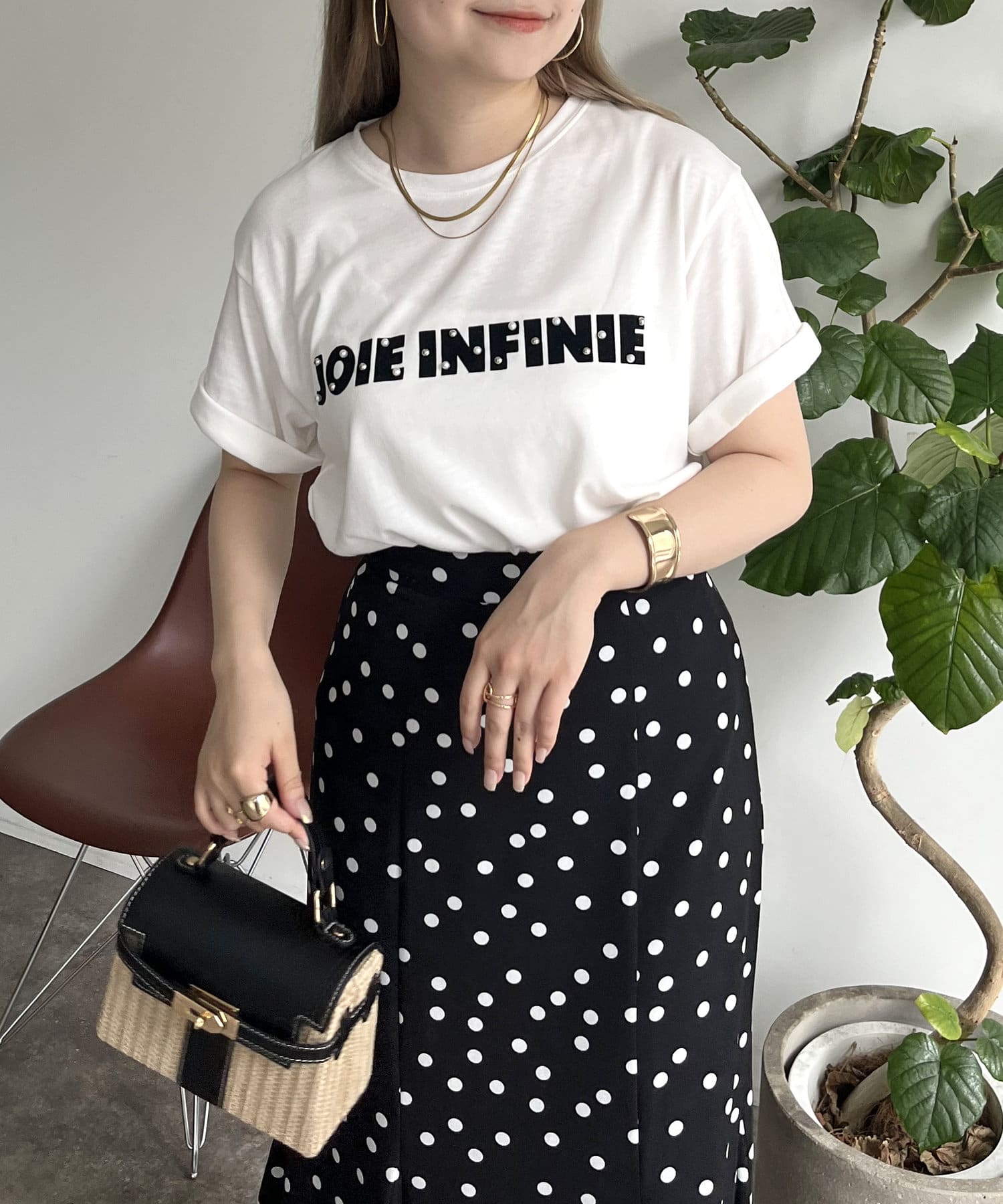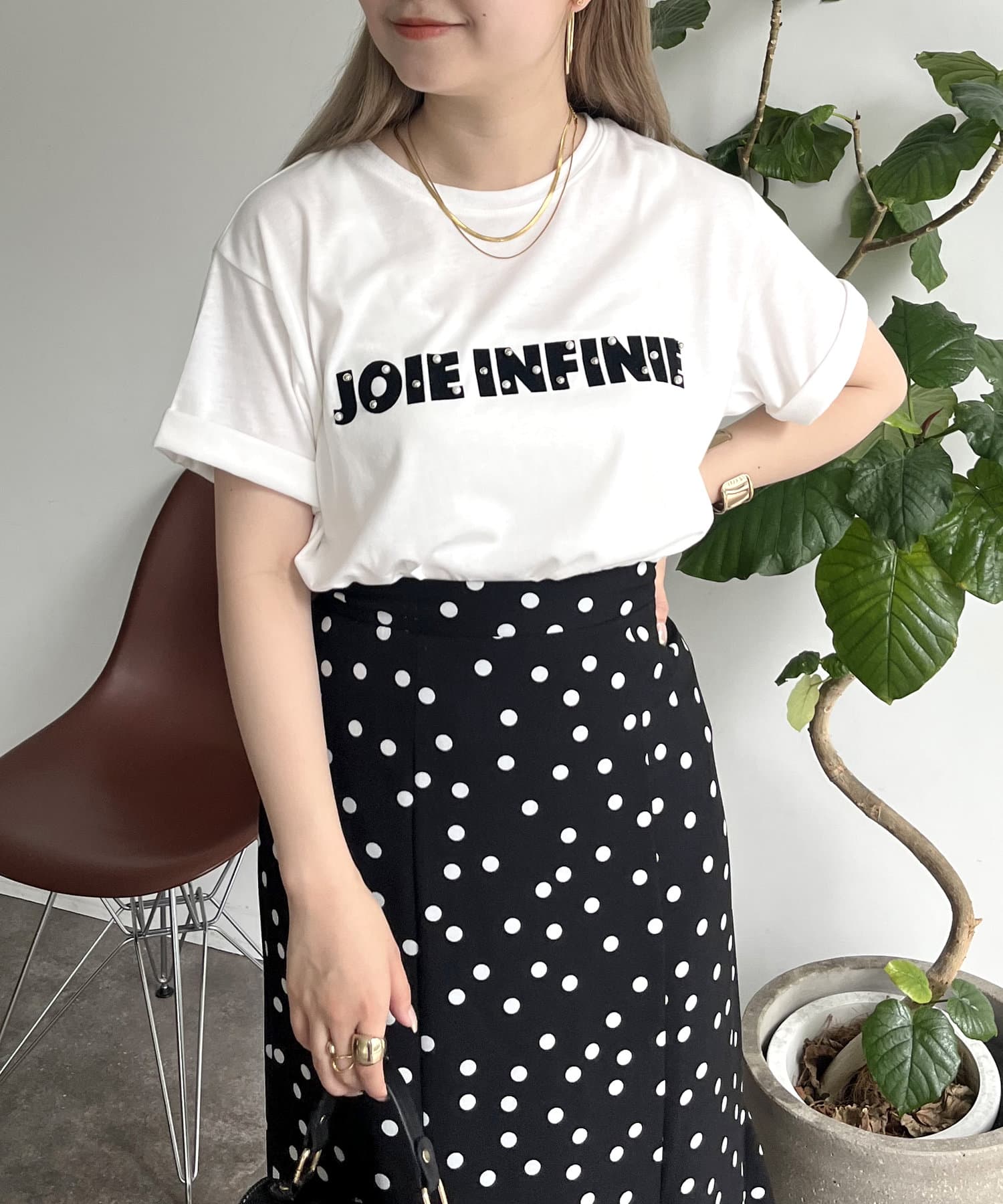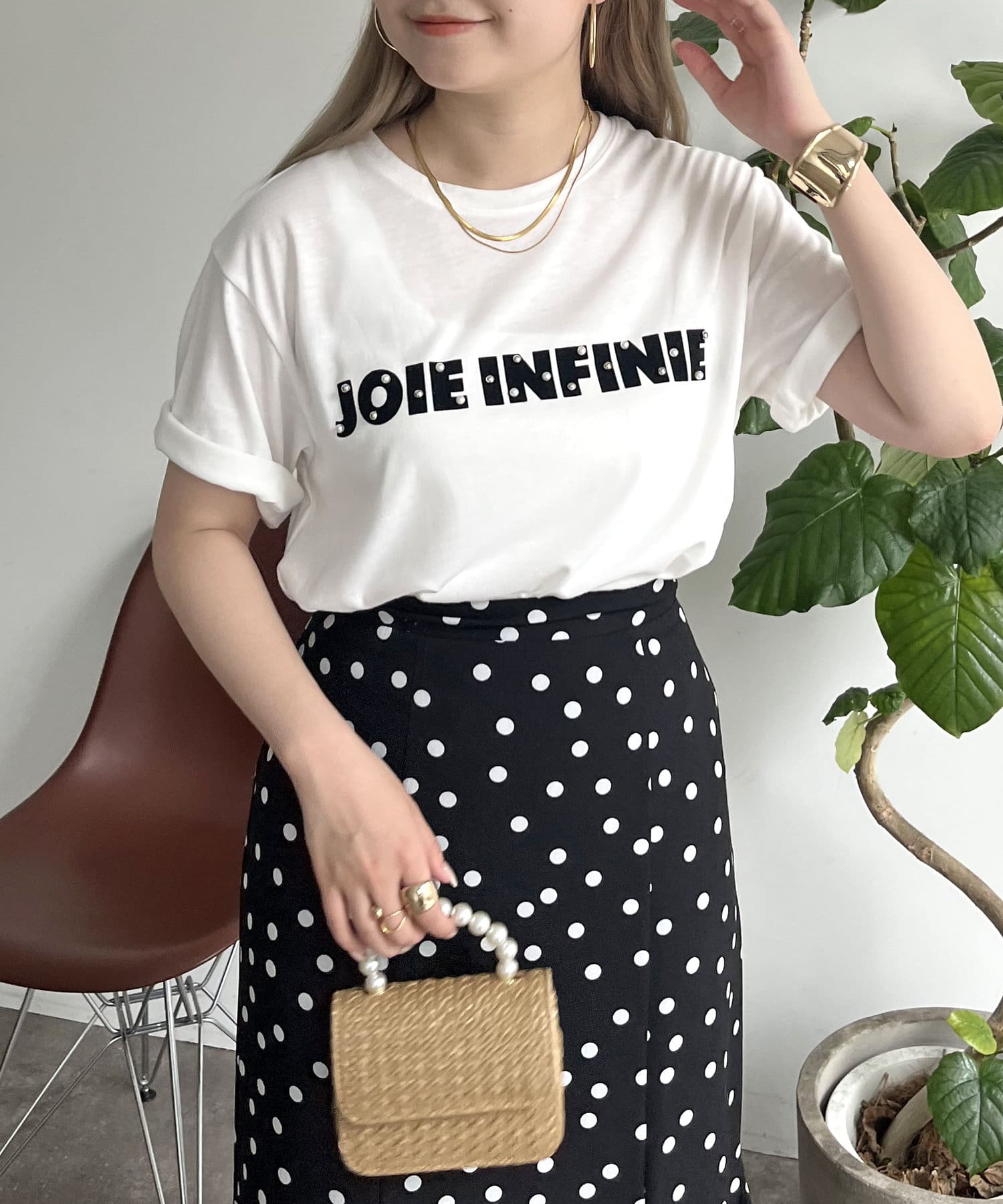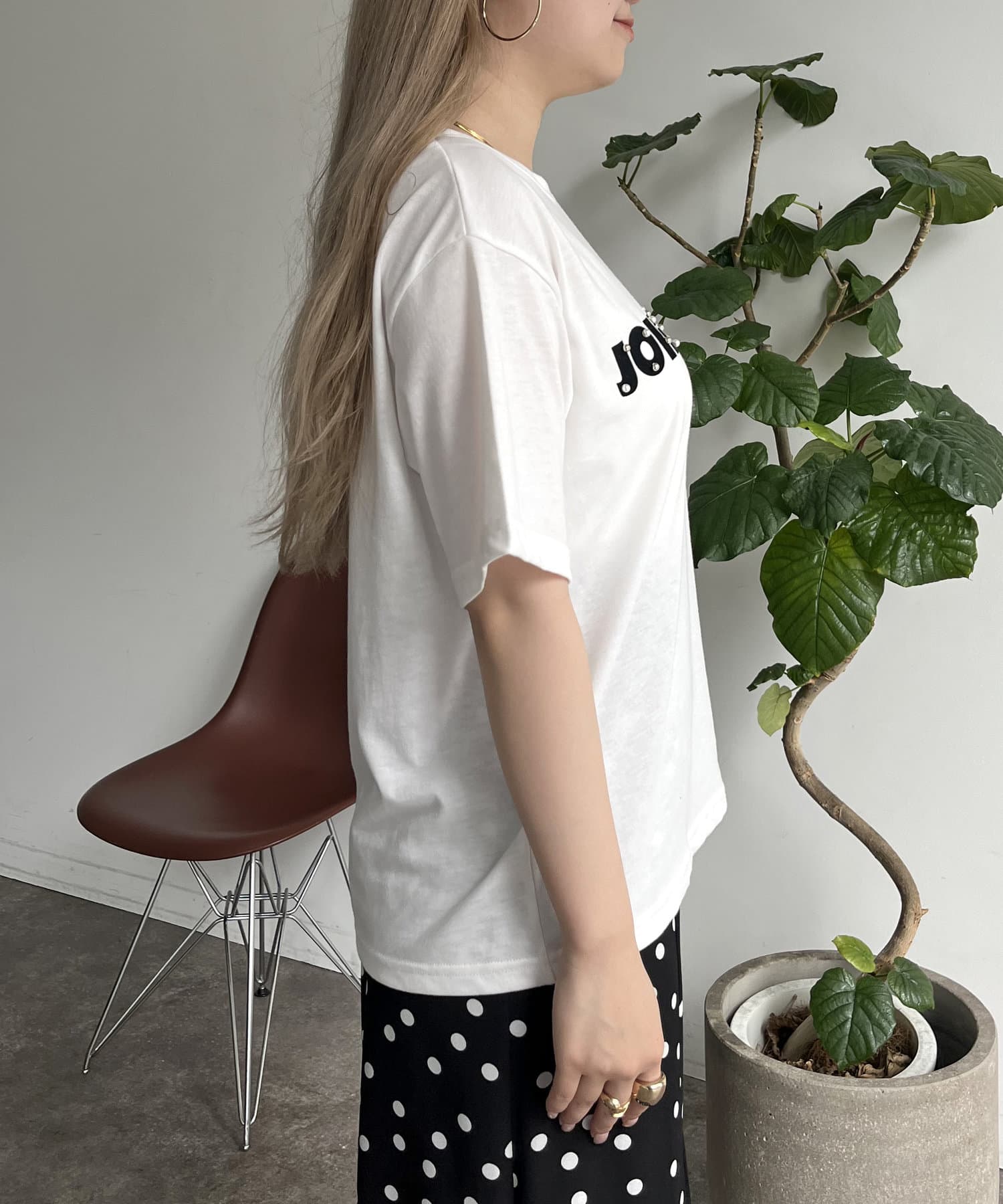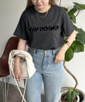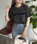 パールで華やかにしてくれるロゴTシャツ