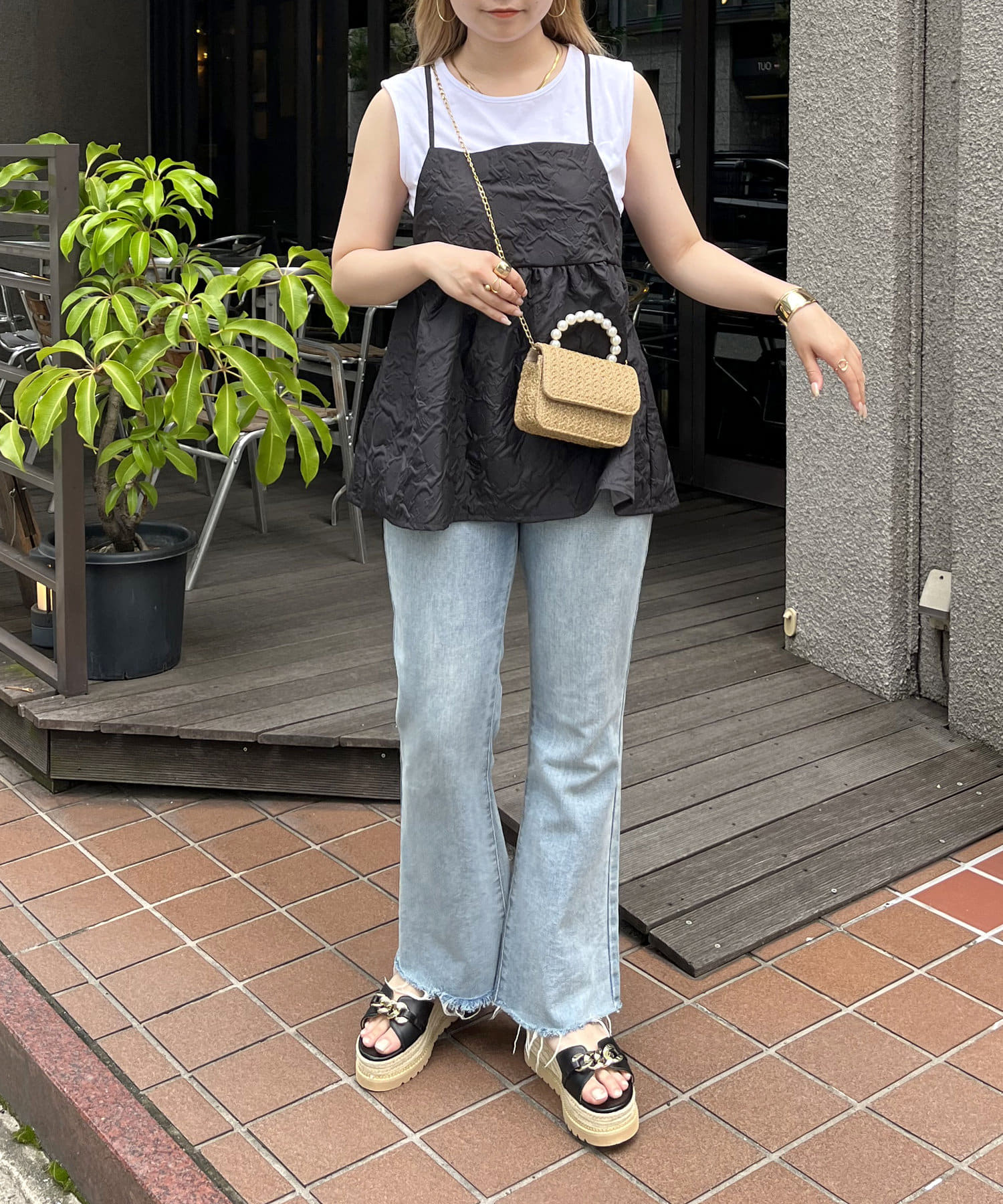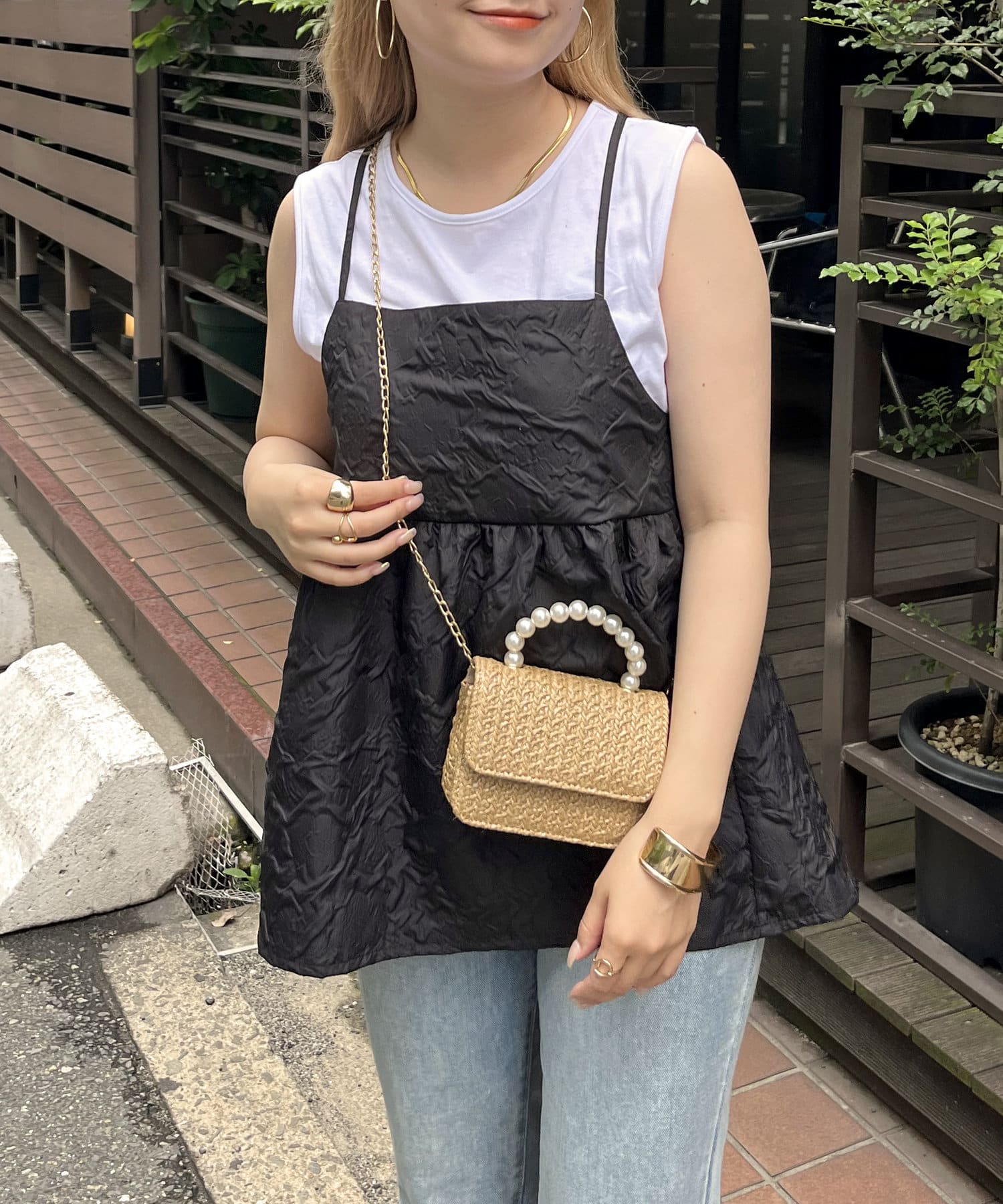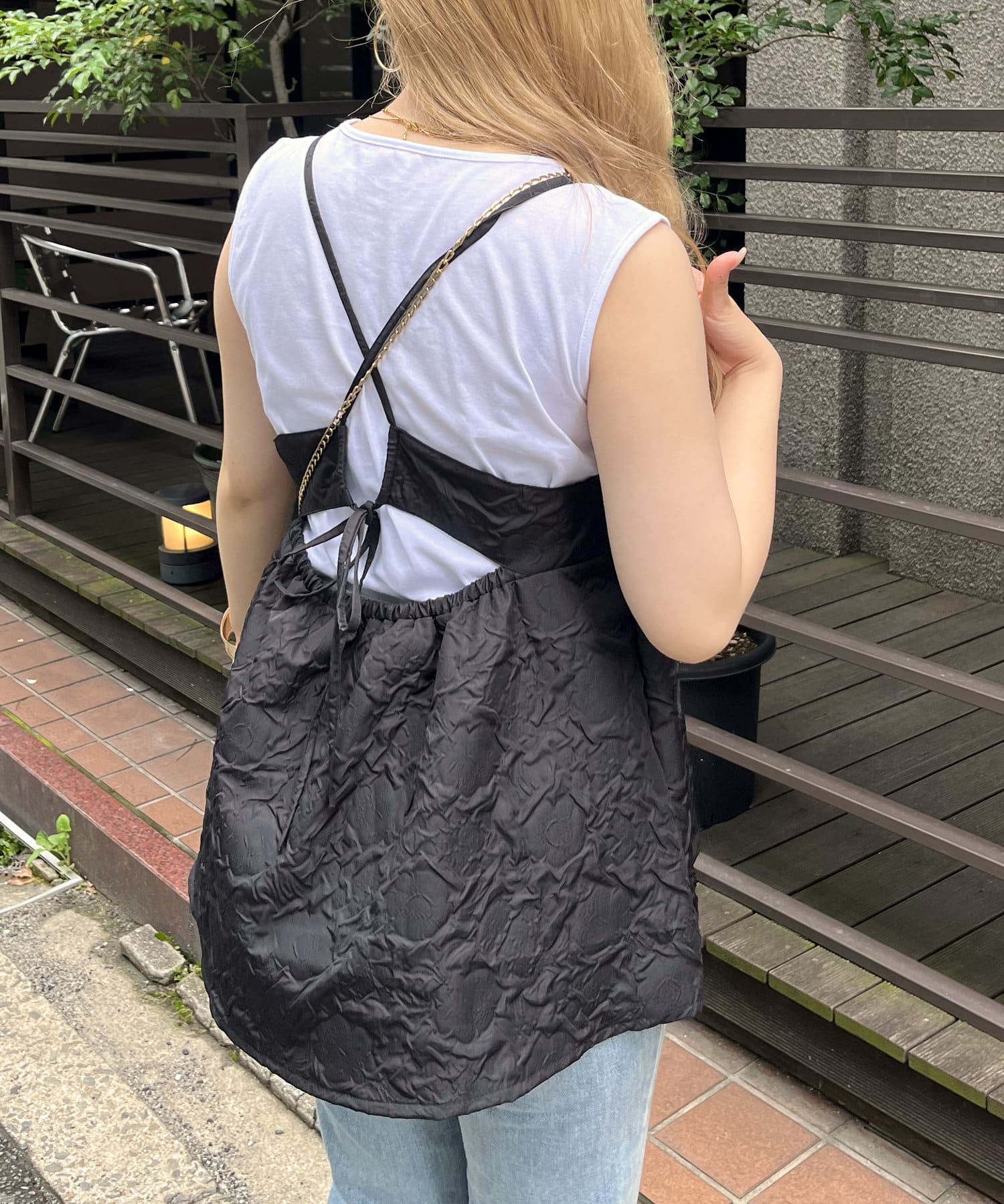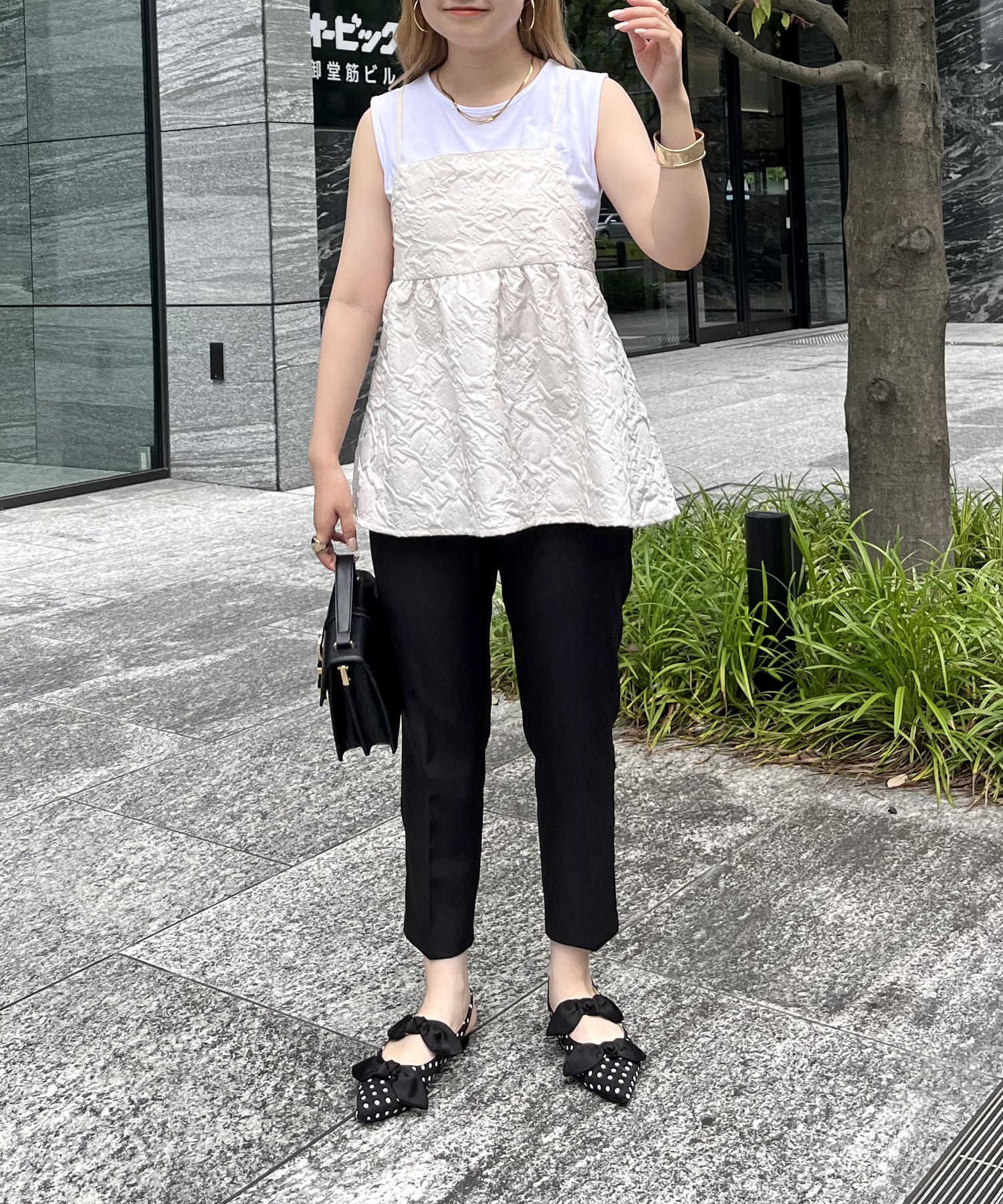 ジャガード素材がこなれた印象に魅せてくれるペプラムキャミ