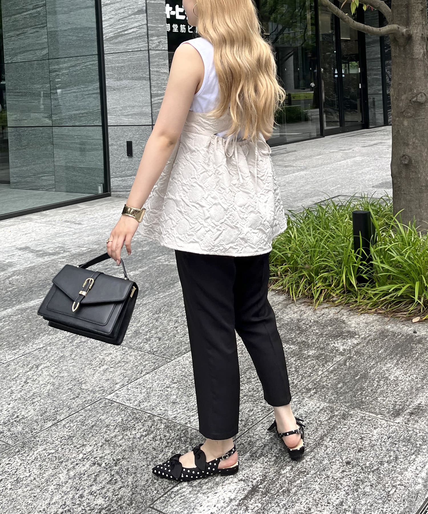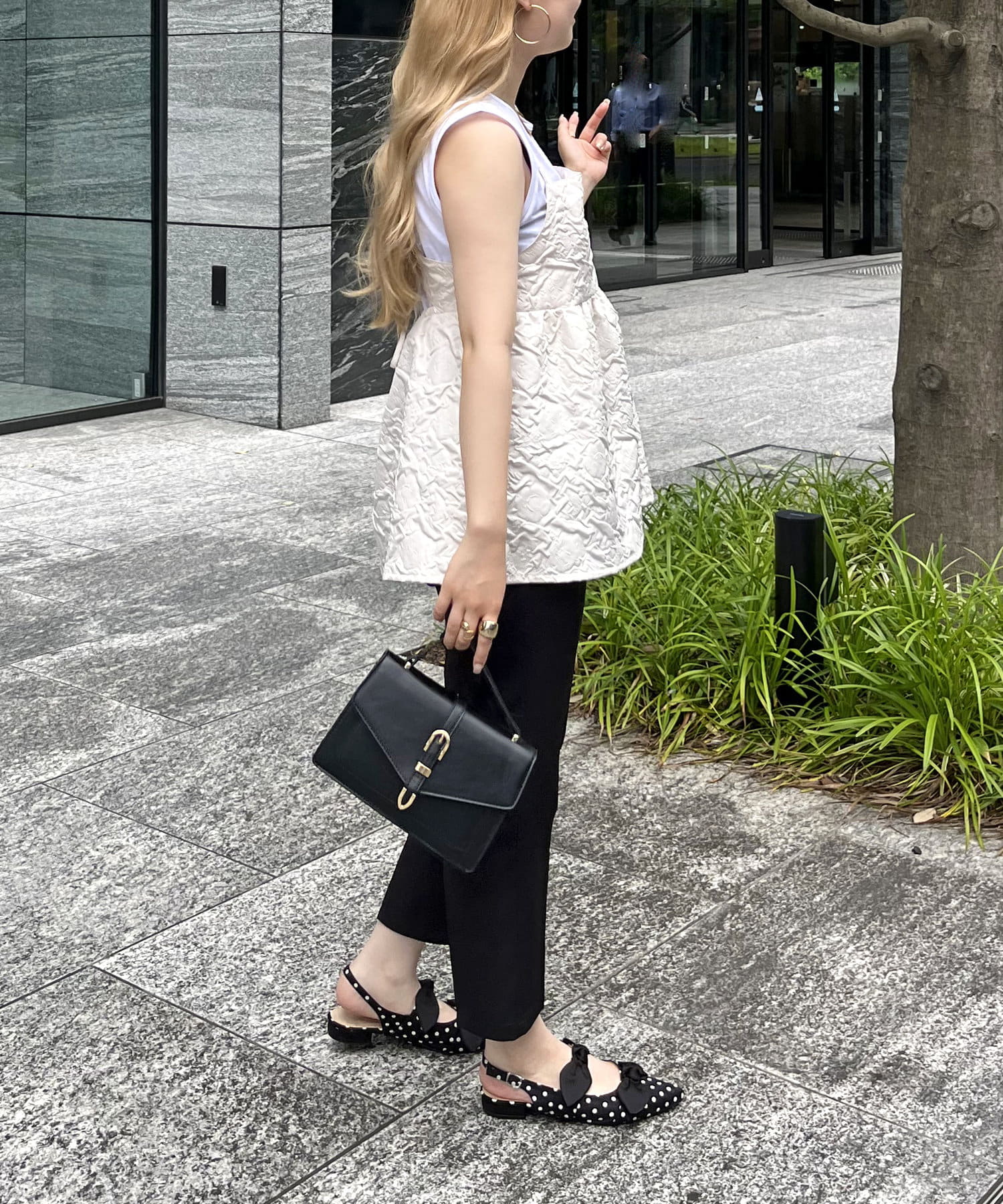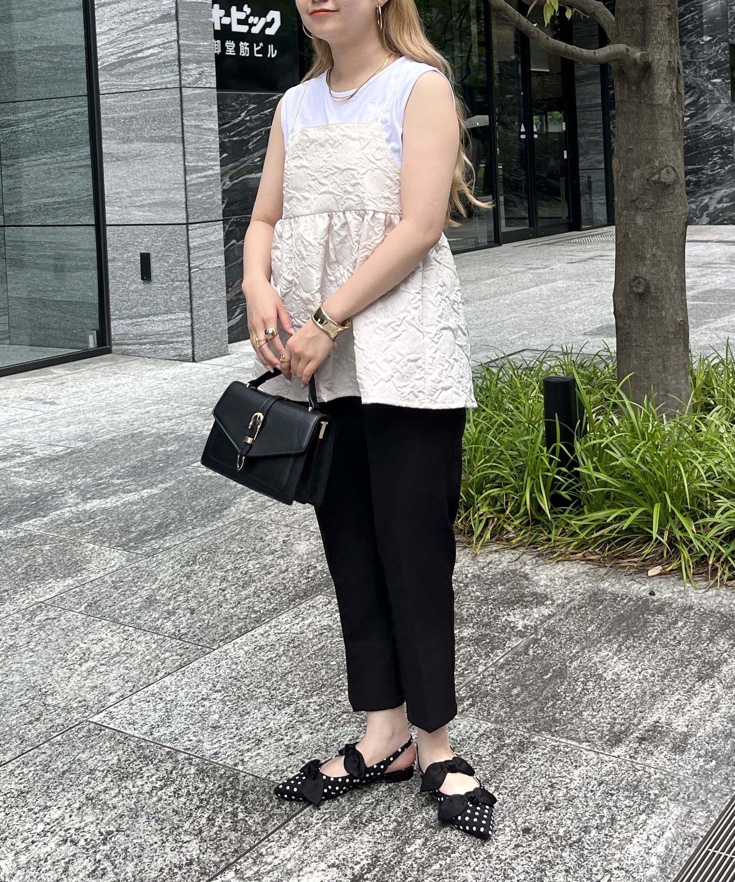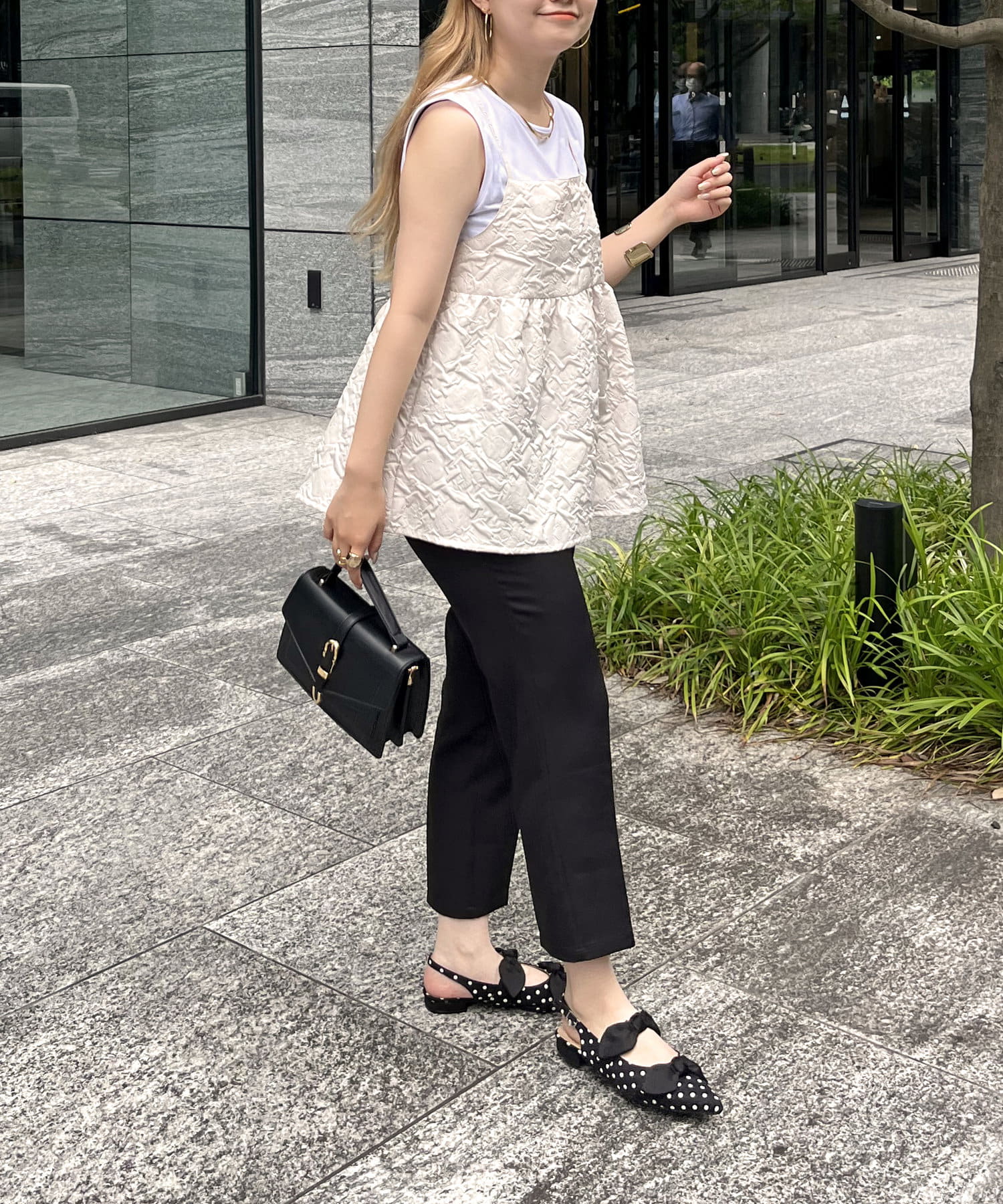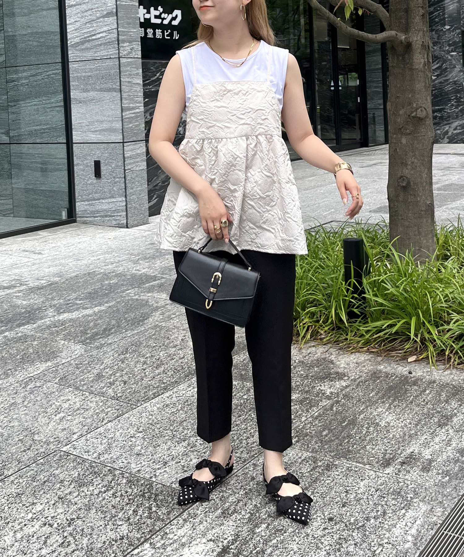 ジャガード素材がこなれた印象に魅せてくれるペプラムキャミ