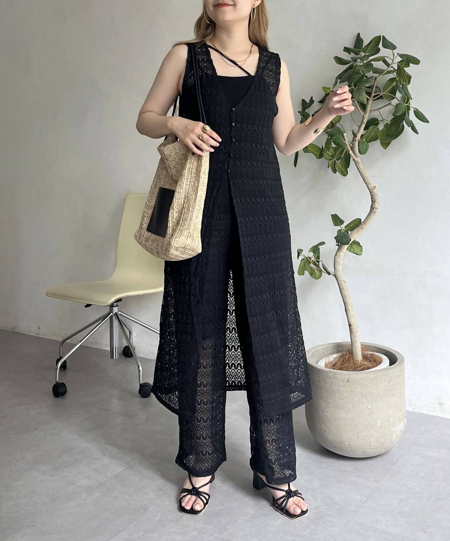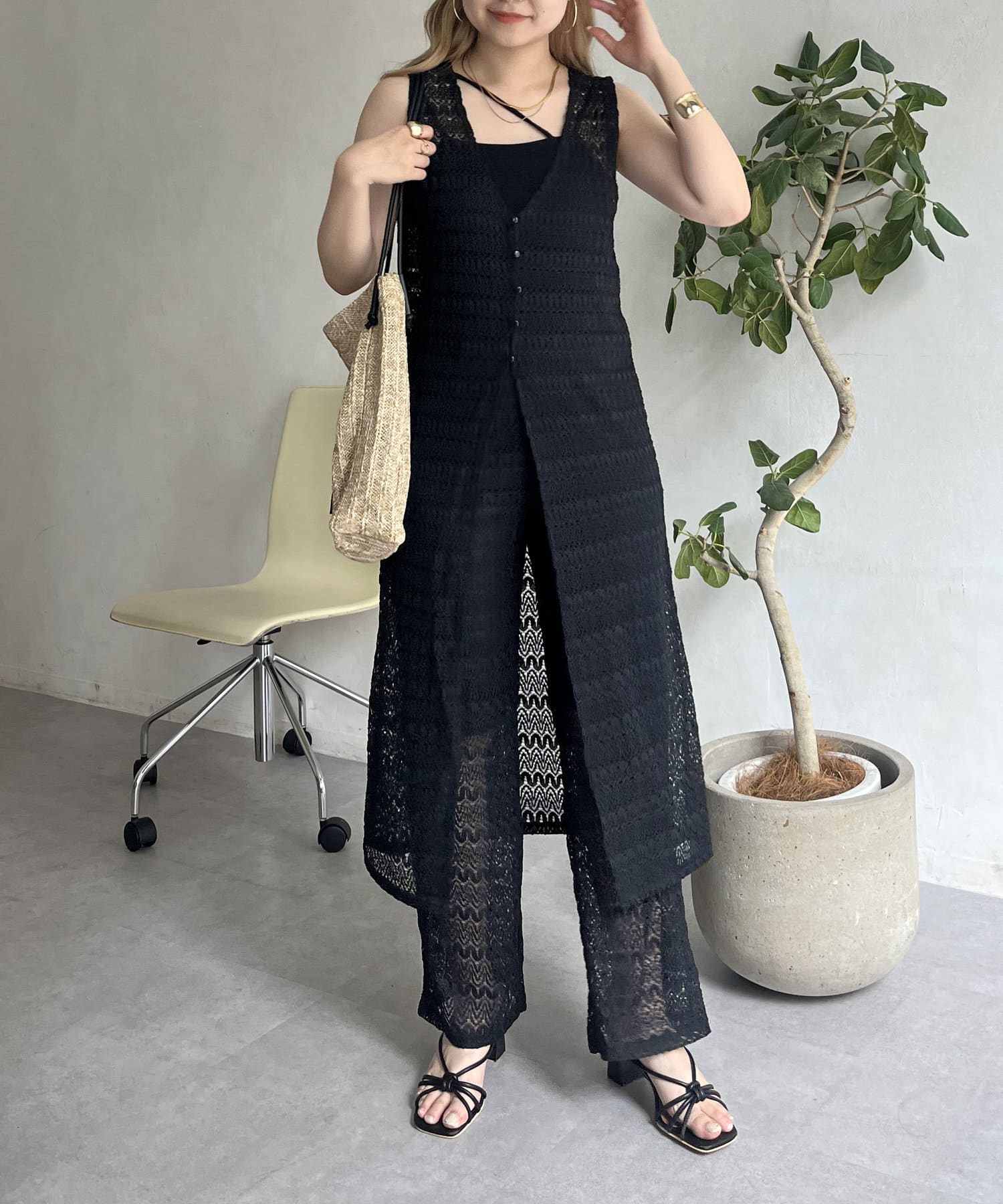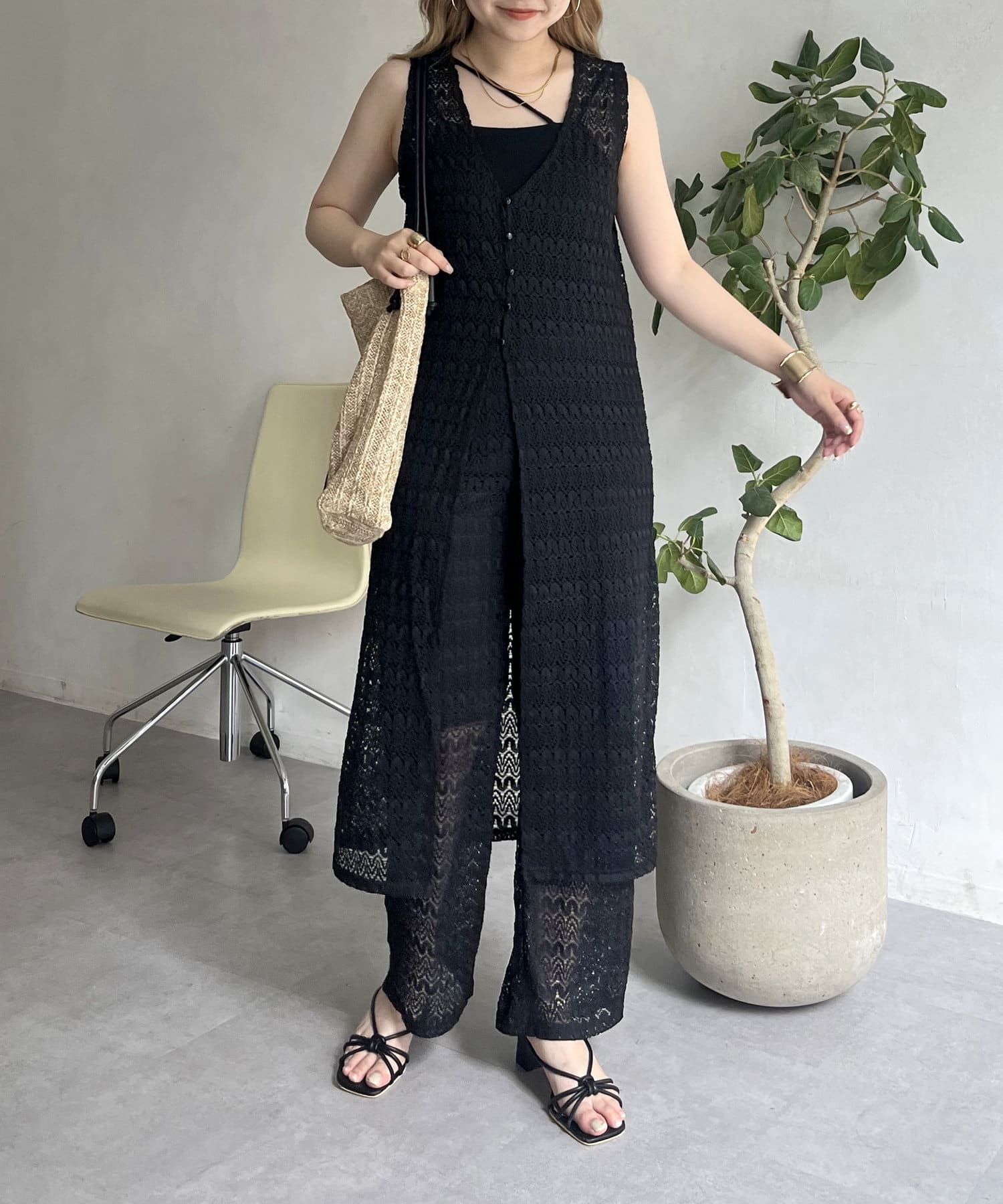 レース / ジレ /パンツ/セットアップ /SETUP/大人きれいめカジュアル