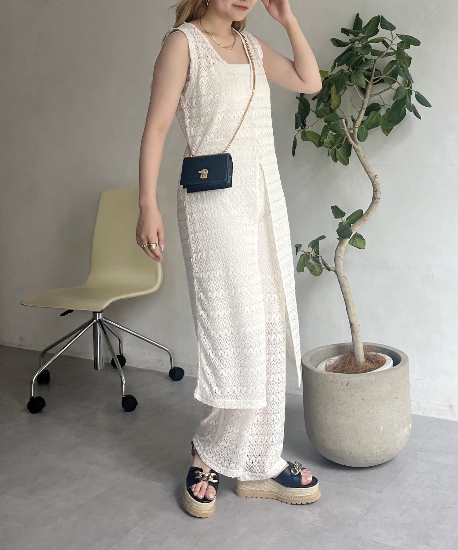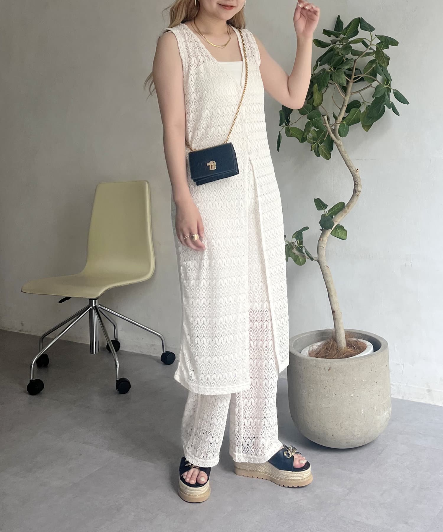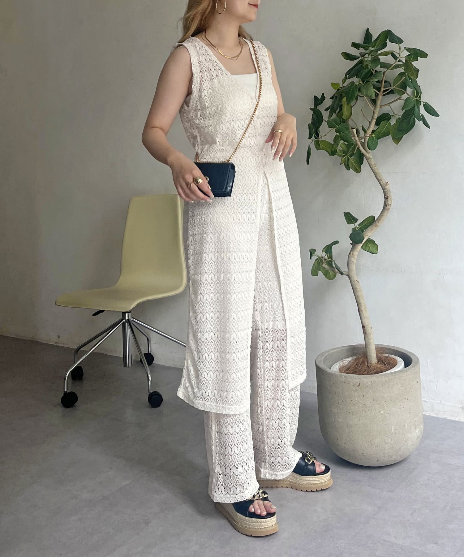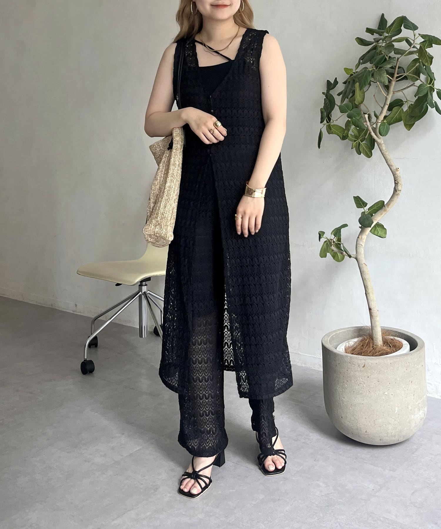 レース / ジレ /パンツ/セットアップ /SETUP/大人きれいめカジュアル