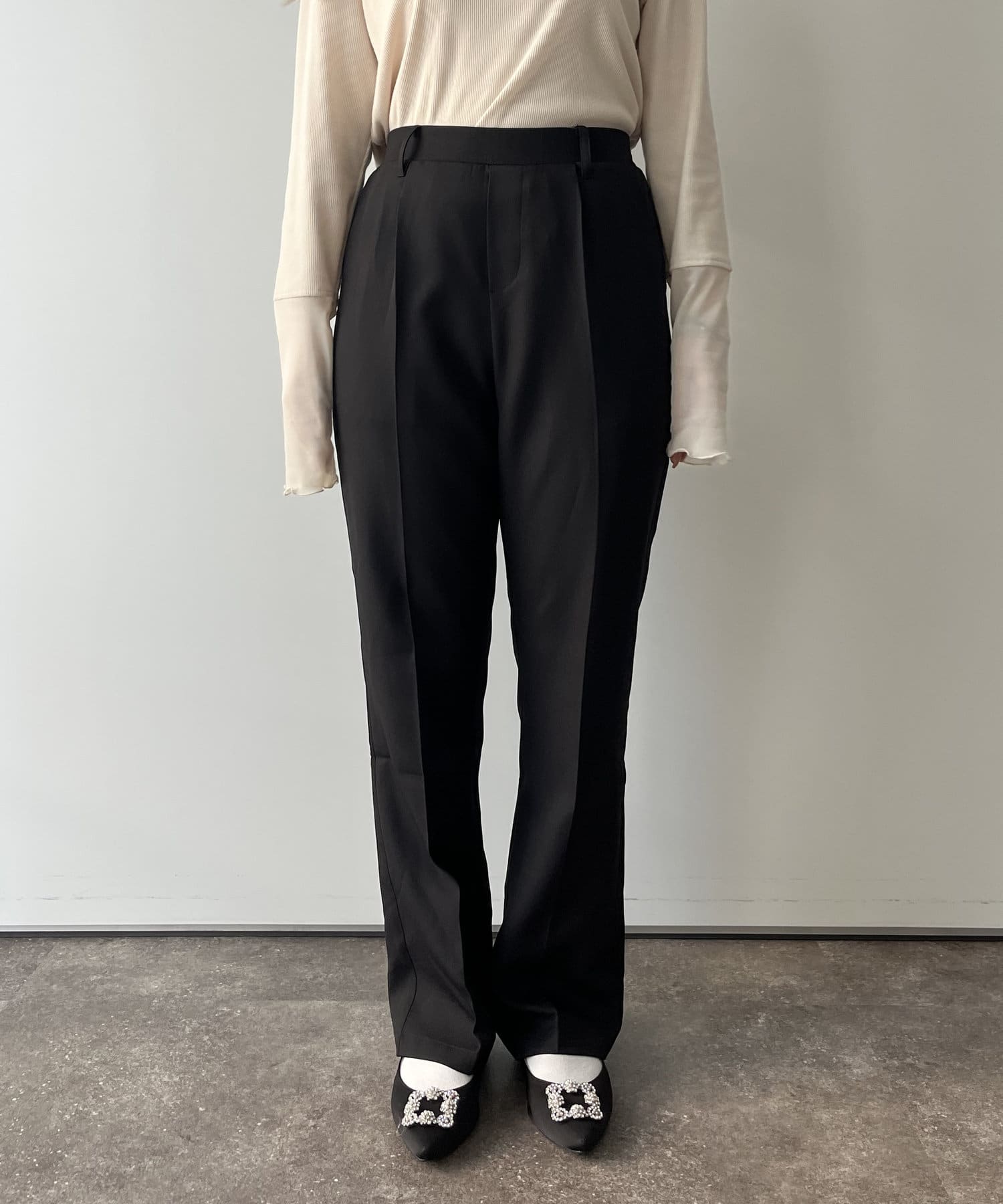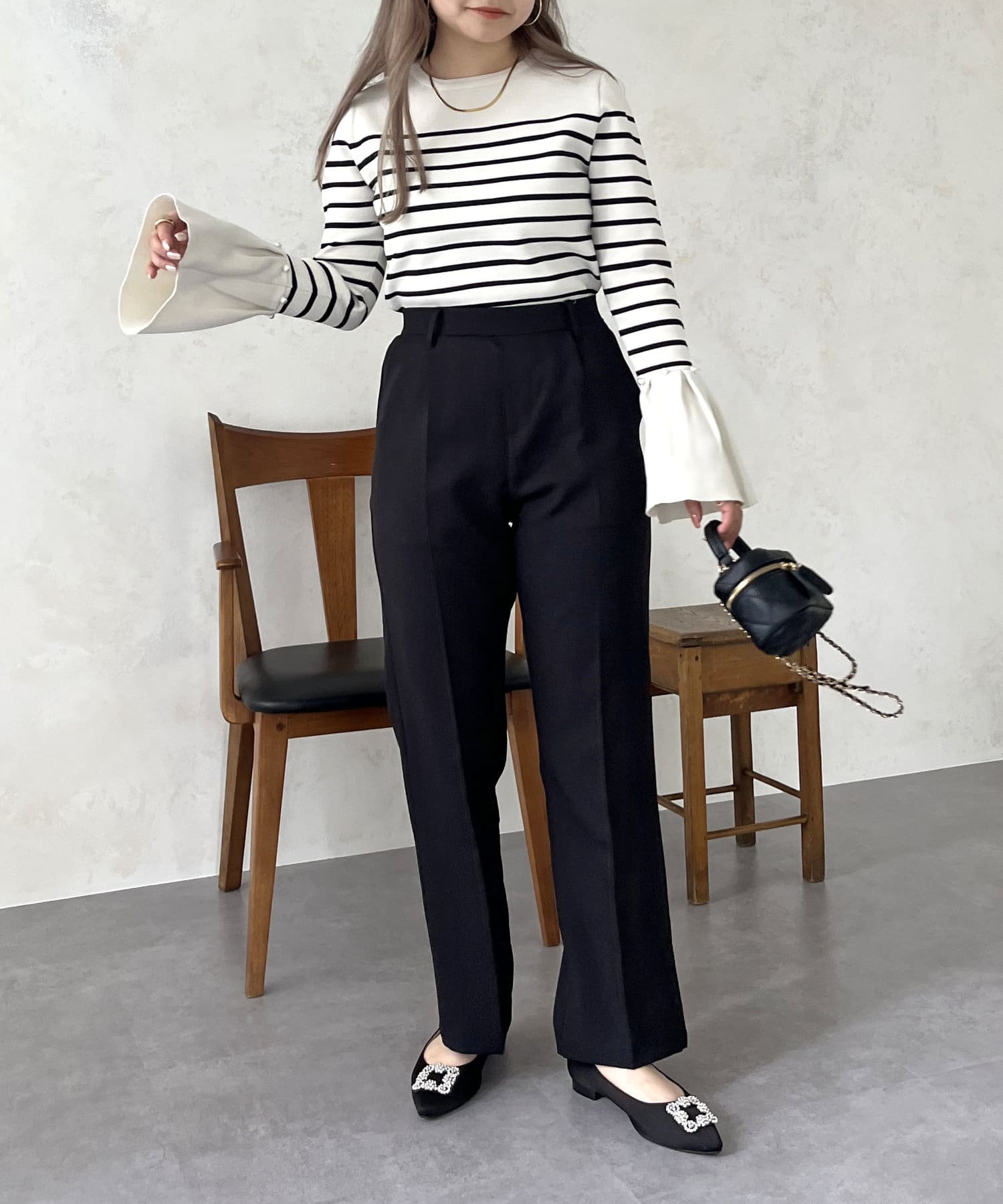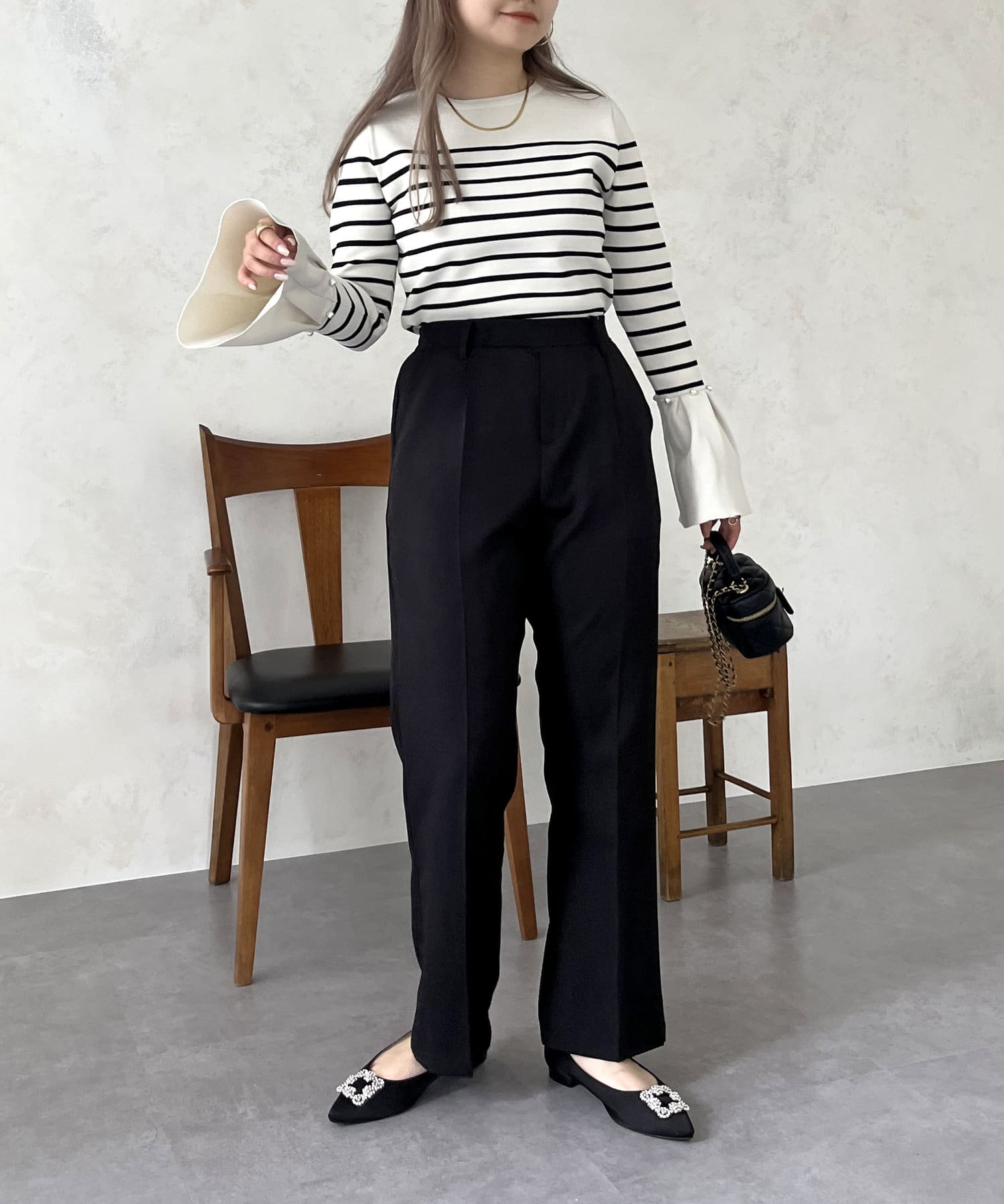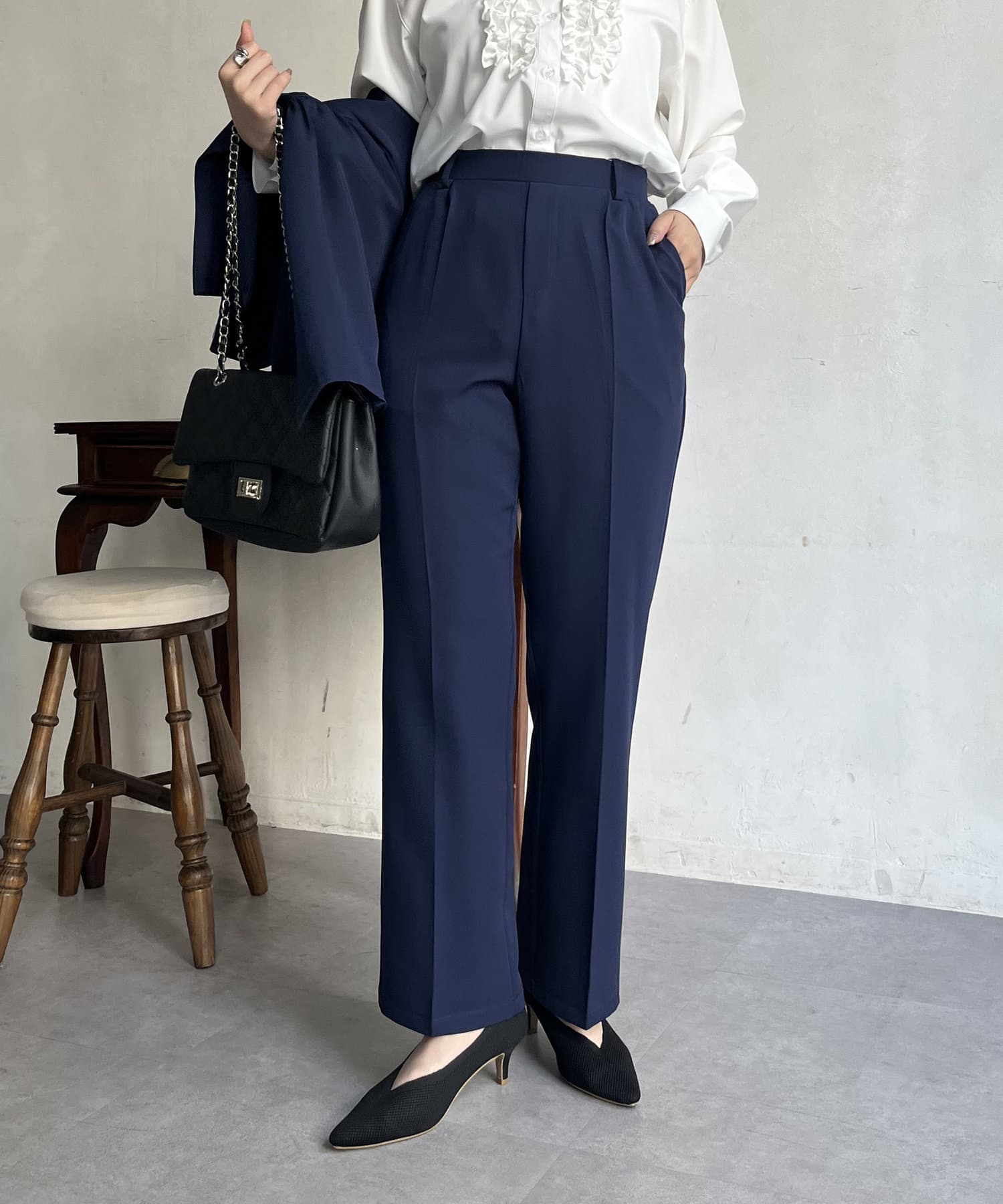 ●ハイウエスト+センタープレスなので脚長効果にも!