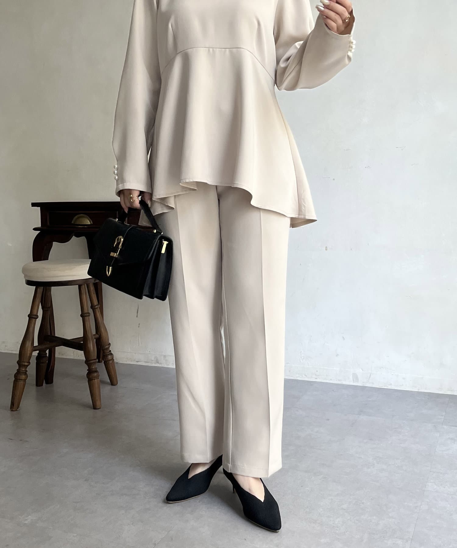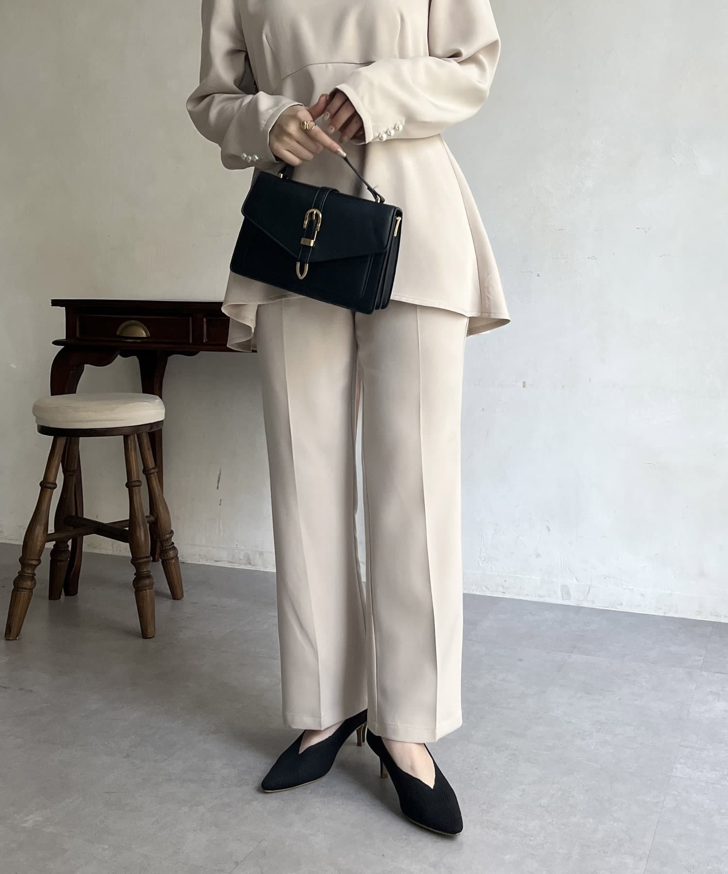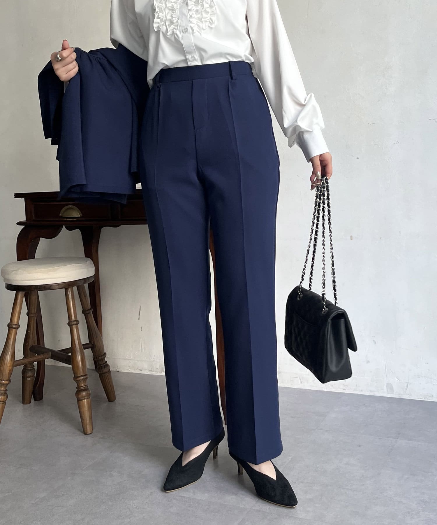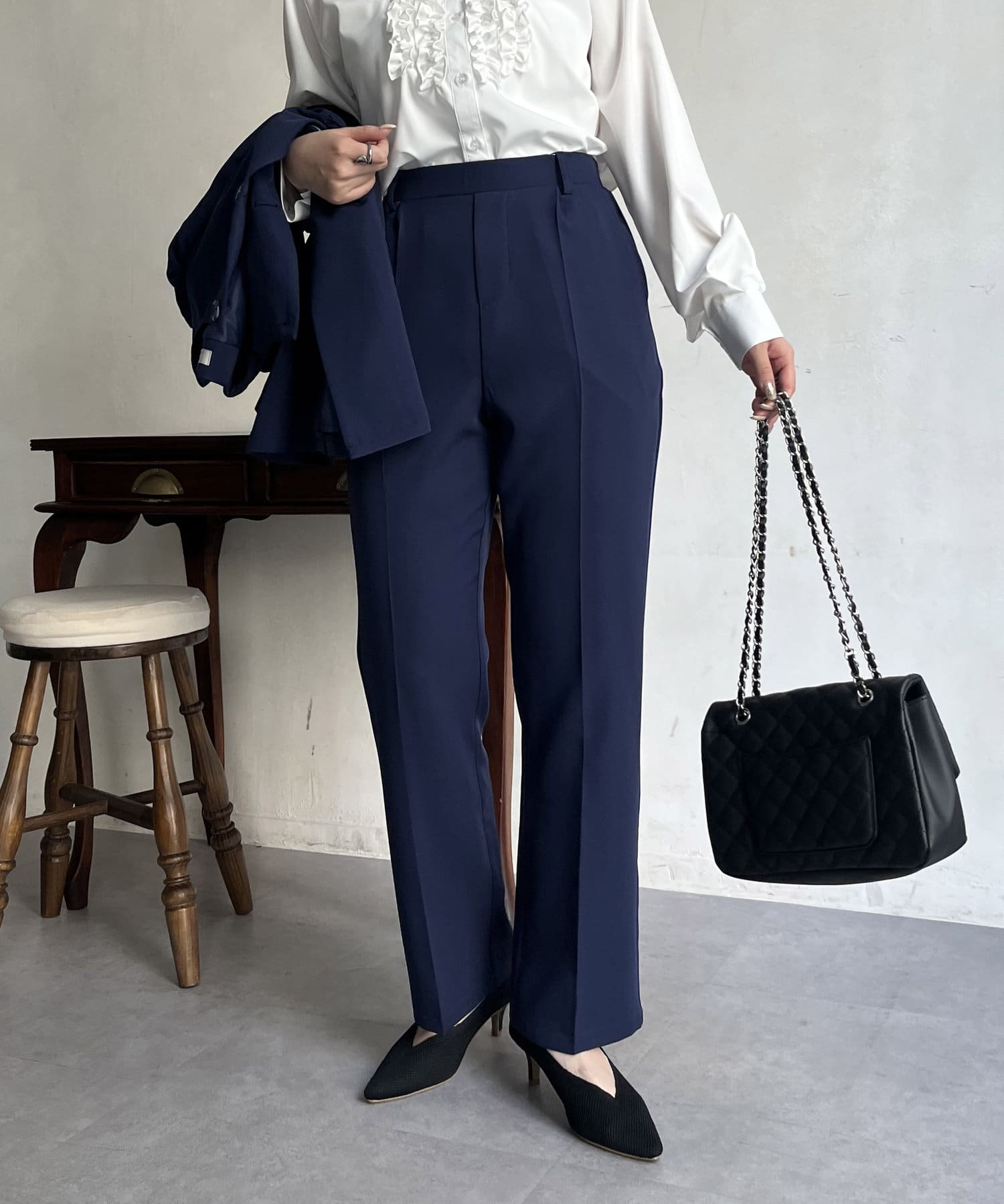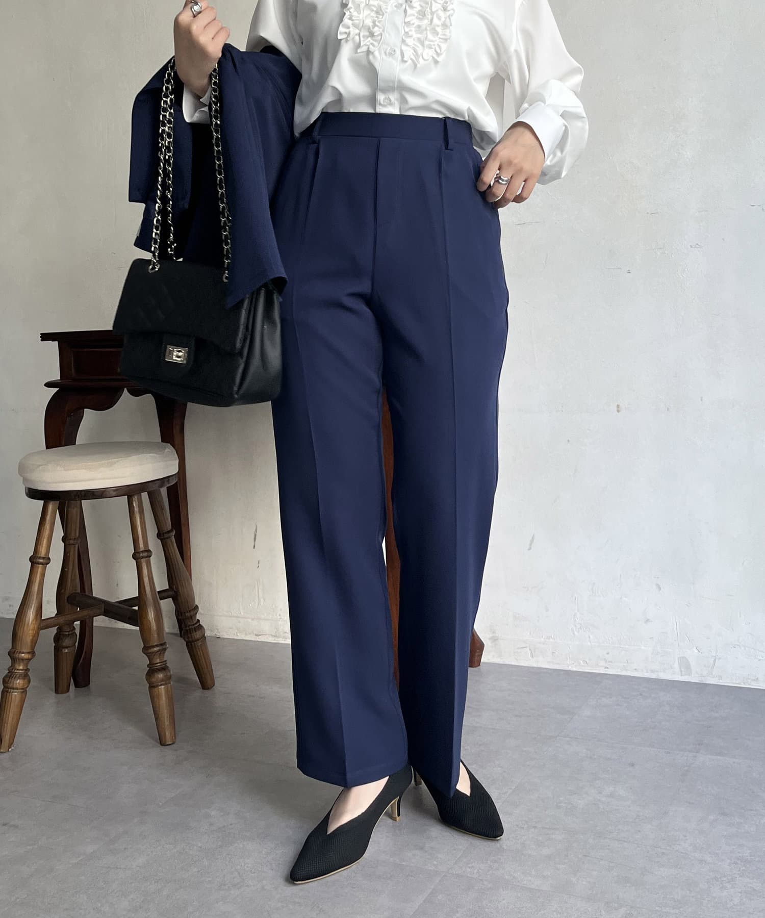 ●ハイウエスト+センタープレスなので脚長効果にも!