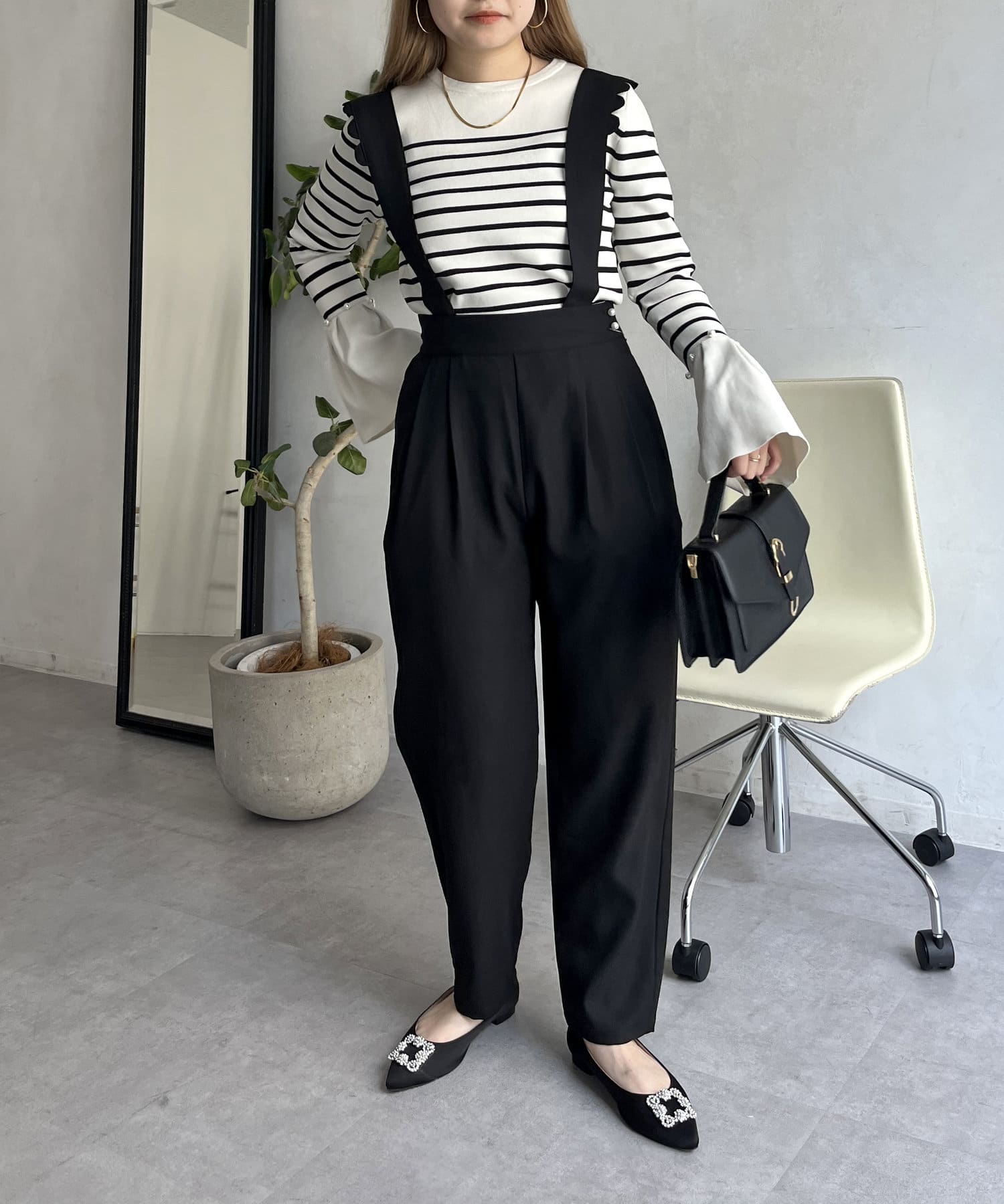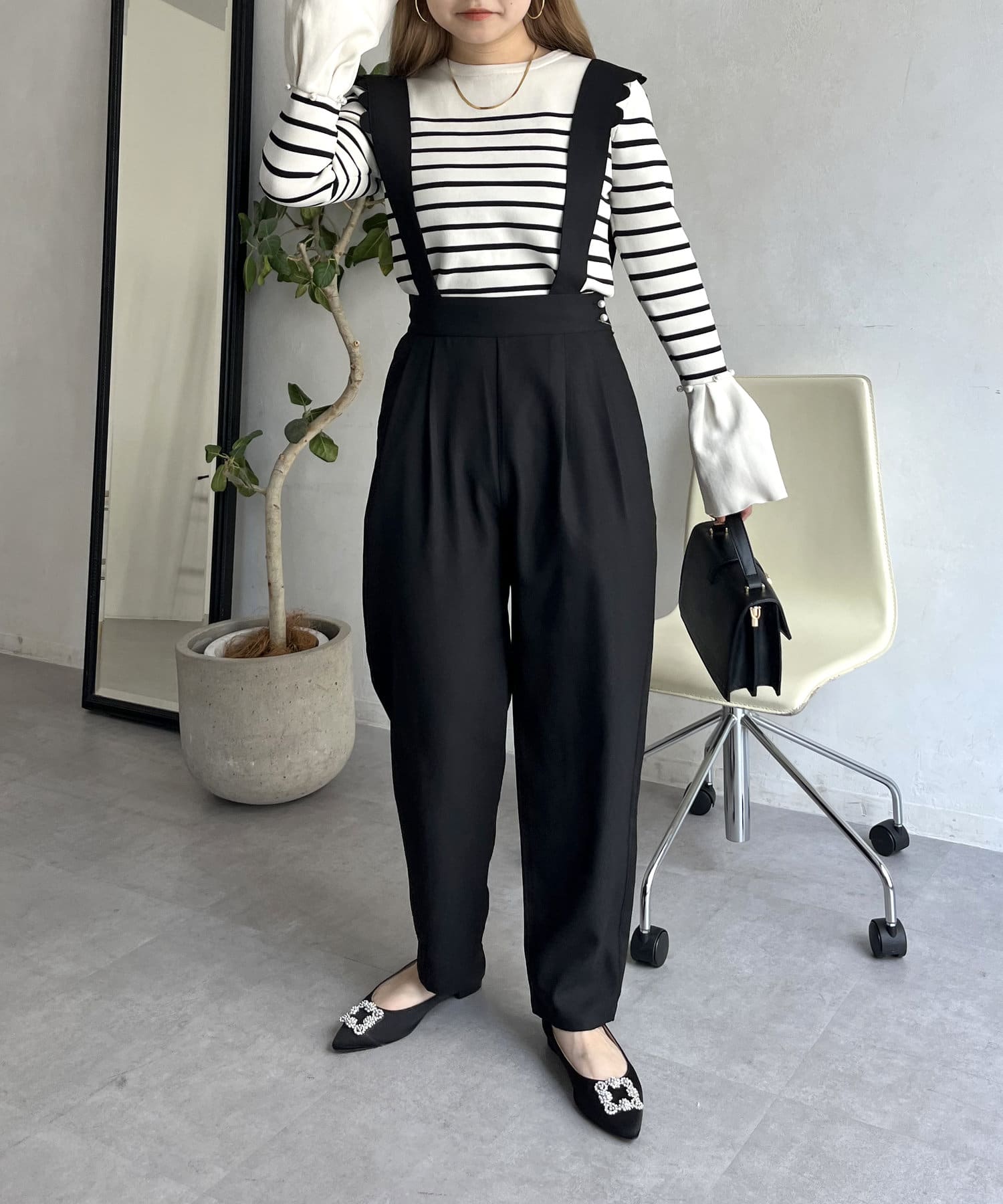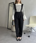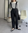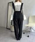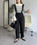 肩スカラップが大人可愛いサスペンダーテーパードパンツ