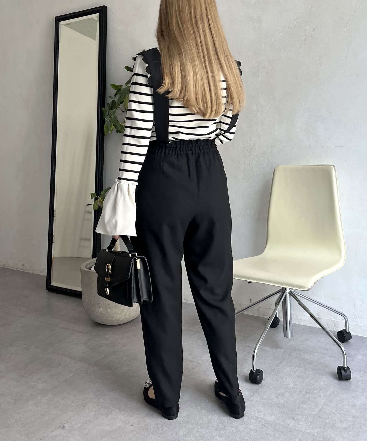スカラップサスペンダーテーパードパンツ