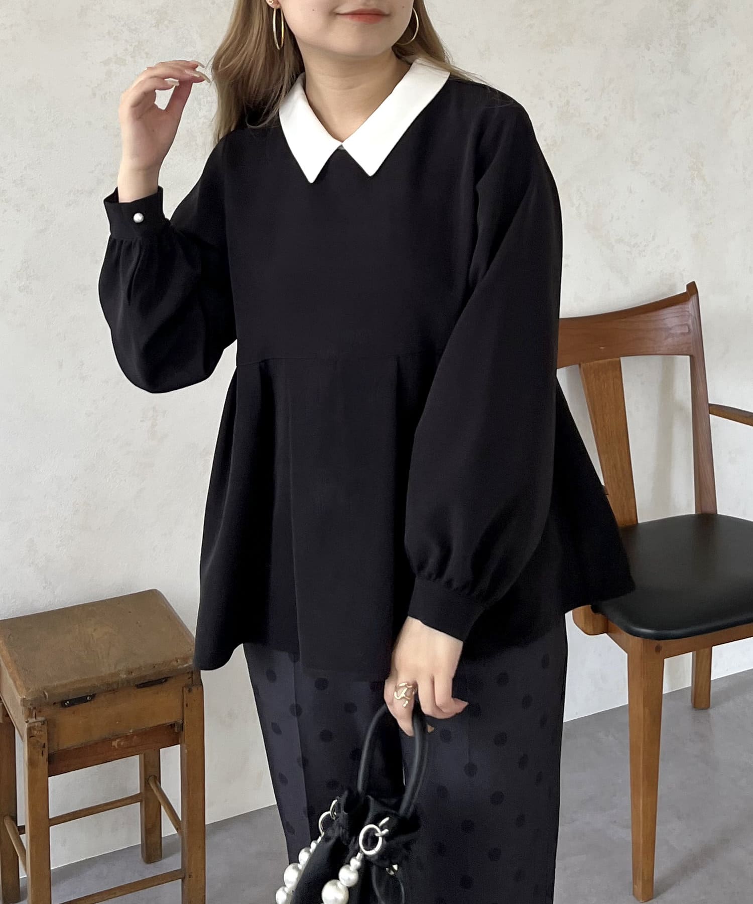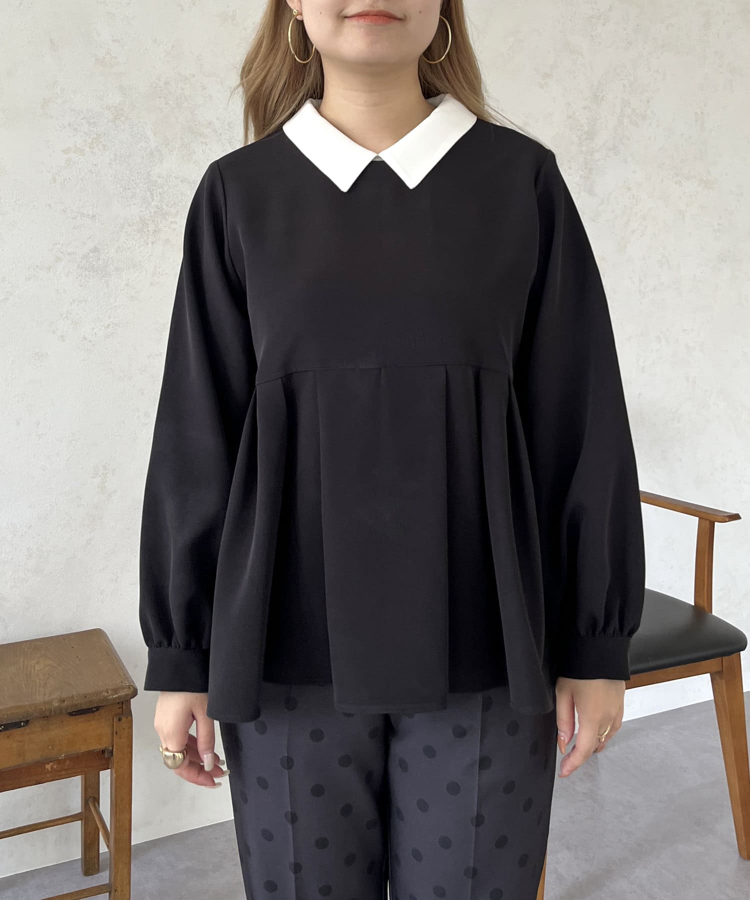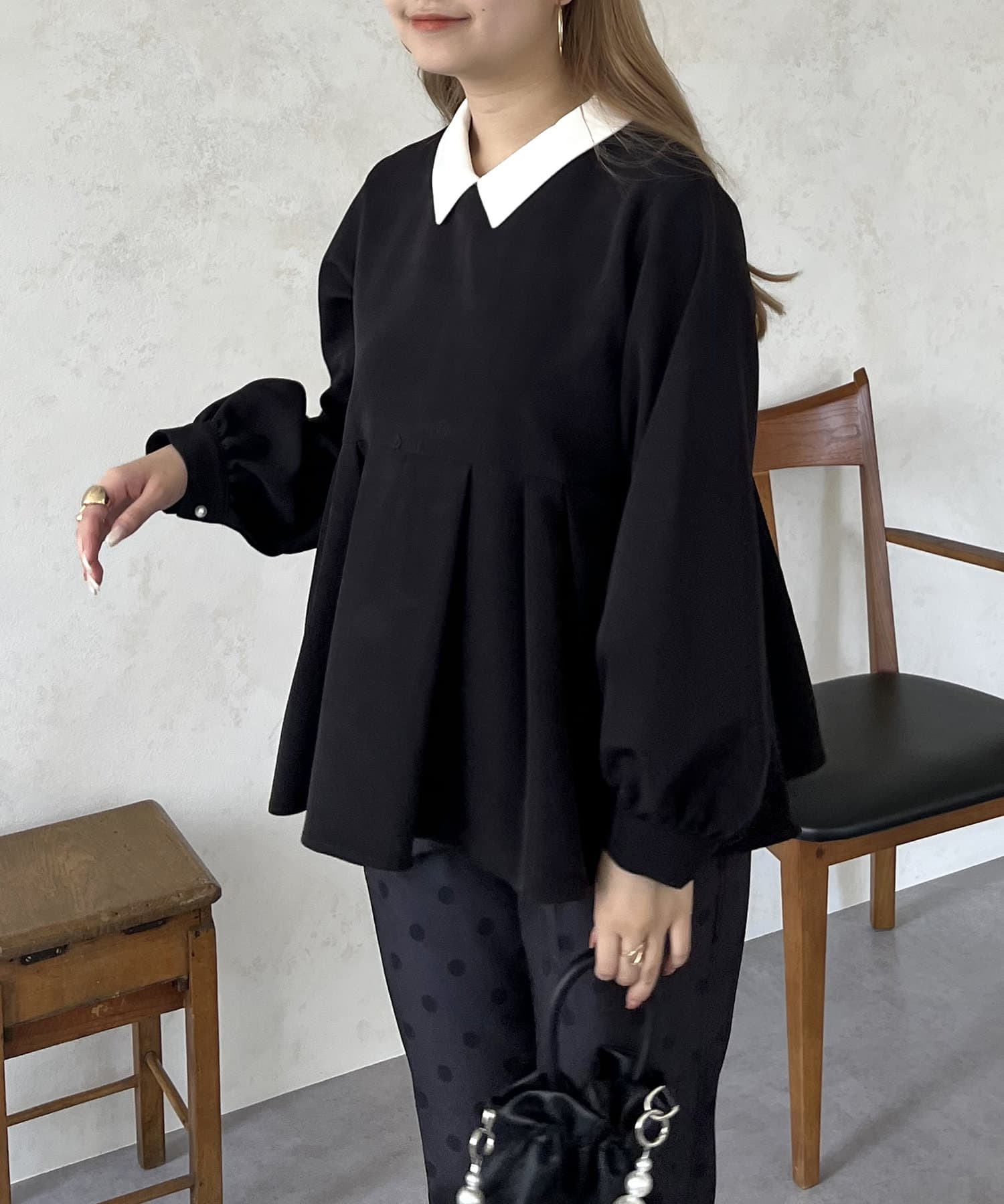 2WAYで楽しめる白襟ペプラムブラウス