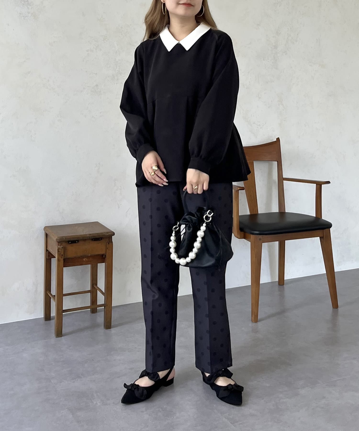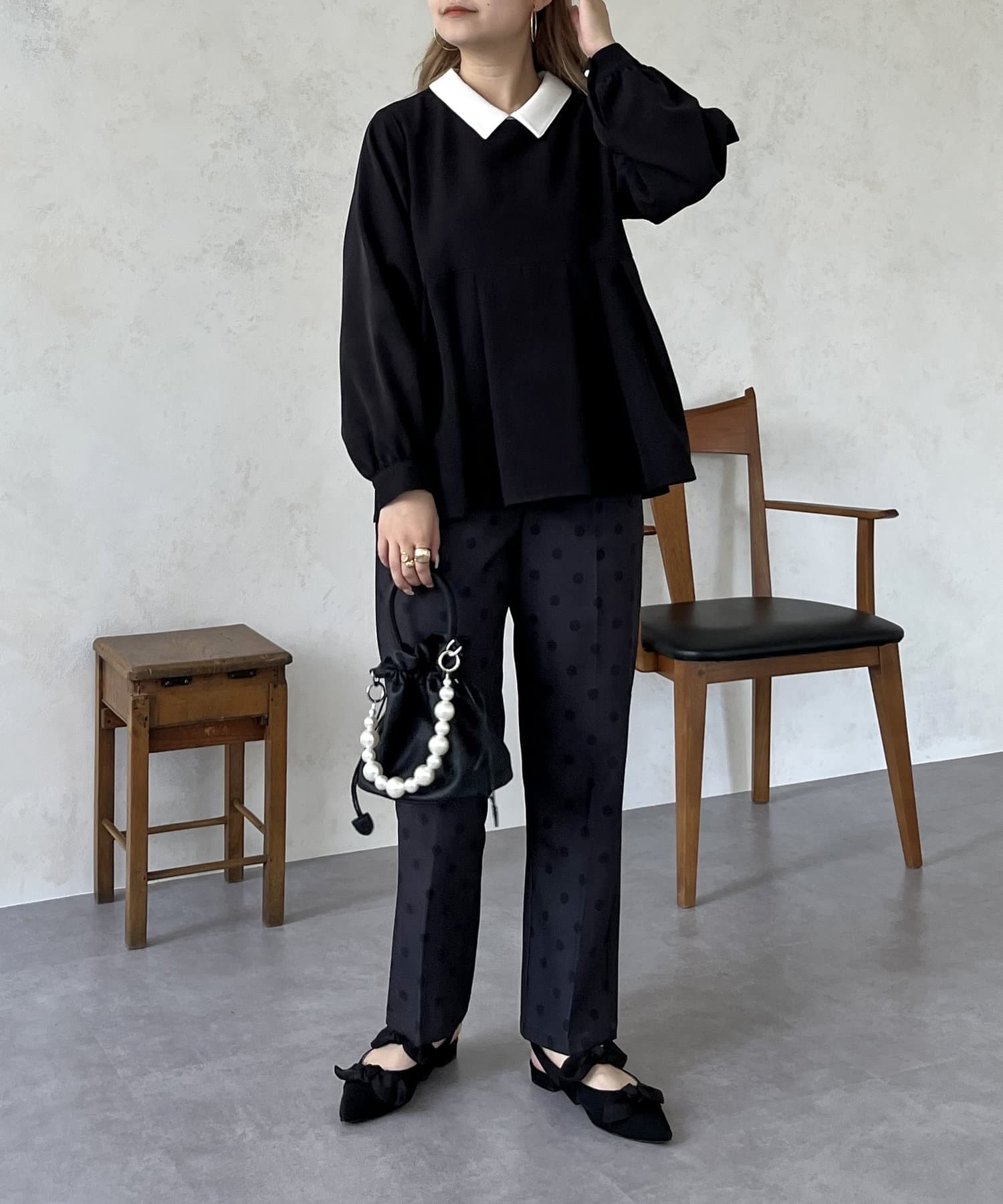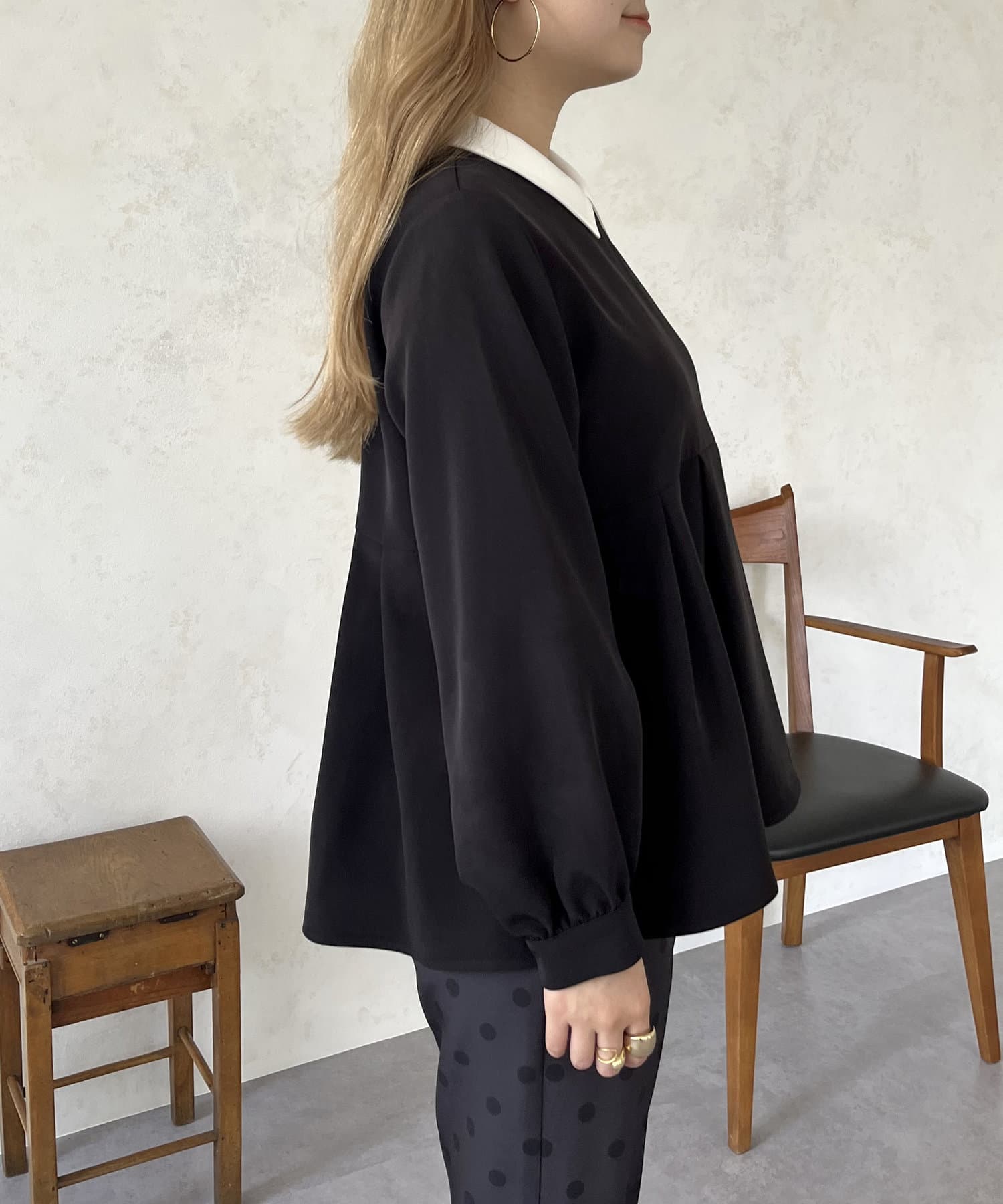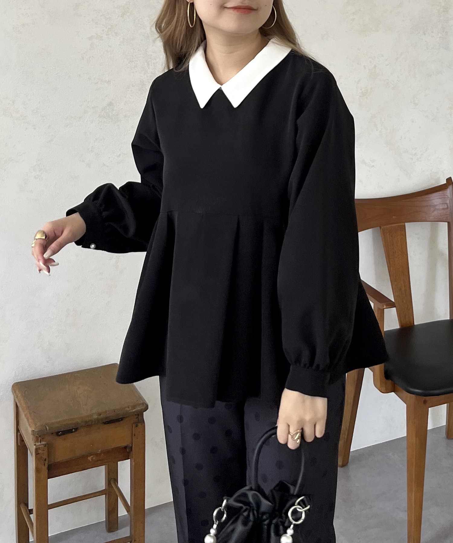 2WAYで楽しめる白襟ペプラムブラウス
