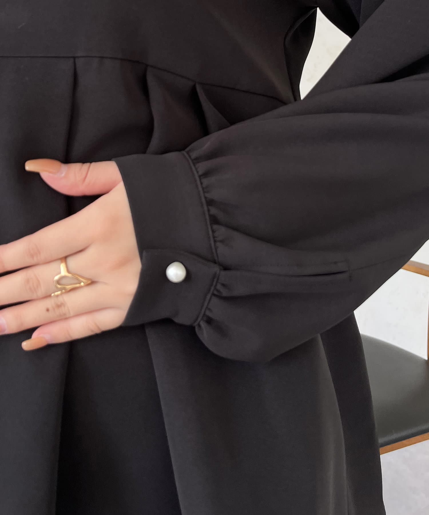 ●袖口のボタンがパールになっているのもポイント
