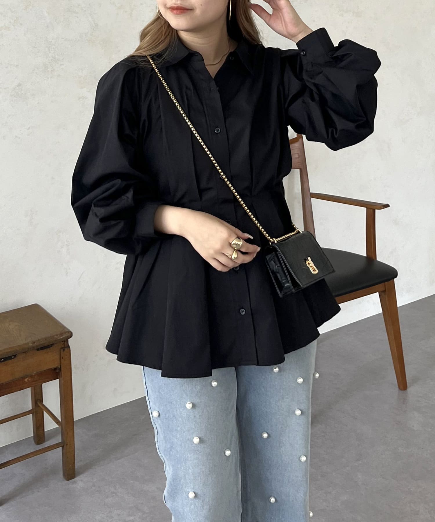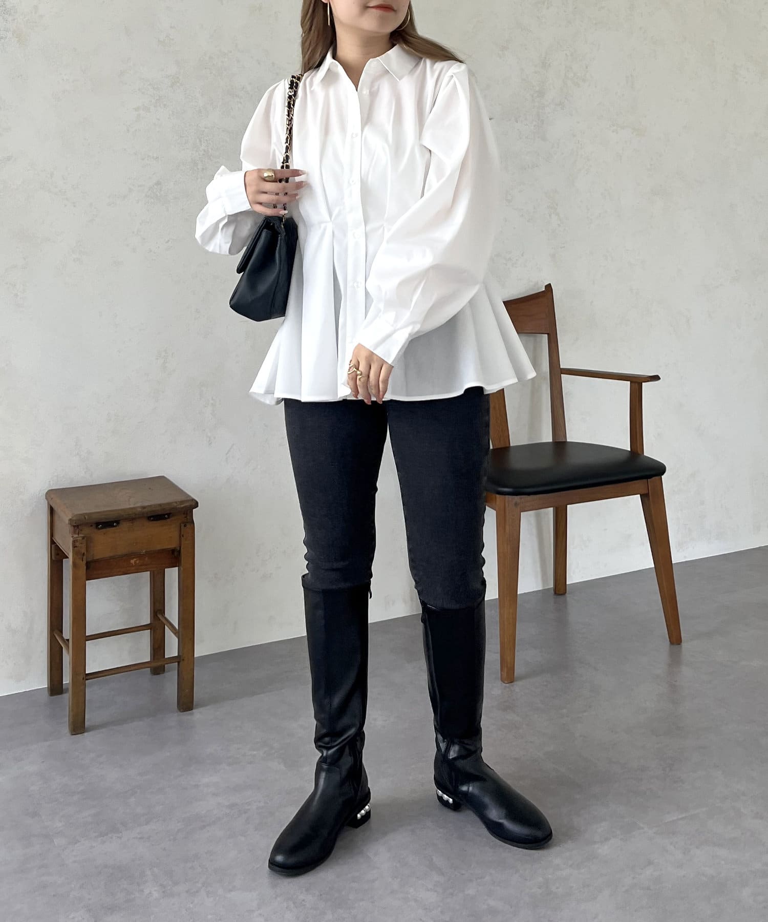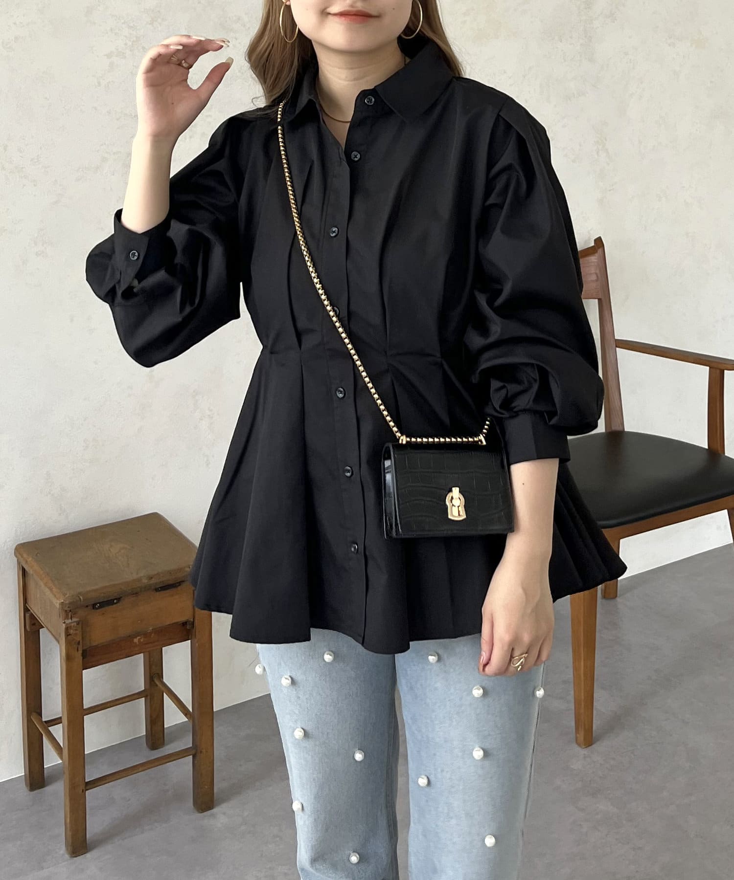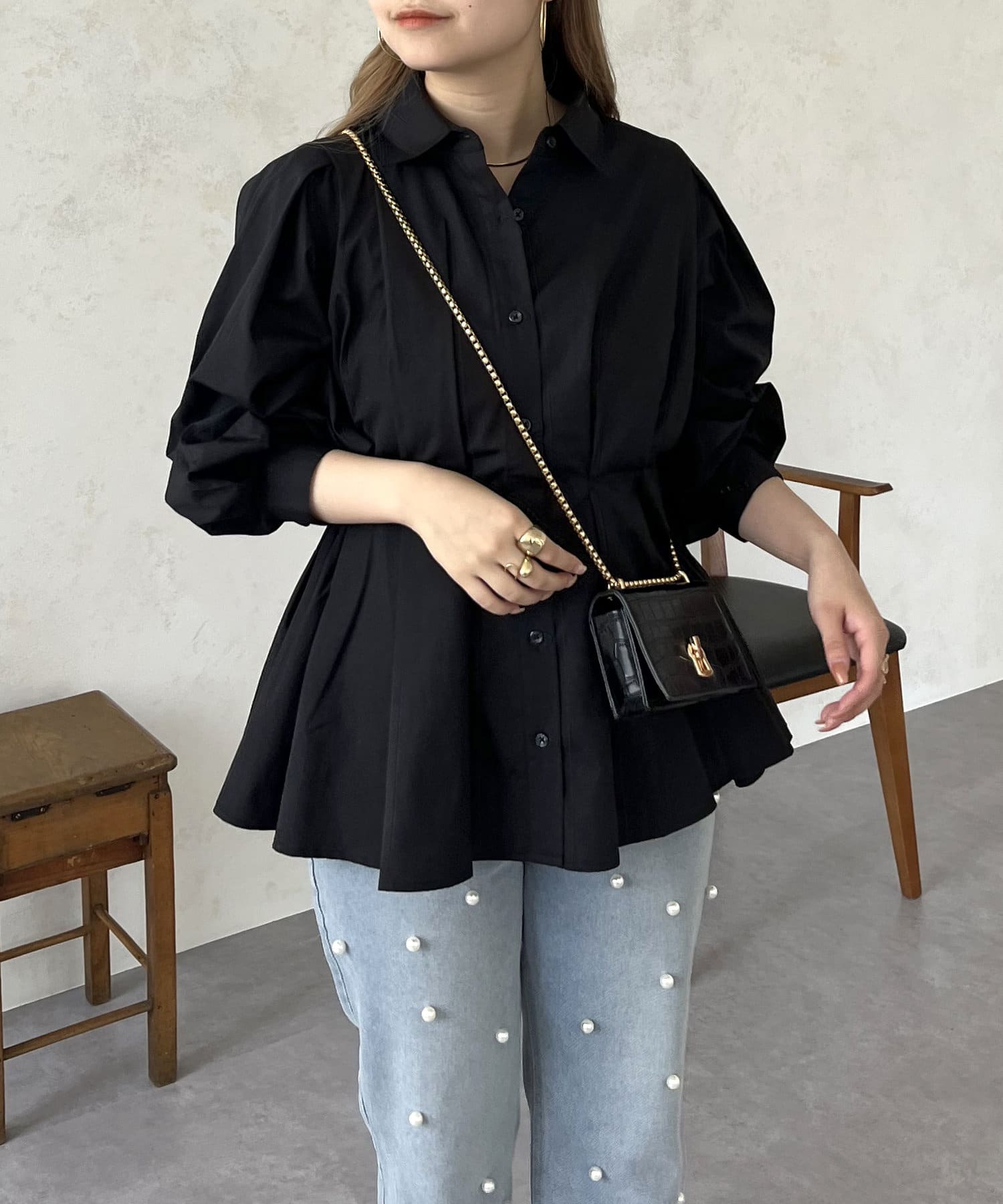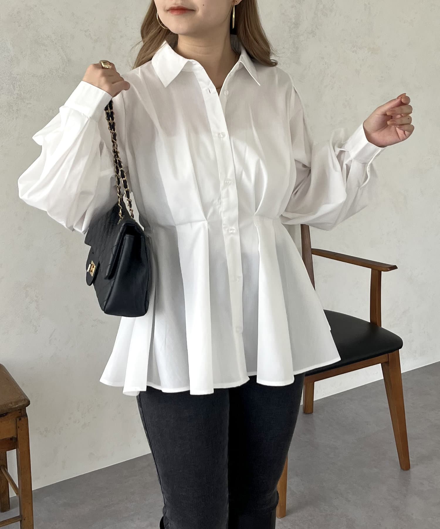 ●シャツでカチッと感でペプラムで女性らしさをプラスしたアイテム