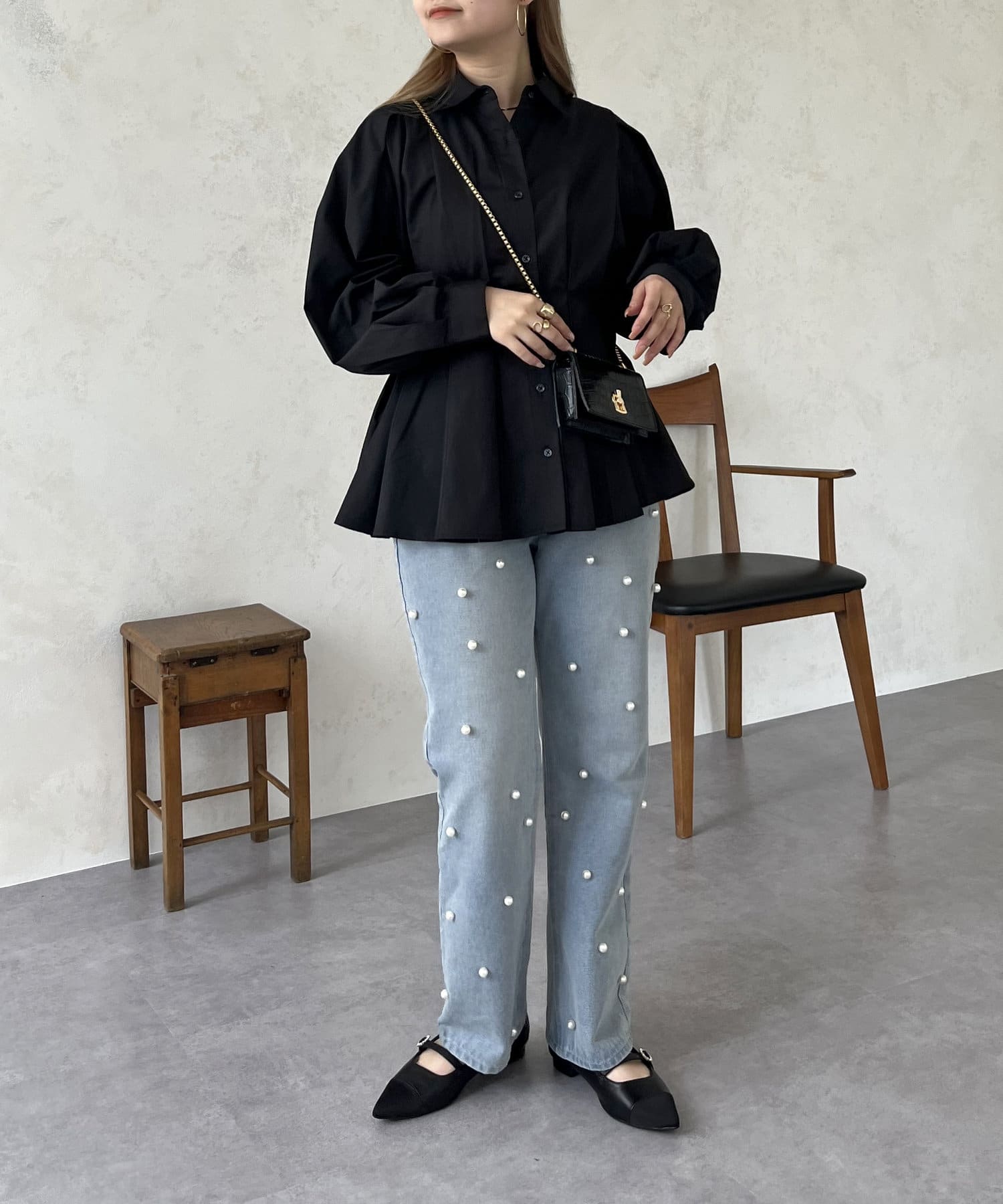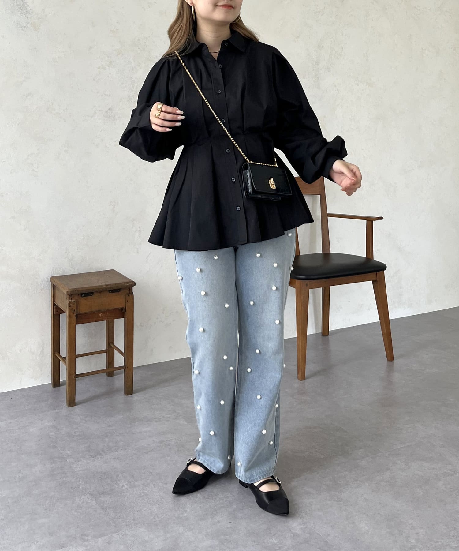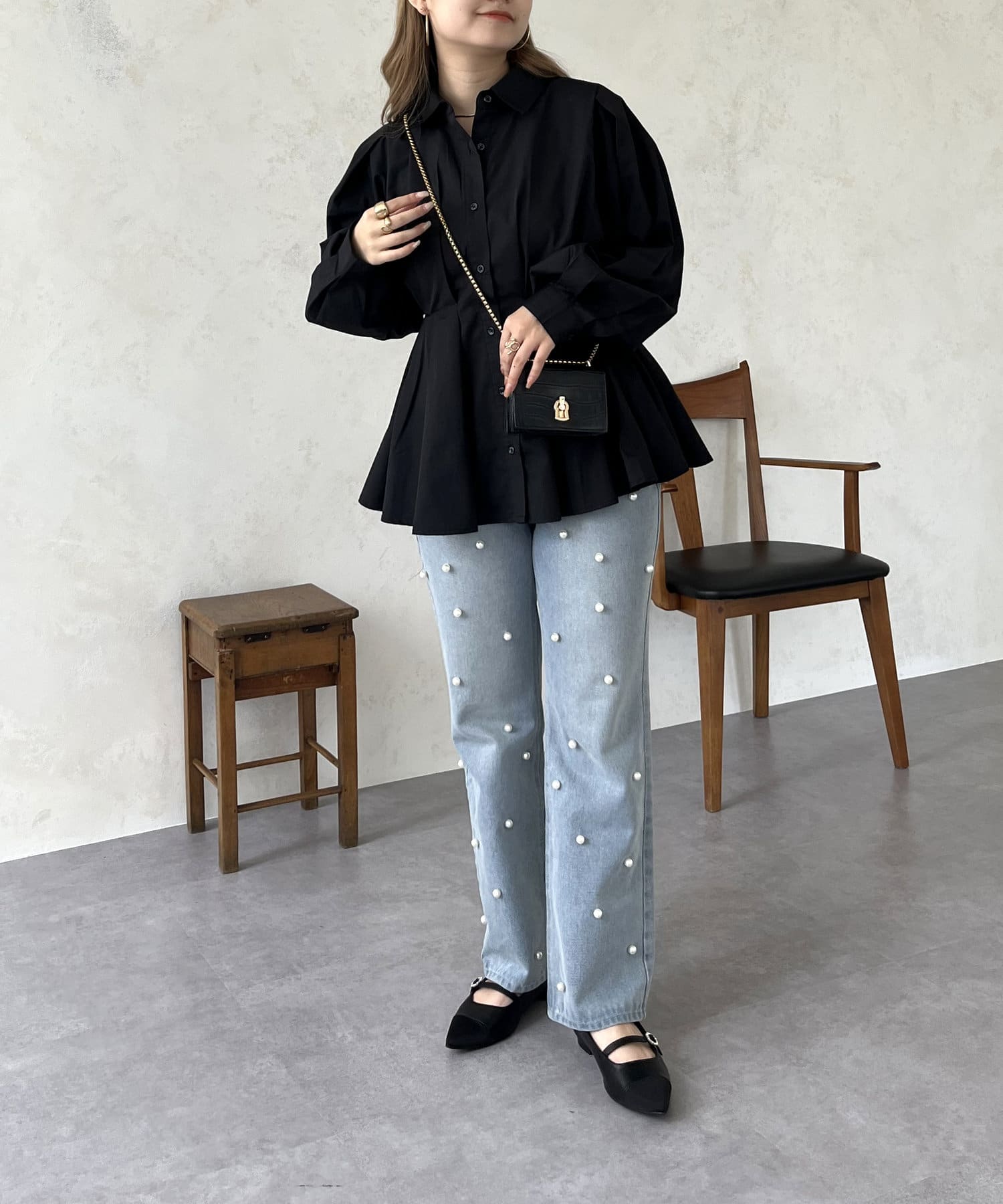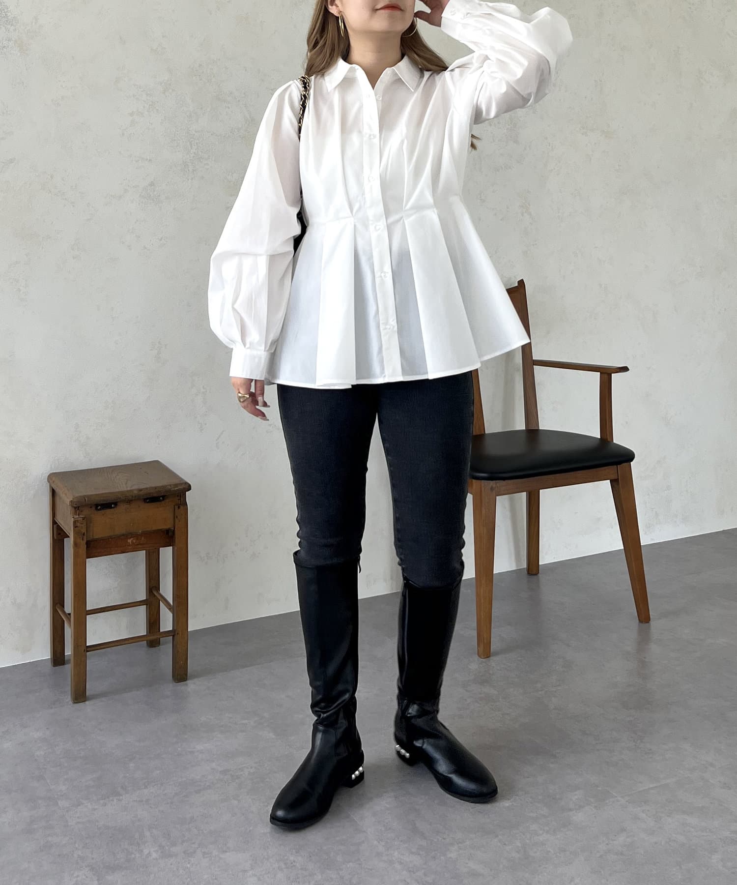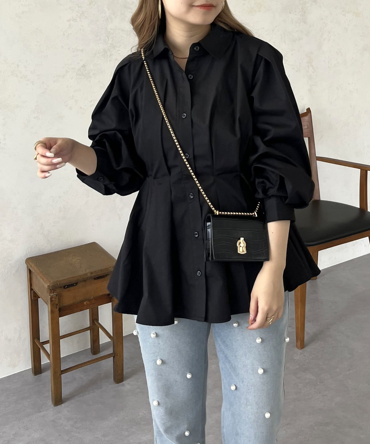 ●シャツでカチッと感でペプラムで女性らしさをプラスしたアイテム