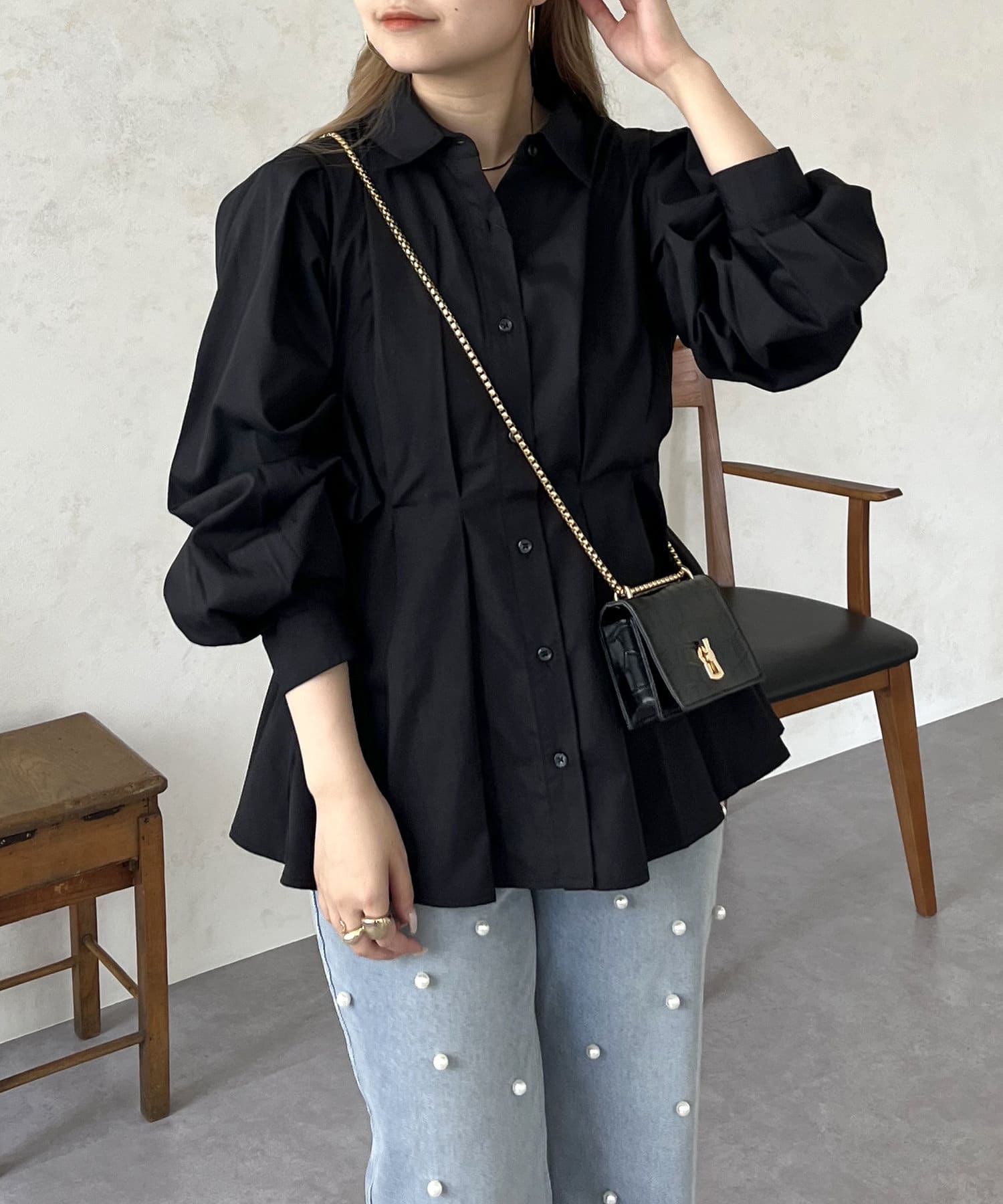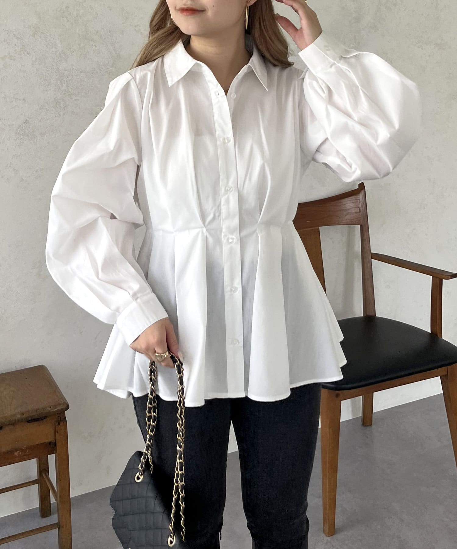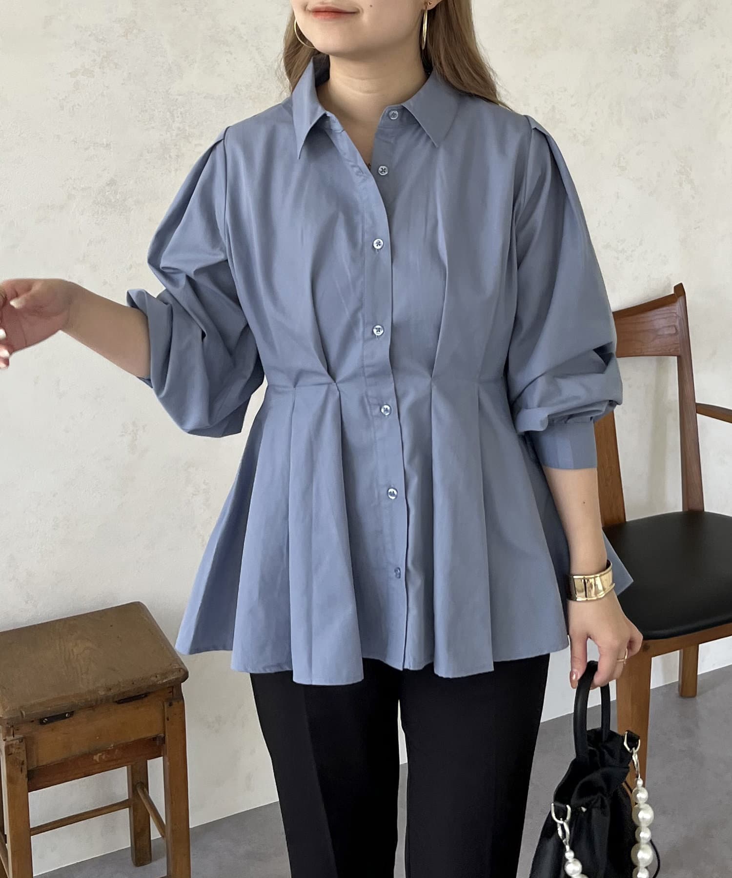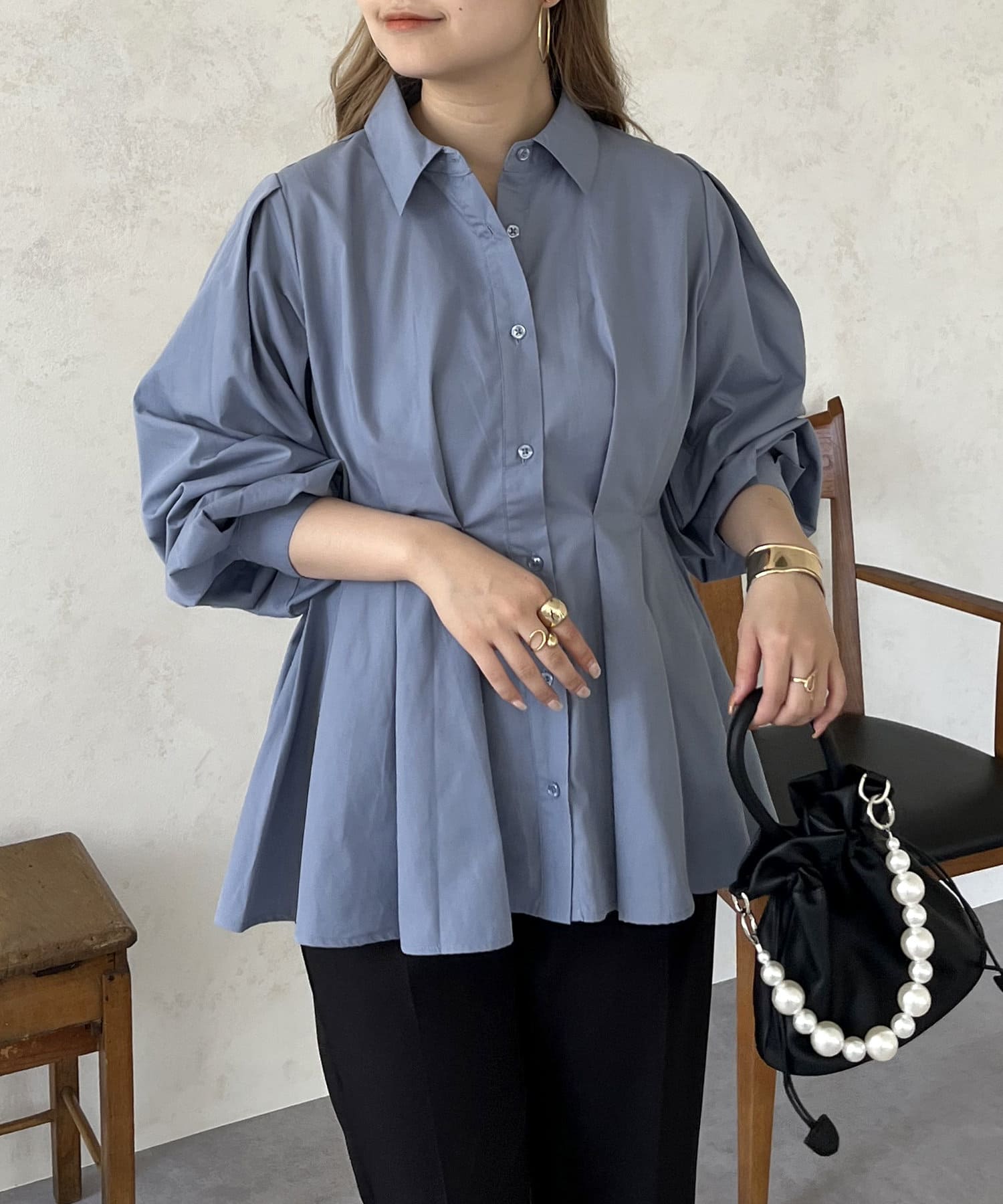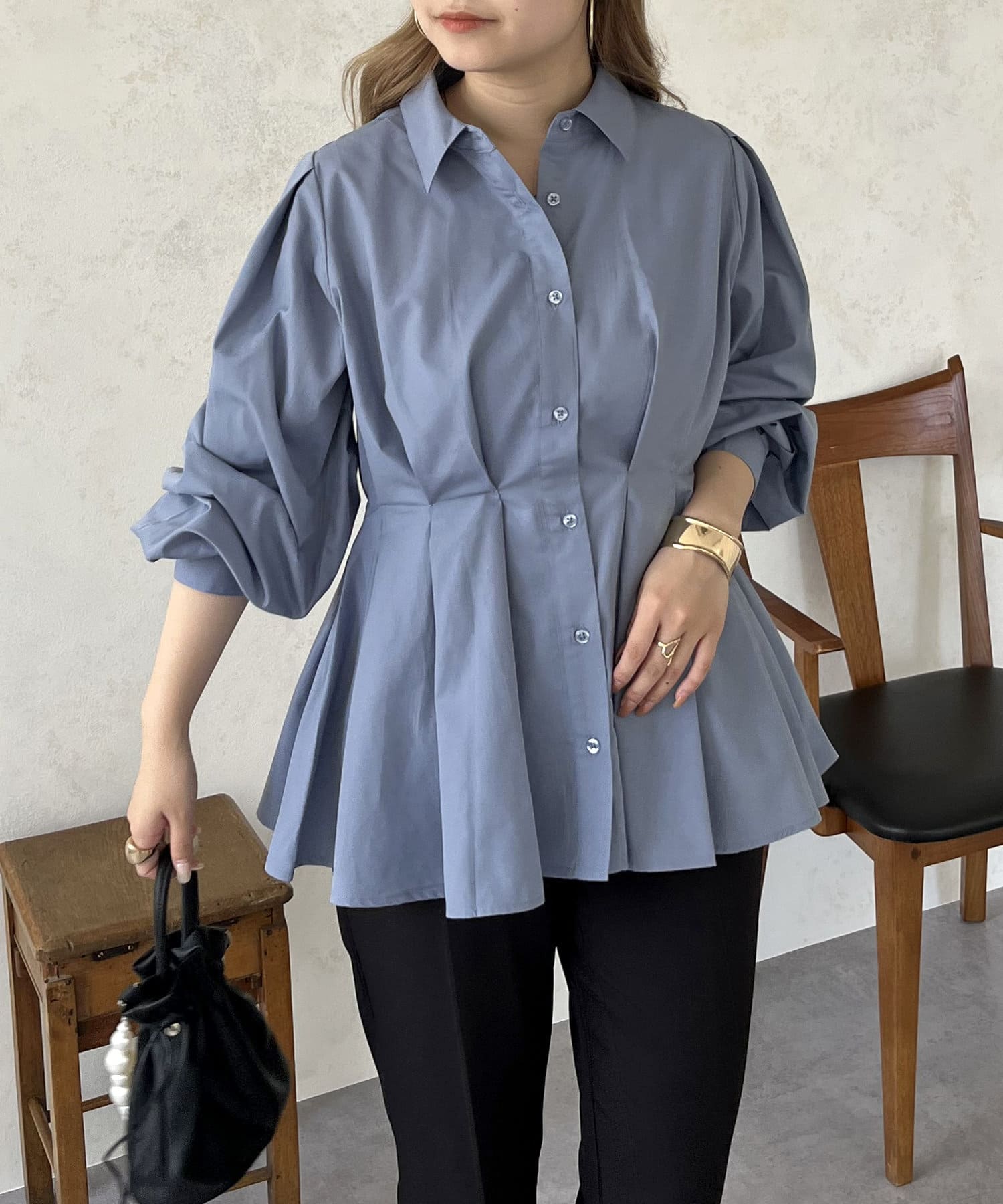 ペプラム/ブラウス /ペプラムブラウス/ 袖ボリューム/タック /大人キレイめカジュアル/