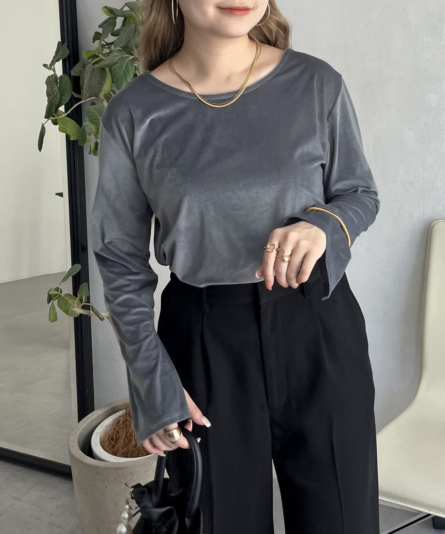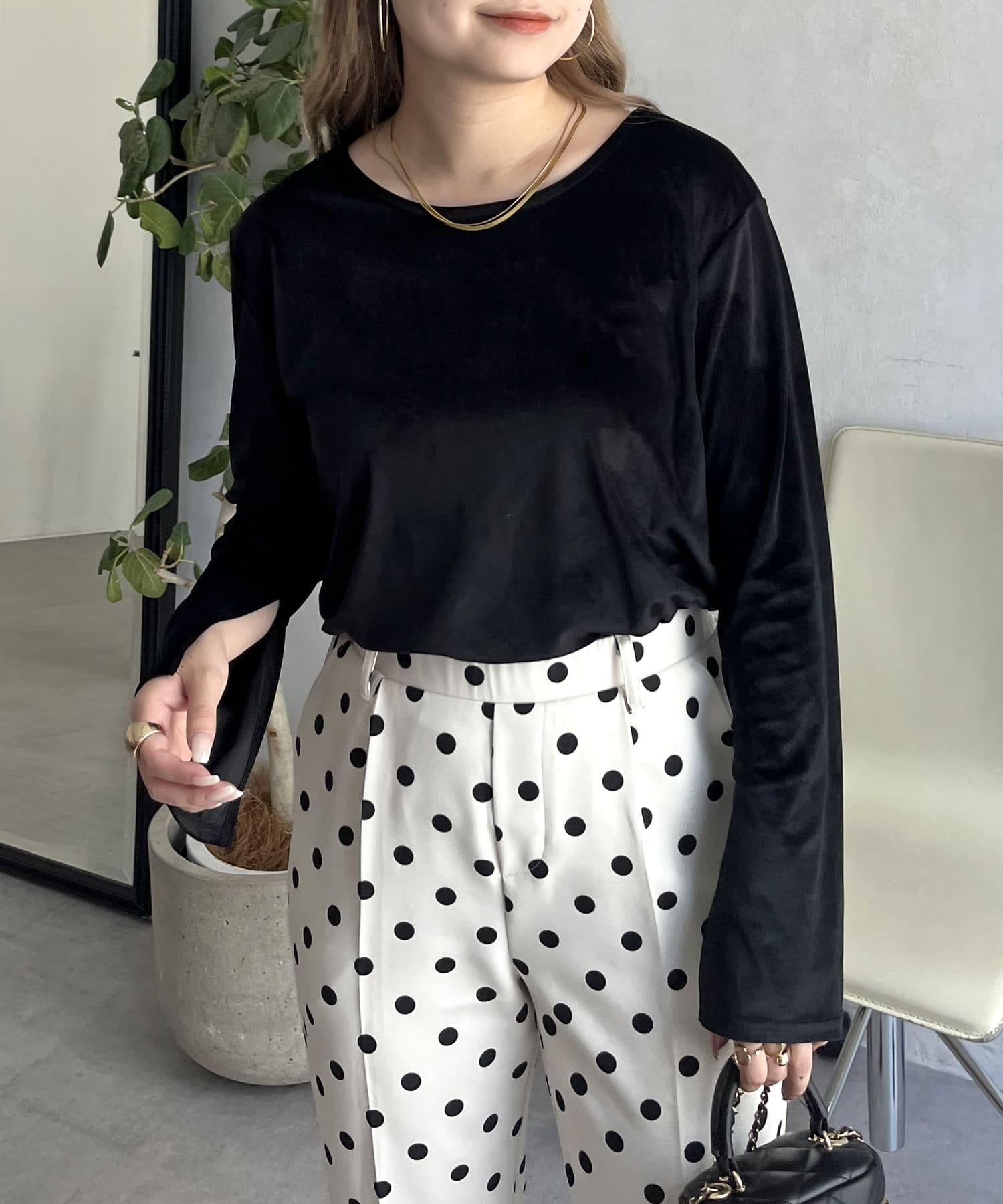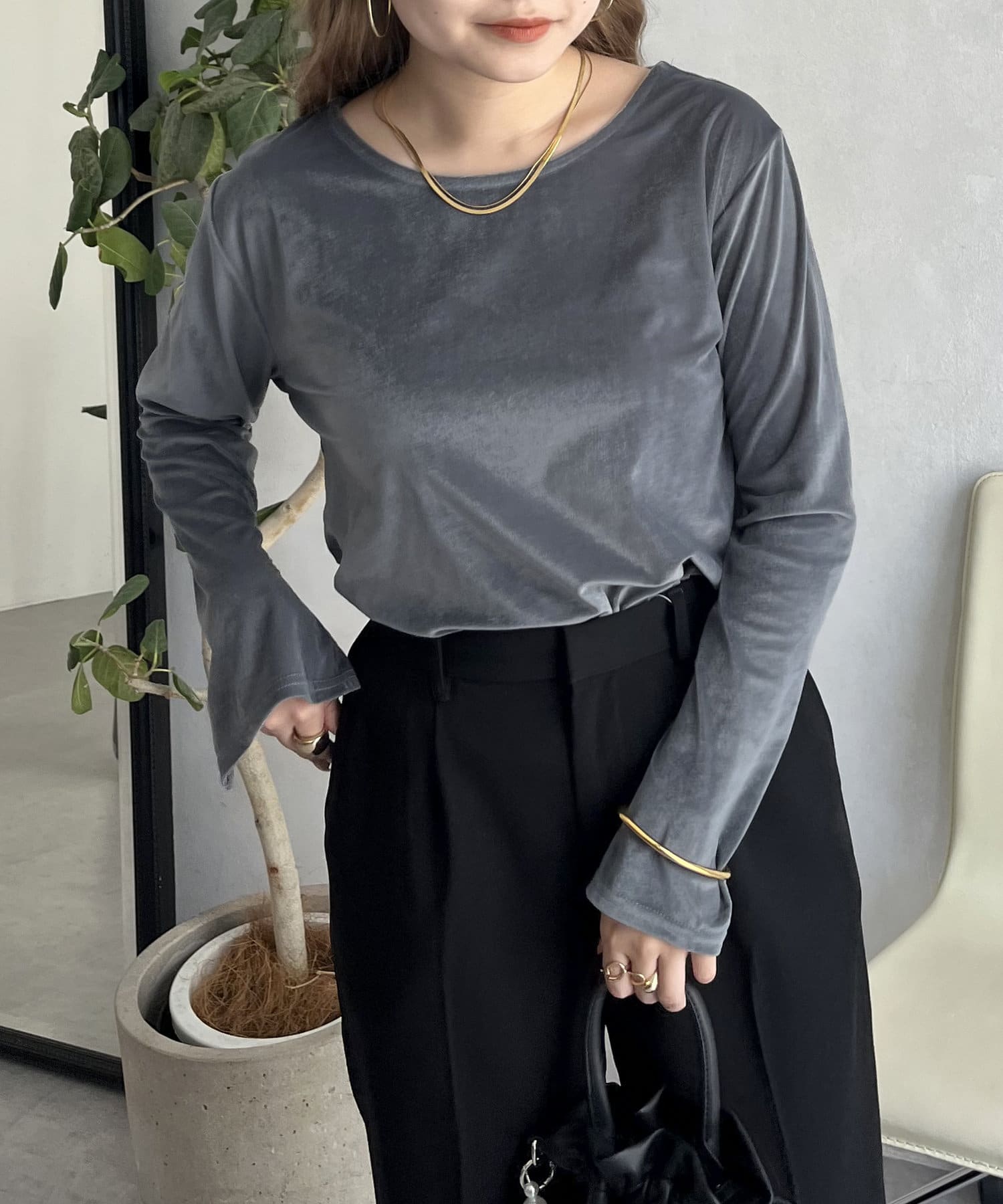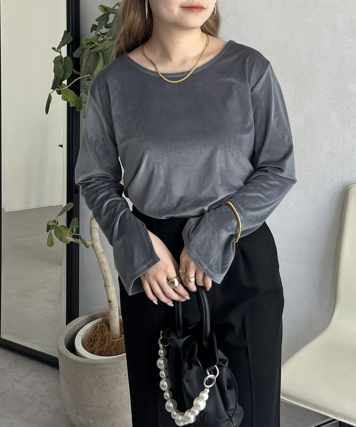 カットソー/ベロア/ボートネック/ 袖スリット /上品見え