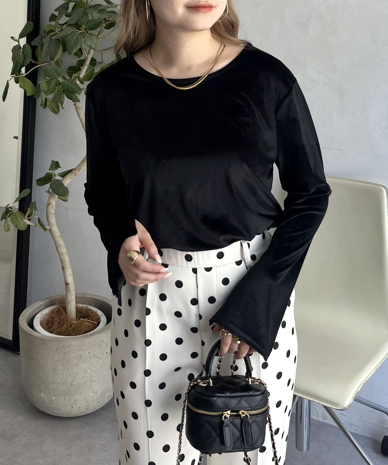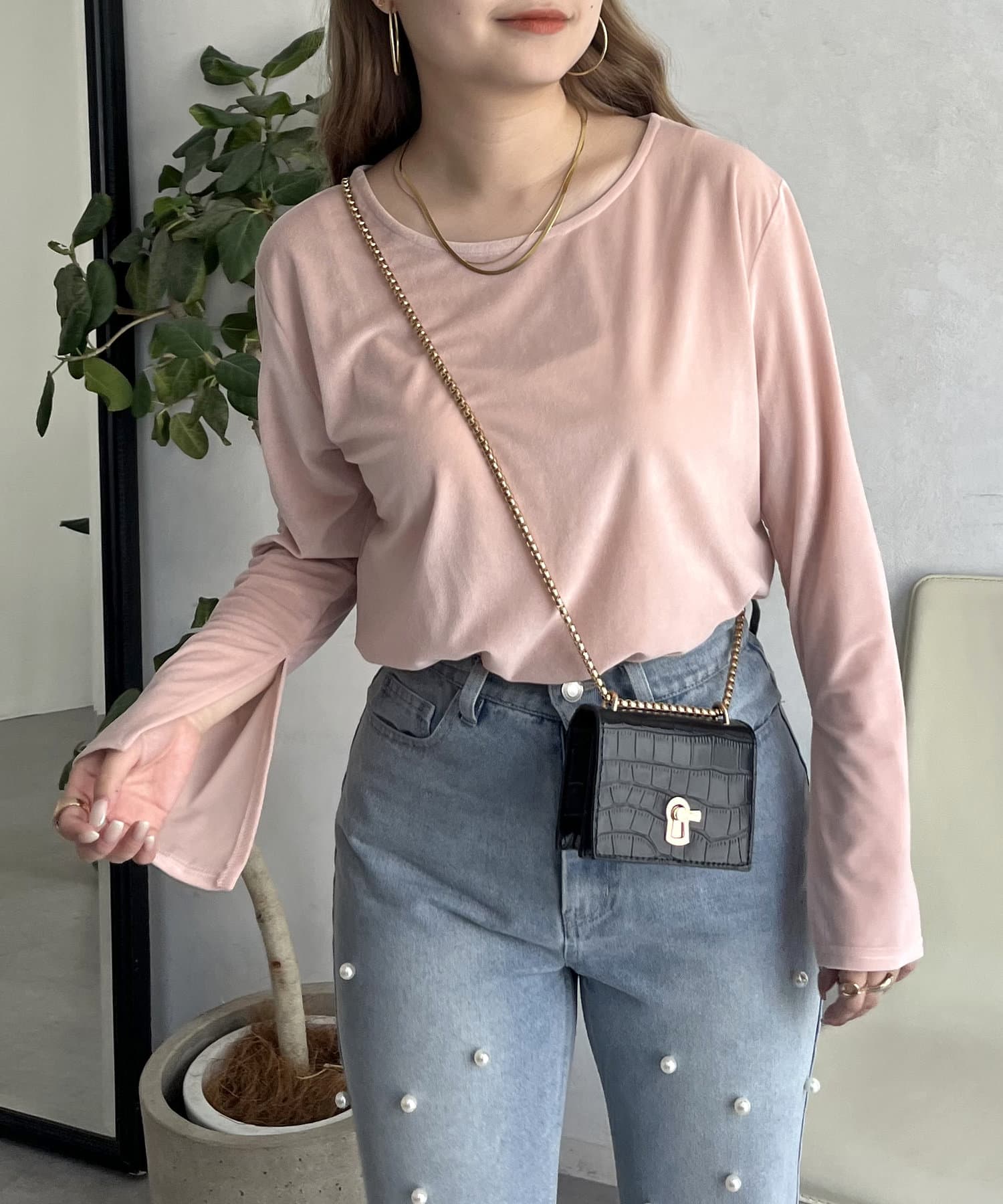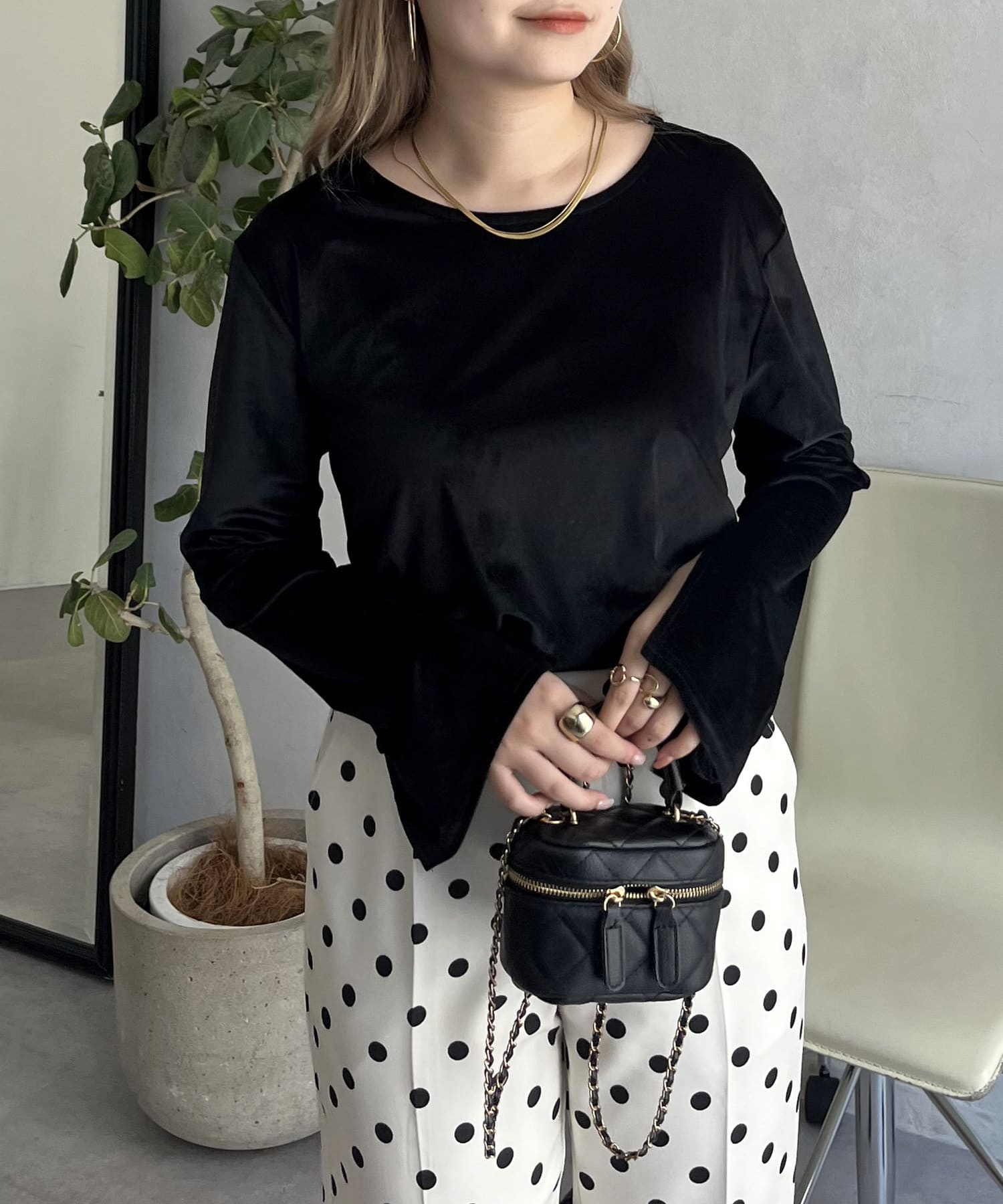 カットソー/ベロア/ボートネック/ 袖スリット /上品見え