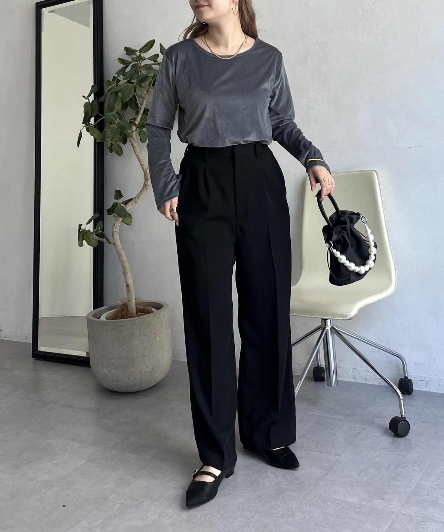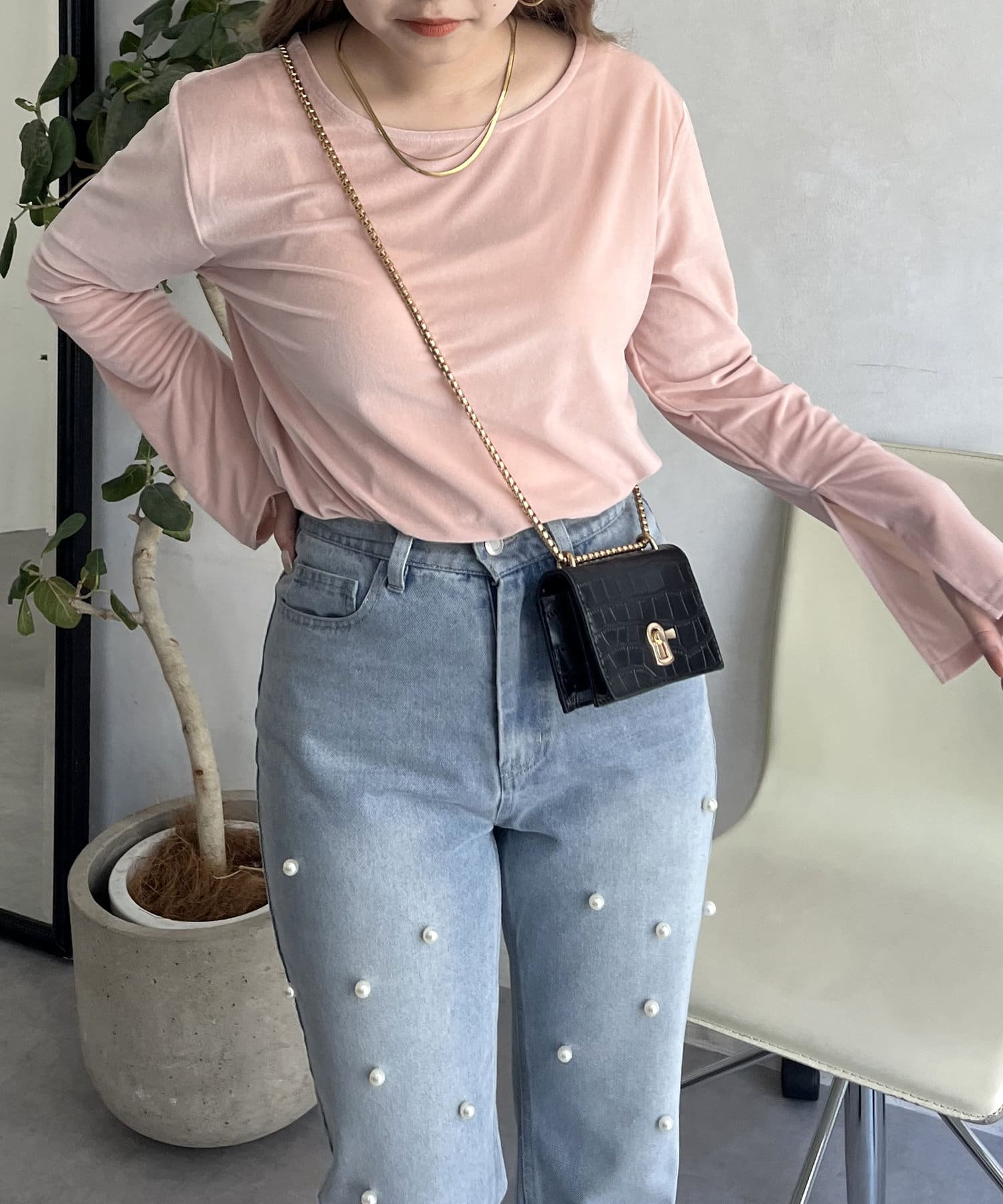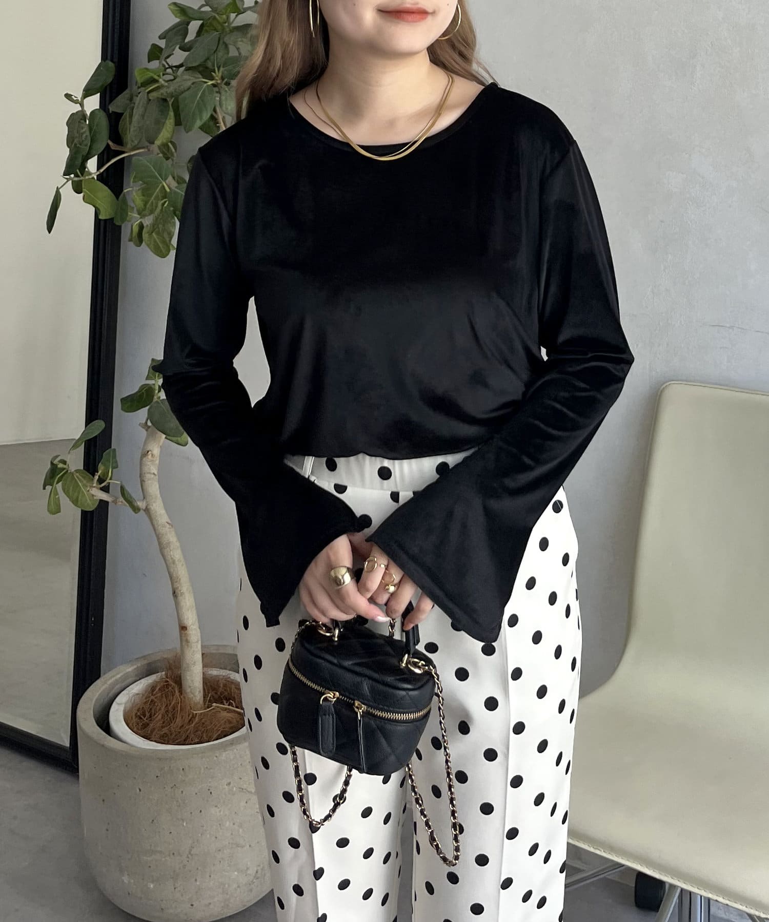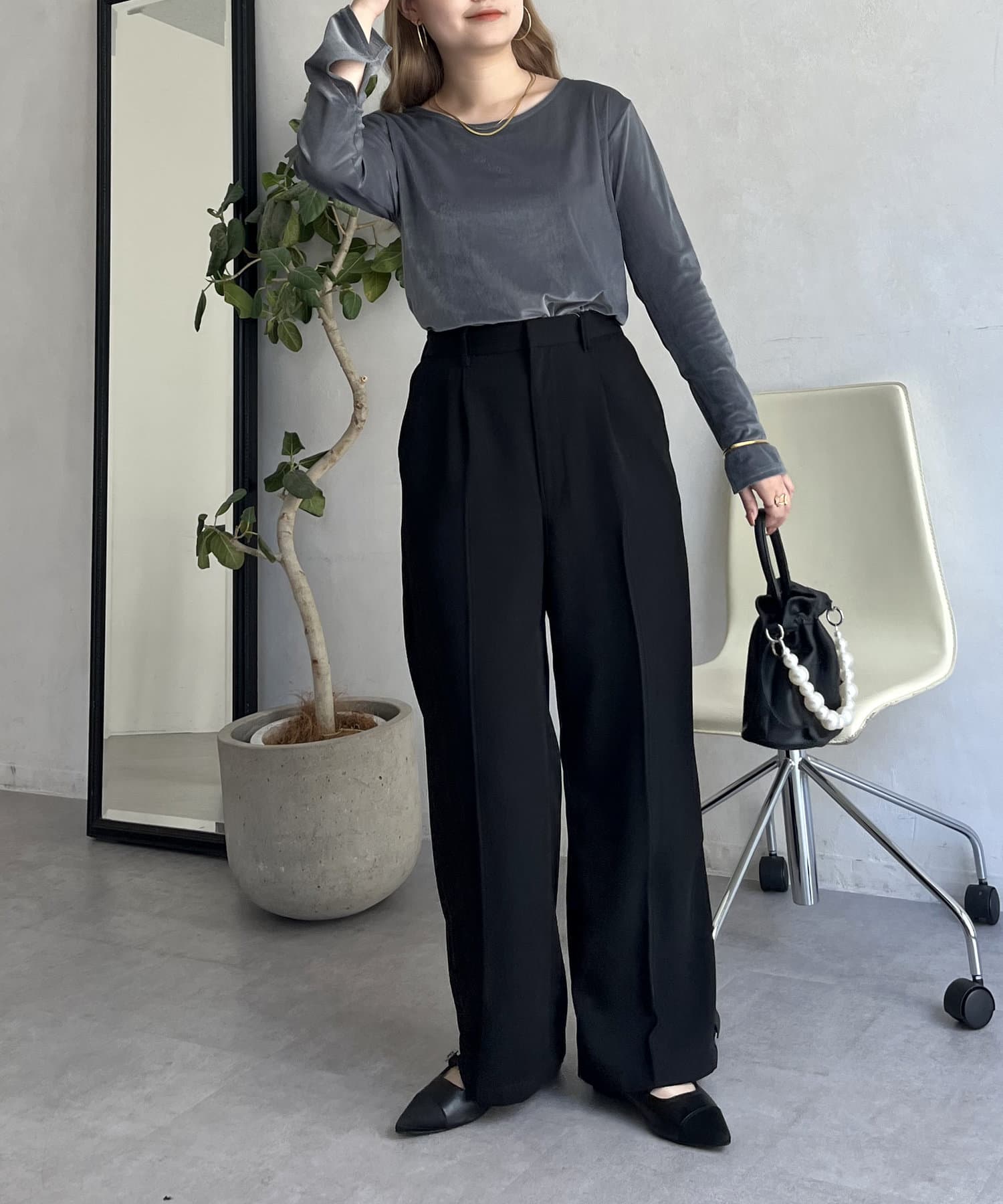 カットソー/ベロア/ボートネック/ 袖スリット /上品見え