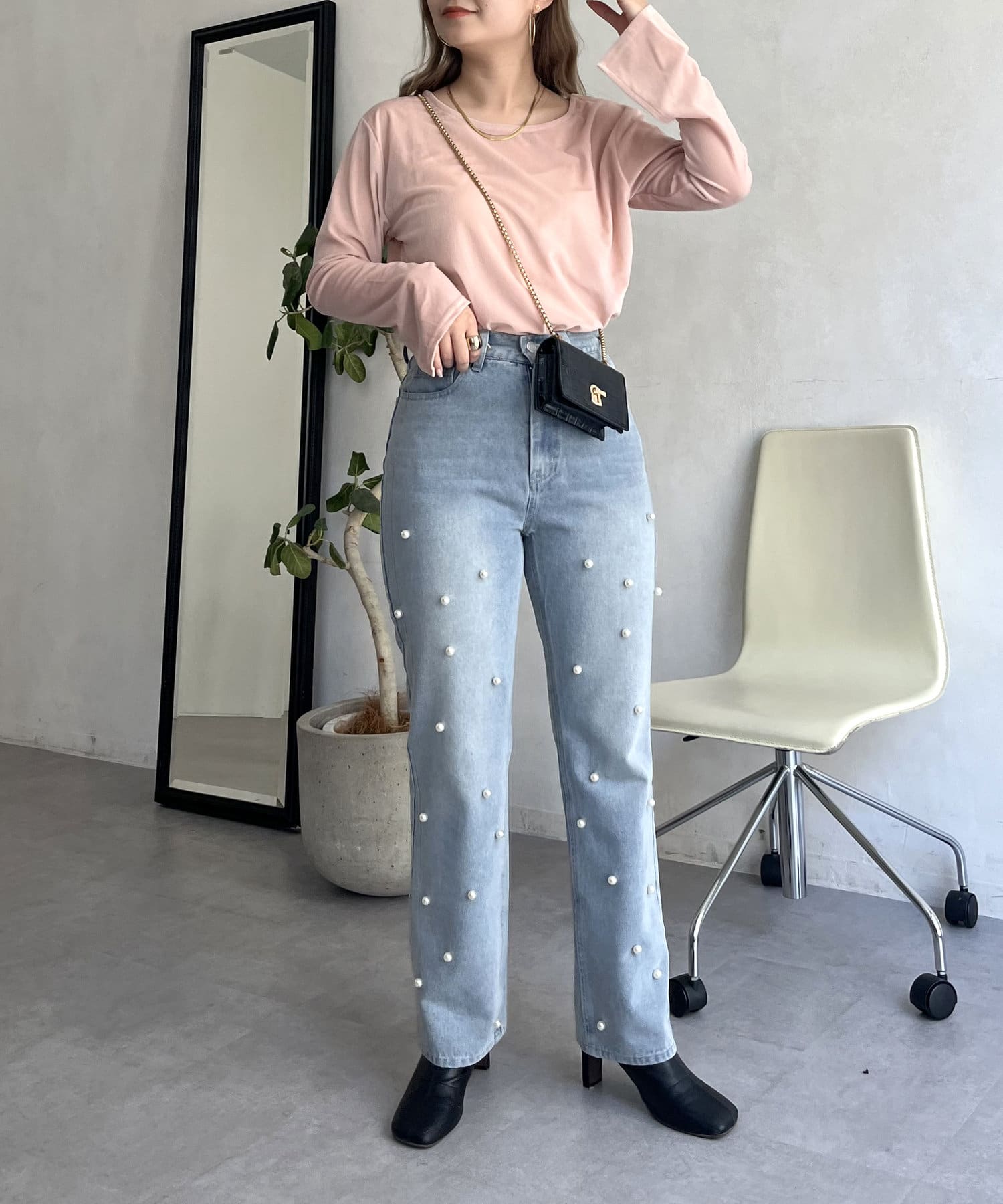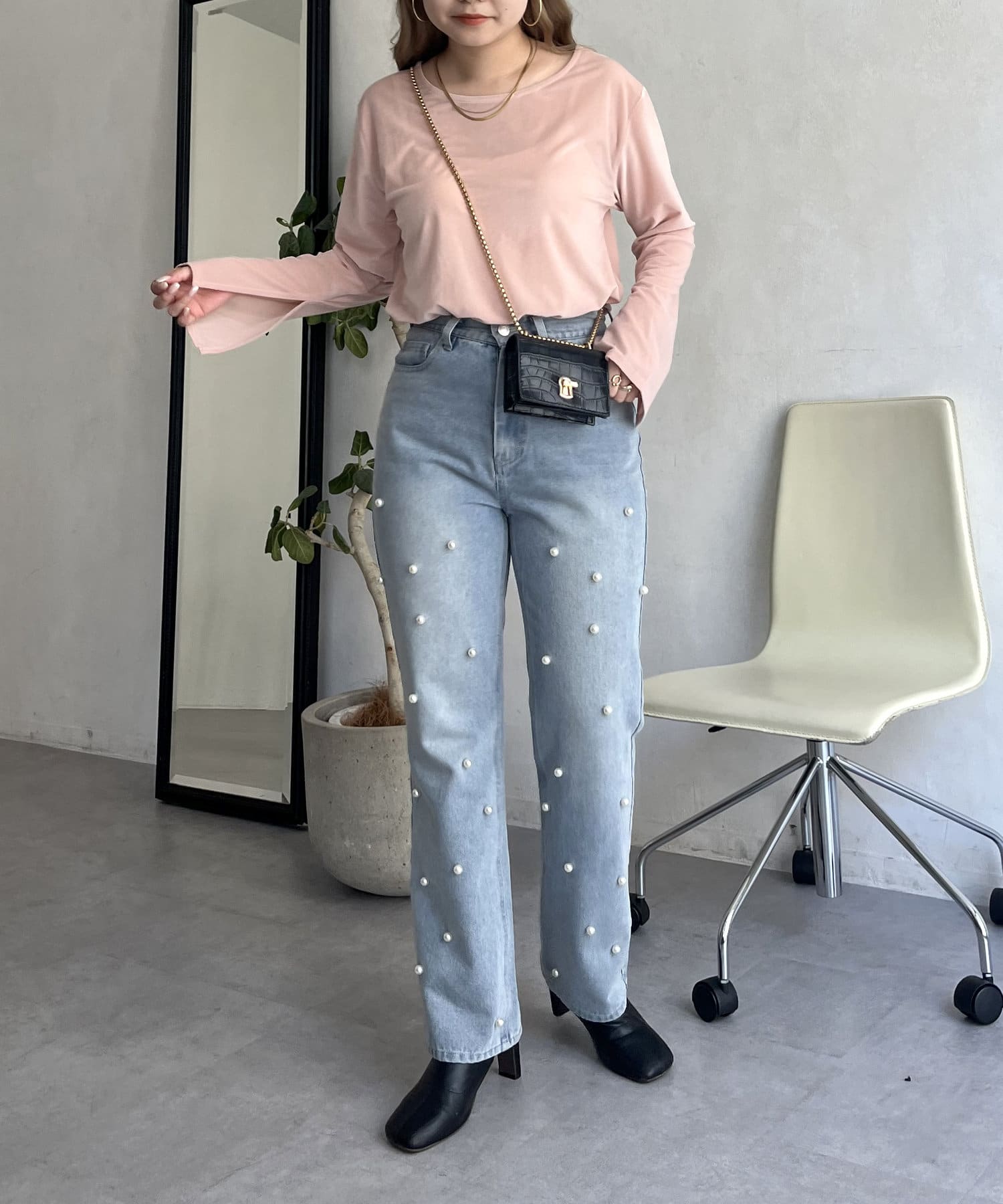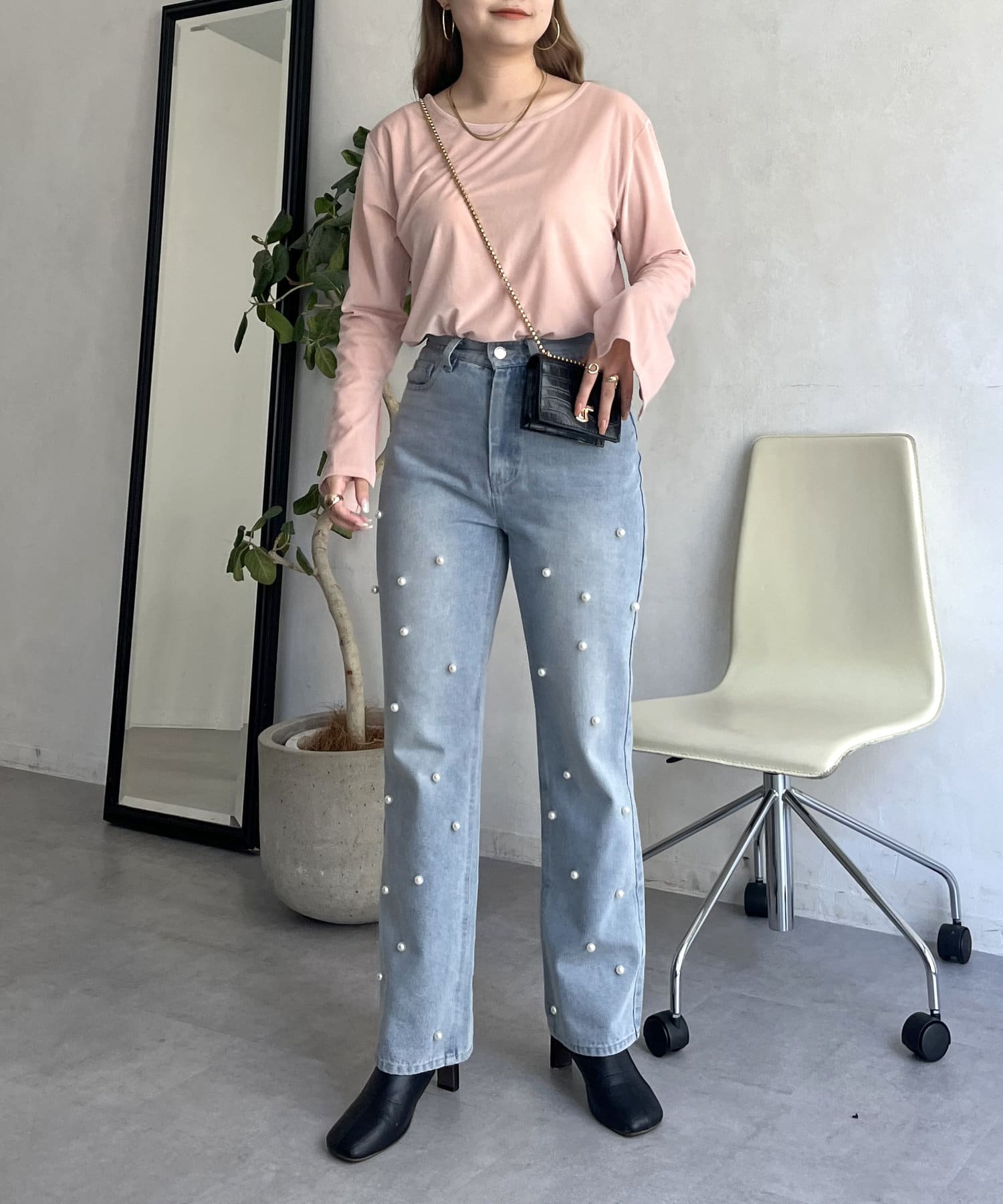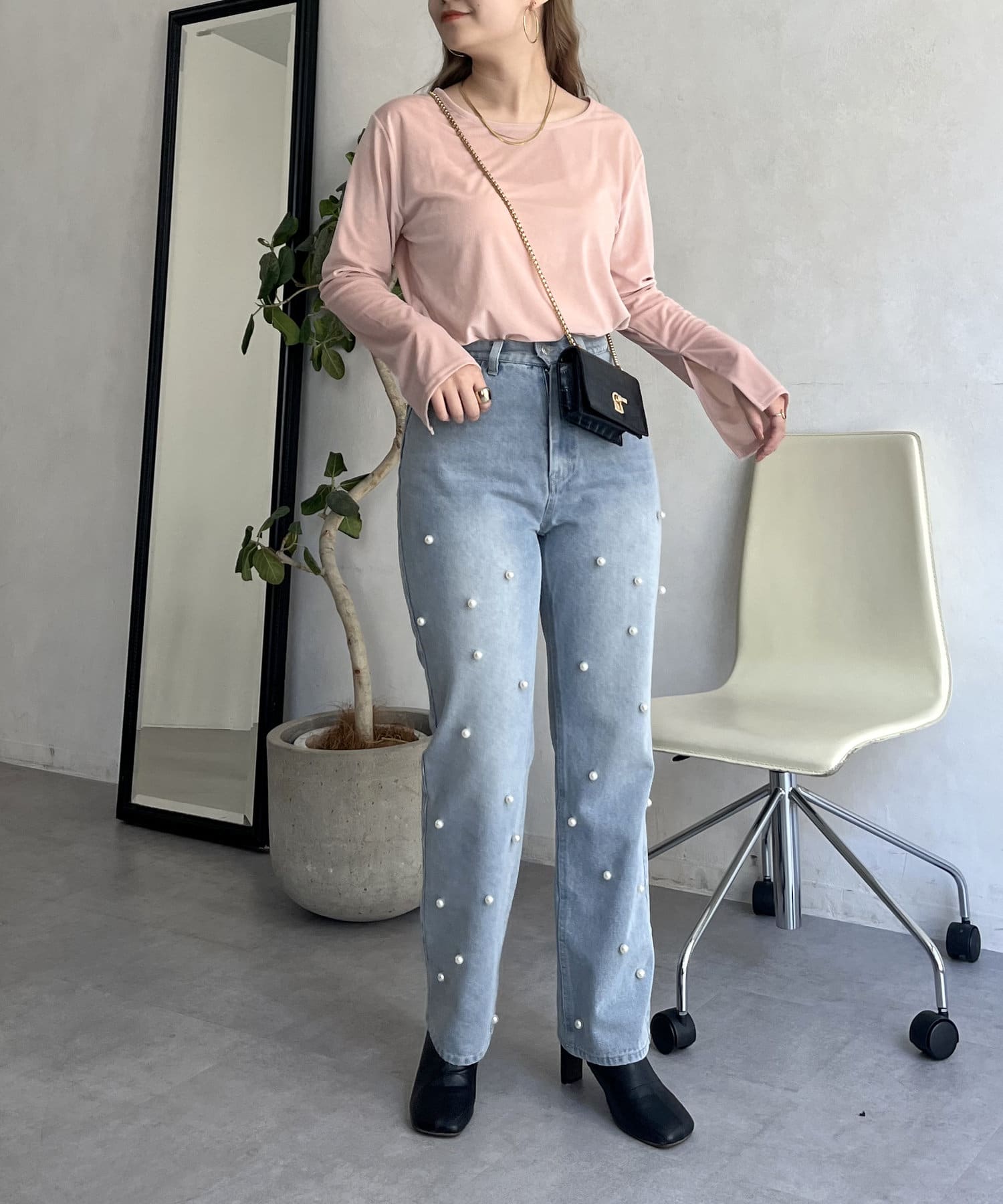 ●ボートネックなので狭すぎず顔周りもスッキリ見せてくれます