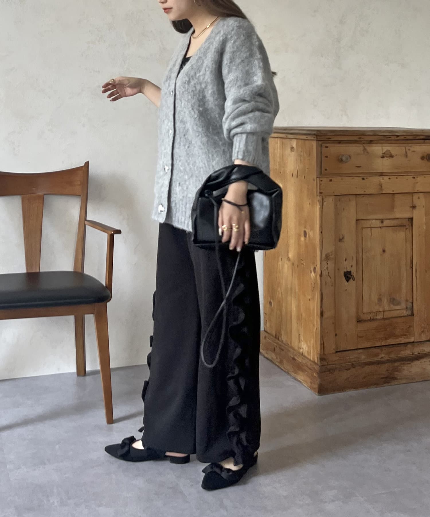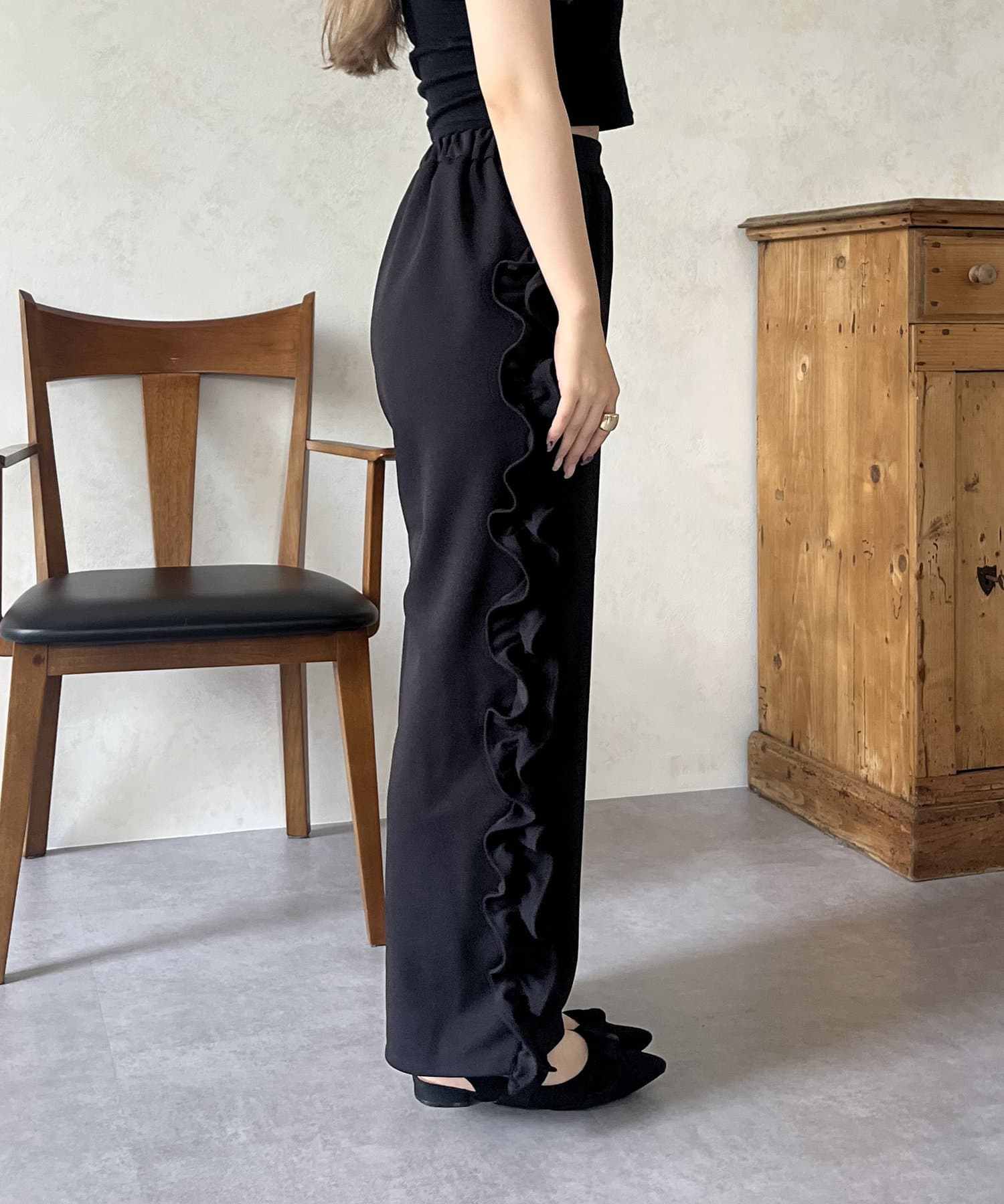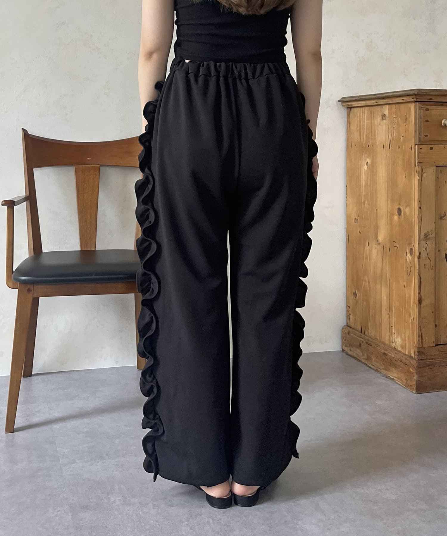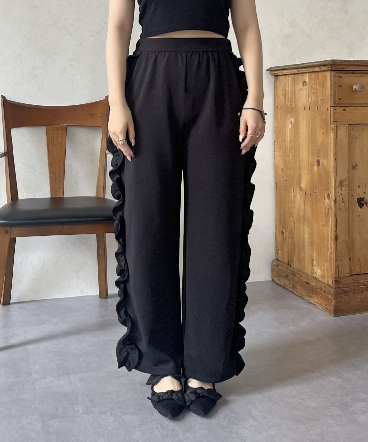 サイドフリルカットジョーゼットパンツ