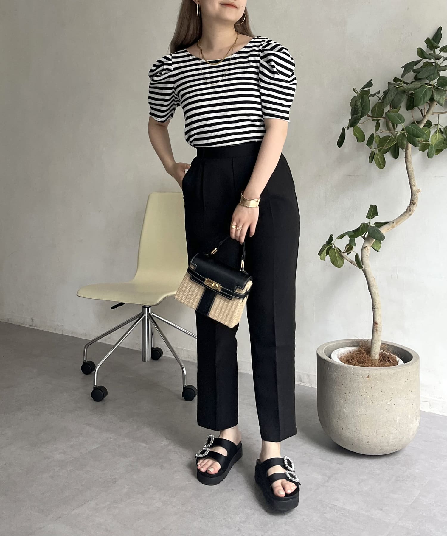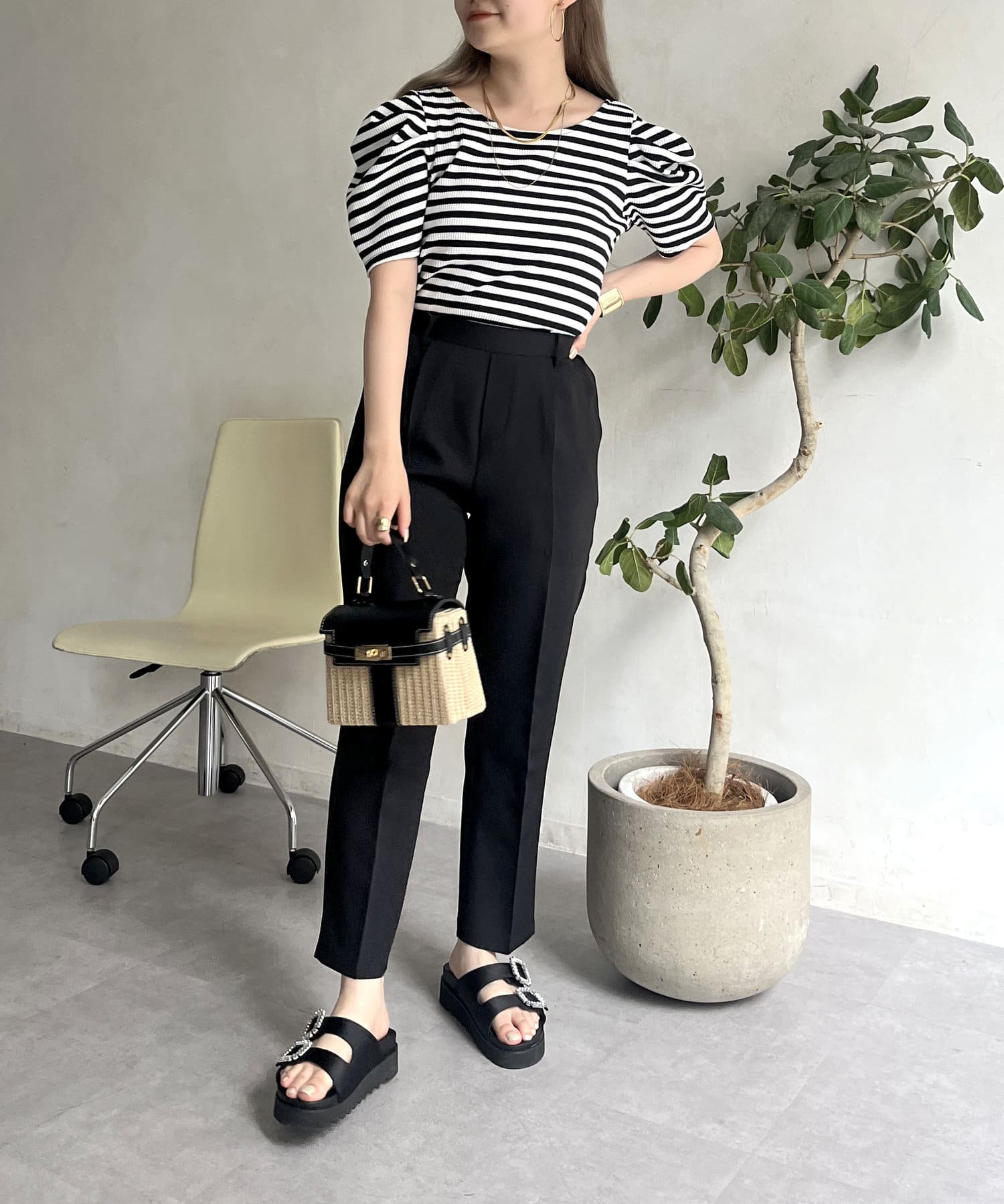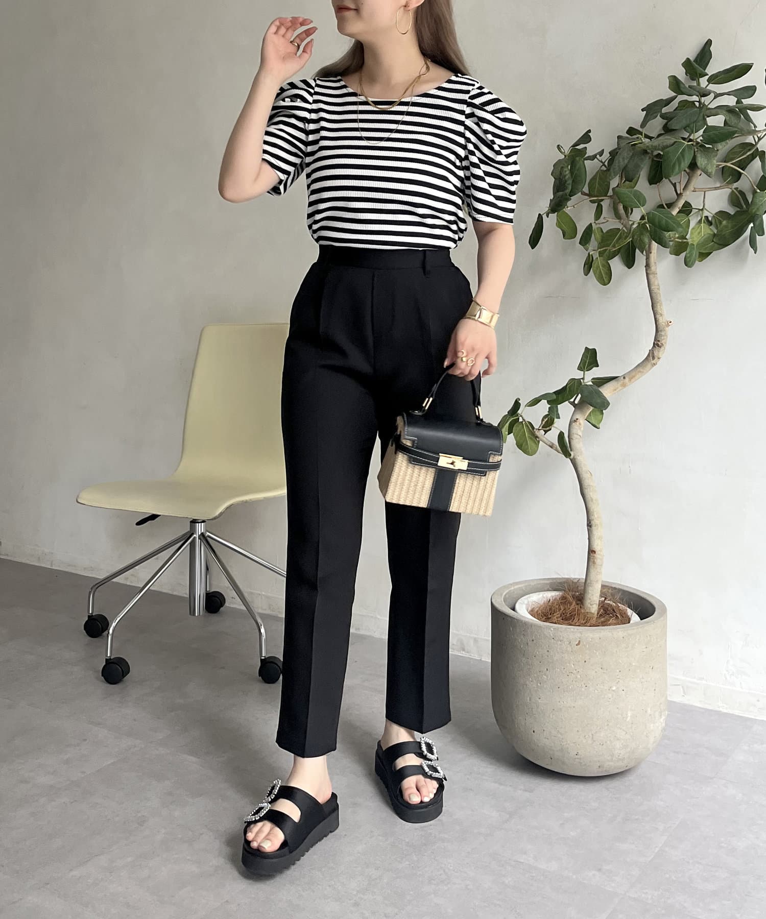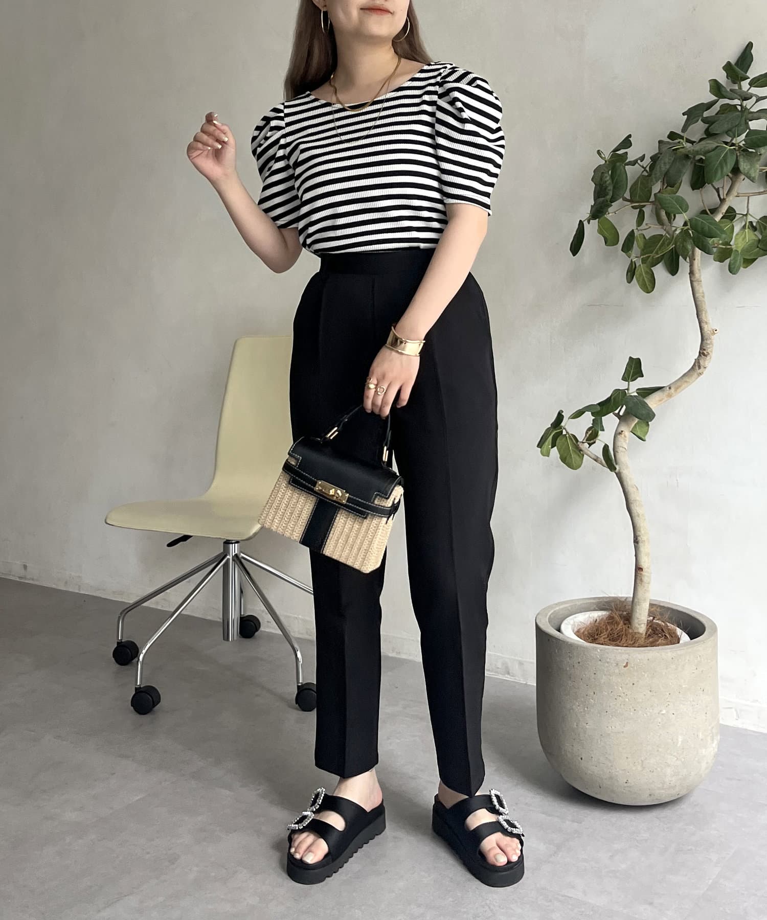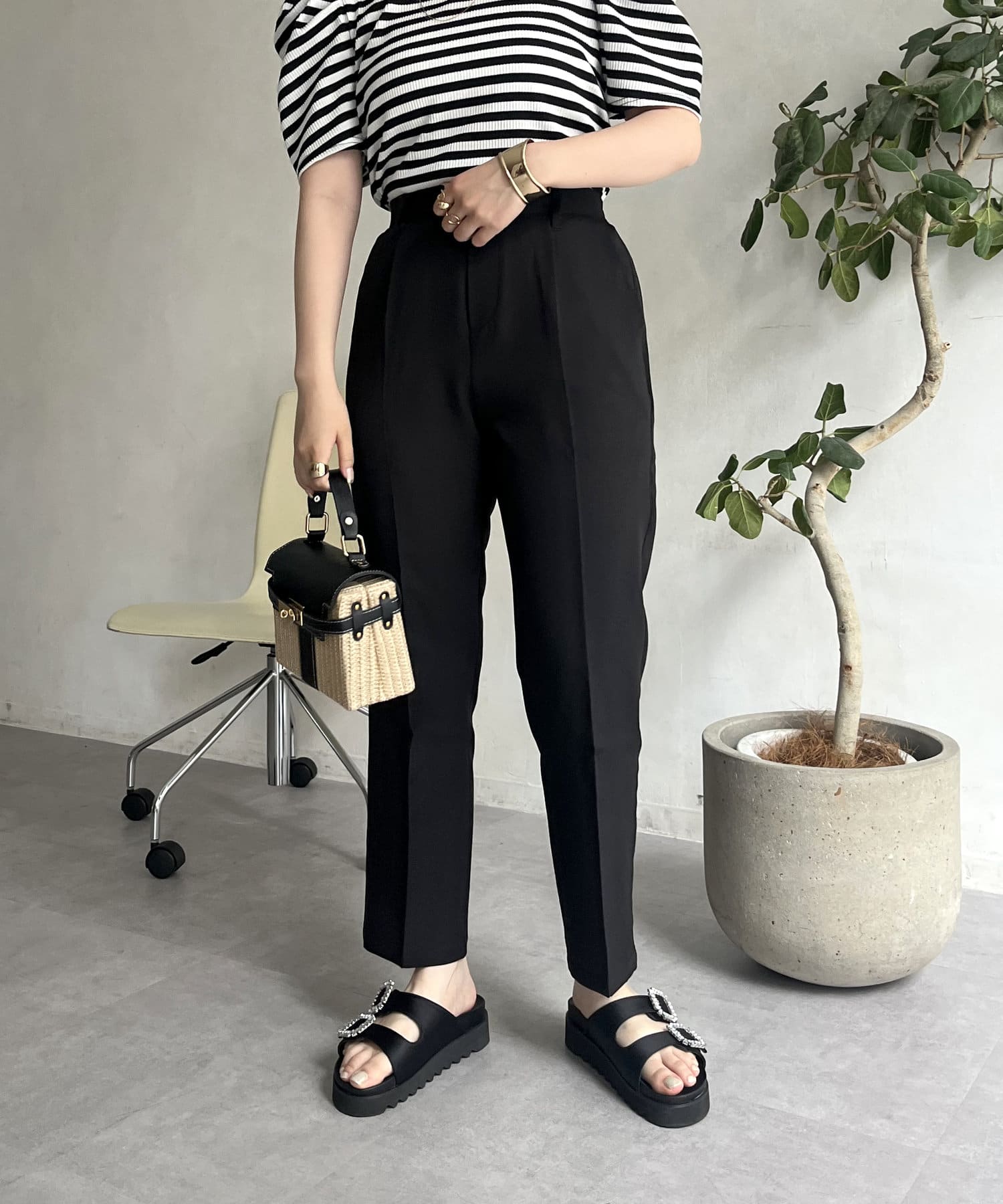 コーデのアクセントになるテーパードパンツ